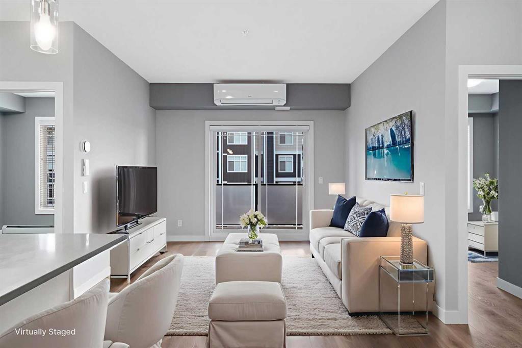 WELCOME HOME! The Regatta in Auburn Bay, where every day feels a little easier—and a little more fun. This third-floor, 2 bed, 2 bath condo offering over 817 square feet of space, in a bright, open layout that’s perfect for anyone who wants low-maintenance living. The kitchen is modern and functional with stainless steel appliances, plenty of cabinet space, and a large island that works just as well for cooking as it does for casual meals or hosting friends. The living and dining areas are open and inviting, with large windows that bring in great natural light and lead out to your private balcony. The 2 bedrooms sit on opposite sides of the unit for extra privacy. The primary has a walk-through closet and its own ensuite, while the second bedroom is right next to the full main bath that is ideal for guests, roommates, or a home office setup. In-suite laundry and underground parking add to the convenience. Living in Auburn Bay means you get full lake access where you can swim in the summer, skate in the winter, or simply enjoy the pathways and parks year-round. You’re also steps from the South Health Campus, Seton YMCA, restaurants, coffee shops, groceries, and everything else you need day-to-day. If you’re looking for a clean, well-kept condo in a community that truly adds to your lifestyle, this is a great place to call home!