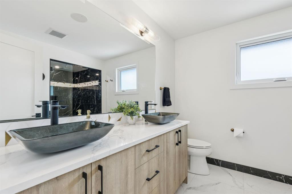STYLE + FUNCTION! Super rare in Silver Springs – a FULLY renovated 2-storey layout 3,200 square feet of total living space and a huge grassy backyard! This is the dream family home!! Lovingly upgraded from top to bottom, inside & out, this professionally renovated stunner is ready for its next chapter. If you have been dreaming of long summer nights with the kids on the trampoline, food on the grill and the dogs running around the yard, this is the property for you! Inside the home, the layout has been fully reimagined for the modern lifestyle with an enormous kitchen ready for any party, living room with custom floor-to-ceiling fireplace and extra long dining room for those extended family gatherings. A bright office is tucked away for those work-from-home days, the powder room is nicely out of sight and a gorgeous mud/laundry room was added to this home making real life better every single day. Storage abounds in this home, from the custom cabinetry at the front entrance to the tower pantry in the kitchen, linen closet upstairs and a well-designed mechanical room. The upper floor has three bedrooms including the beautifully designed primary suite with walk-in closet and full ensuite with a die-to-for shower, stand-alone tub, double sinks & in-floor heat! Fall in love with the custom mountain-themed mural in the kids bedroom and enjoy an impeccably designed full bathroom. The lower level has a 4th bedroom, stylish bathroom with stall shower, media area and huge play area for the kids! Thoughtful extras like epoxy floor in the mechanical room, R40 attic insulation, decorative ceiling beam added on main level, built-in speakers, blackout blinds in bedrooms & new central AC. MOVE IN TODAY with no work left to be done – long-lasting hardie & brick siding, all new windows, new hot water tank, new electrical panel, new plumbing, new wiring, virtually all new drywall & wall insulation throughout. Silver Springs has long been known as a desirable NW community, with access to Bowmont Park & the Bow River, schools right in the neighbourhood, mature trees and the botanical gardens, Crowfoot LRT in walking distance and an easy drive downtown, to YYC Airport or to the mountains! OPEN HOUSE MARCH 14 from 11-1 and MARCH 15 from 1-3.
