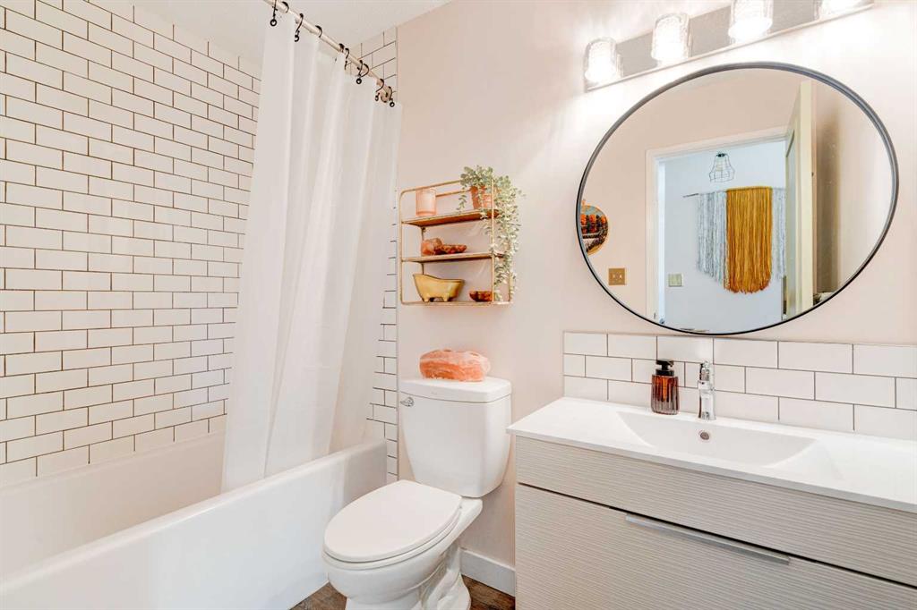 Welcome to this fully updated top floor unit that features 521 square feet and is situated in the central and amenity-rich community of Sunalta. This 1 bedroom, 1 bathroom condo is located in a quiet concrete building and features low condo fees, offering the perfect opportunity for first-time buyers or investors. A dedicated entryway greets you as you enter the home and resilient luxury vinyl plank flooring flows throughout the unit. The home offers an open-concept layout with South-facing exposure that floods the space with natural light throughout the day. The beautifully updated kitchen offers stainless steel appliances, subway-tile backsplash, a large peninsula with a breakfast bar for additional seating, bamboo countertops, and a wall of cabinetry with ample storage. The kitchen overlooks the living and dining areas – making this the perfect space for entertaining friends and family. The spacious bedroom can accommodate a king-sized bed and offers a large open double closet. The updated 4-piece bathroom features a floating vanity, a deep bathtub, and subway tile backsplash throughout. The spacious and covered South-facing balcony offers the perfect space to enjoy the warmer summer months and has plenty of room for a barbeque and patio furniture. Additional features that round out this unit include updated lighting throughout, high speed fibre-optic internet (perfect for working from home), an in-unit storage room, a separate large storage locker, and secure underground parking to keep your vehicle safe and out of the elements. The building offers its own sauna and bike storage and has been well-managed and maintained, with extensive recent renovations throughout. This pet-friendly building only requires condo board approval. Centrally located in the heart of Sunalta, this property offers the perfect walkable location and is only a short walk to nearby public transit, breweries, restaurants, cafes, shopping, and entertainment. Daily commuting is easy with only a 2 minute walk to the Sunalta LRT station and quick driving access to 14th Street. Don’t miss out on this incredible value and opportunity in Sunalta!