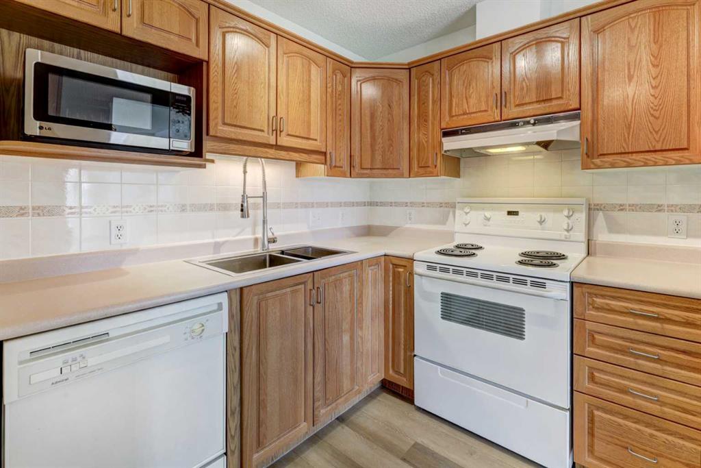 An adult-living condo which offers a vibrant, maintenance free lifestyle. Welcome to this bright, open-concept floor plan in a desirable, quiet location overlooking a park. Filled with natural light and sunshine from the west. The spacious layout includes a large primary bedroom complete with own 2 pc ensuite, along with additional 4 pc bathroom, large laundry room, functional kitchen, large dining and living room with access to a nice size SW facing balcony with gas line for bbq. Additional highlights include new vinyl flooring, baseboards, and fresh paint throughout, secured underground titled parking stall and assigned storage room. This community is truly lifestyle-focused with clubhouse, a billiards room, shuffleboard, recreation room with fully equipped kitchen, perfect for group dining and events, woodworking shop, library and more. Guests coming to town? There are 3 guest suites available, walking paths, a pond with water fountain and beautiful landscaping. whether you are social or love quiet time surrounded by nature, there is something for everyone. A home with all the amenities and close to shopping and dining. A wonderful place to call home!!!