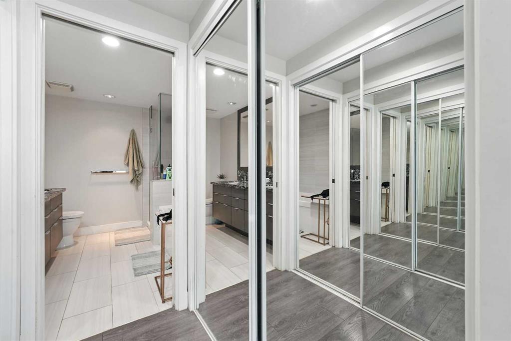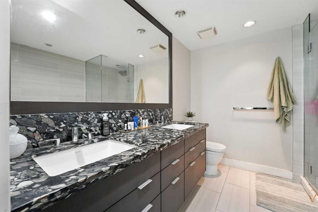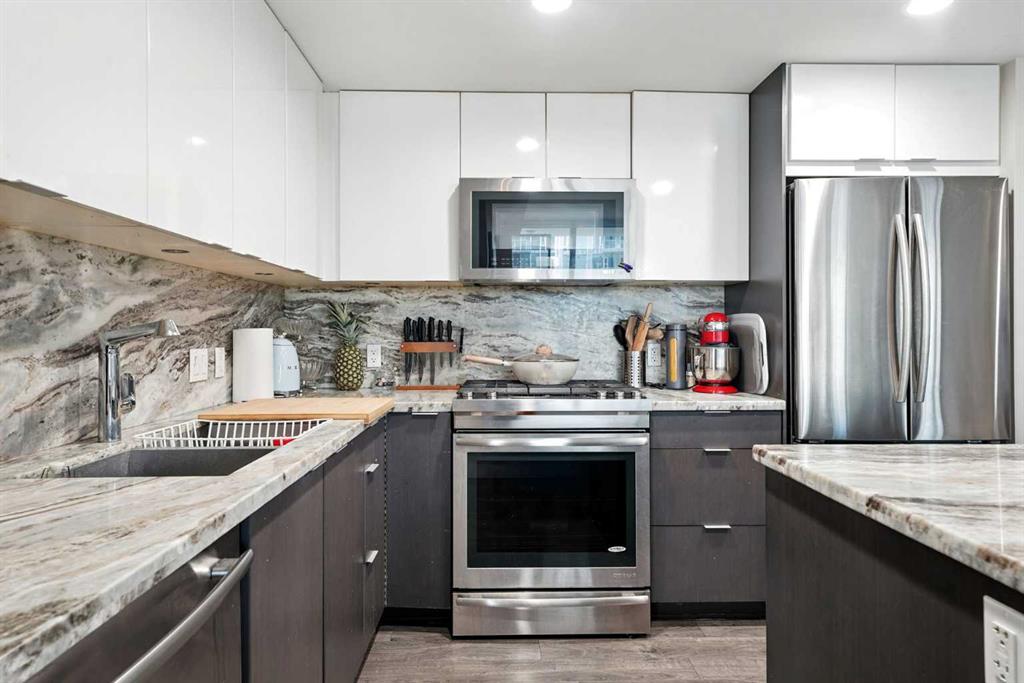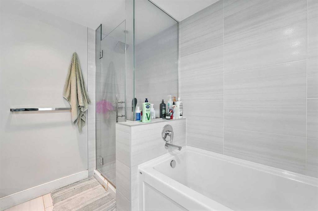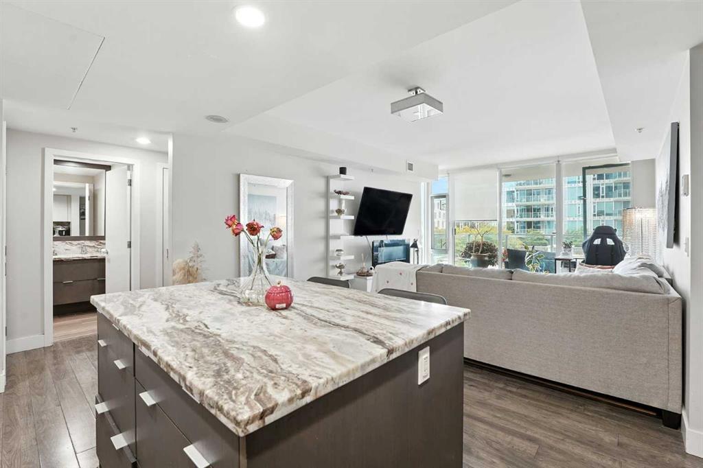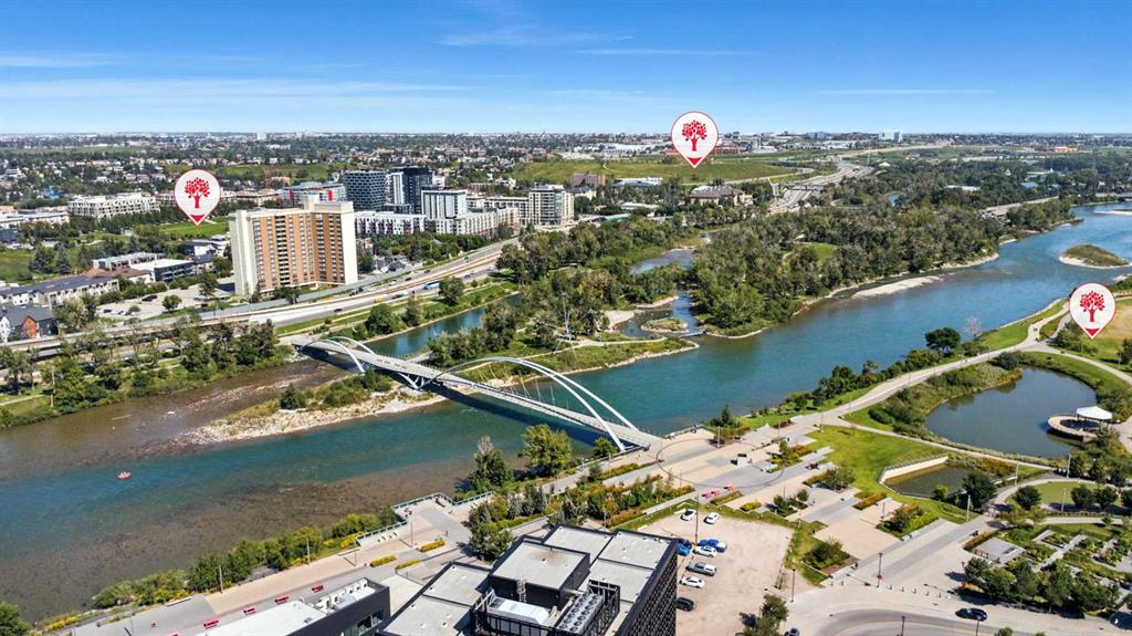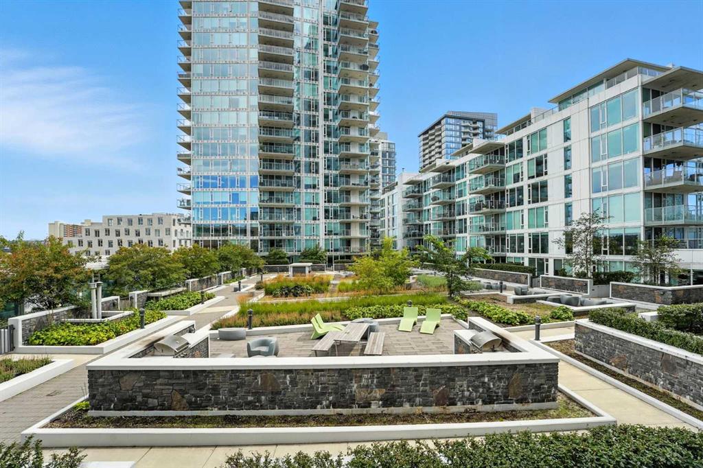 Welcome to your urban sanctuary in the vibrant heart of East Village! This modern 2-bedroom, 2-bathroom suite the Evolution building is a perfect fit for both first-time buyers seeking a dynamic lifestyle and savvy investors eyeing a prime downtown asset. This is a space where style meets function. The bright, open-concept layout is framed by floor-to-ceiling windows that fill the home with natural light. The contemporary kitchen features a gas range, granite countertops, and stainless steel appliances—perfect for a quick meal or a gourmet dinner. Both bathrooms offer the luxury of heated floors, while the primary ensuite boasts dual sinks and a separate tub and shower. Central A/C, in-suite laundry, and secure underground parking and storage add to the low-maintenance appeal. Beyond your door, a world of premium amenities awaits. Residents enjoy a 24/7 concierge, a fitness facility with sauna and steam rooms, a social lounge, and a rooftop patio with BBQs—all designed for a life of convenience and relaxation. With a Walk Score of 94, East Village is your playground. Stroll to the Bow River pathways, the Central Library, Studio Bell, and an array of shops, cafes, and restaurants. The C-Train and Superstore are just a few steps away, making daily errands a breeze. This is more than a condo—it’s a smart investment in a thriving, walkable community. Don’t miss this opportunity to own a piece of Calgary’s most exciting neighbourhood!