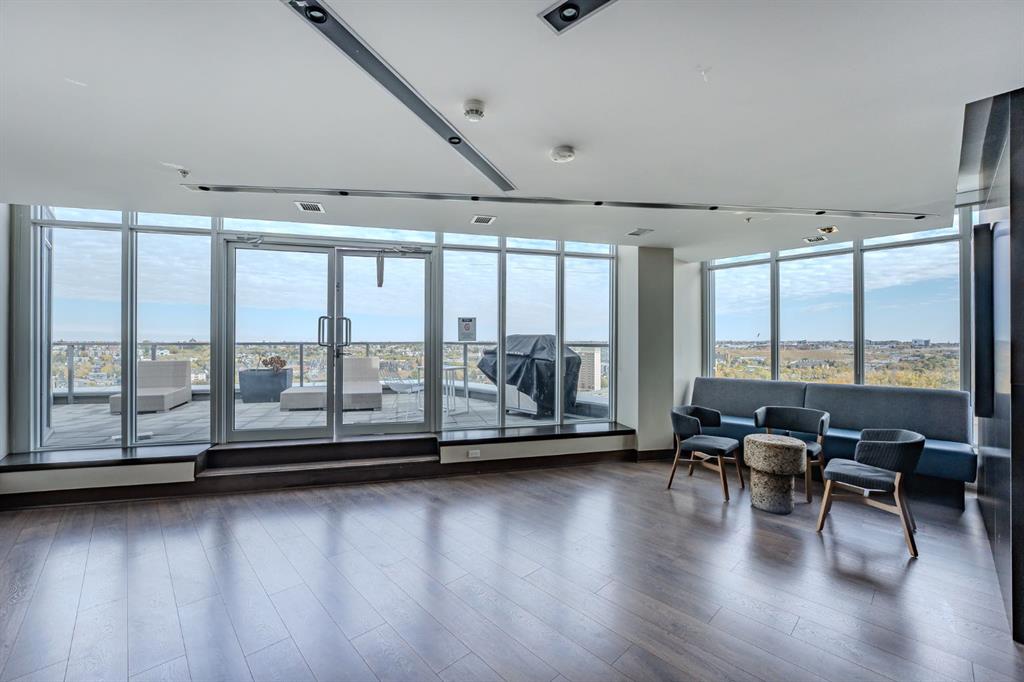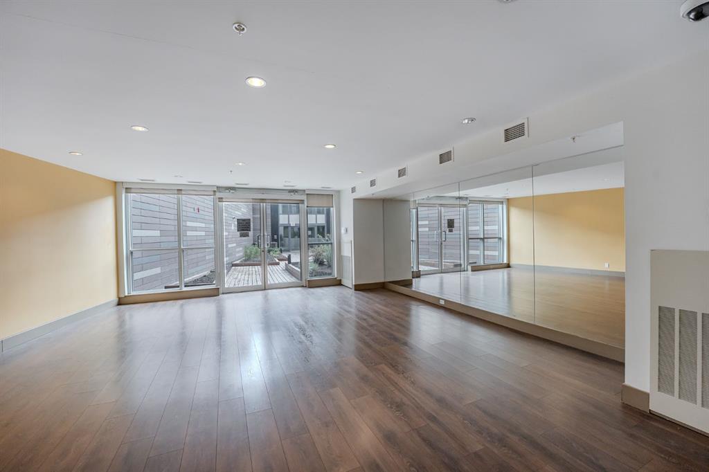 a fitness center, yoga room, party lounge with a kitchen and bar, sky