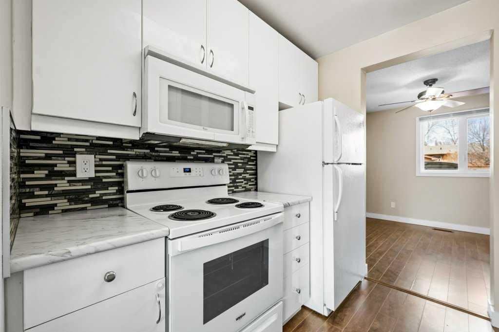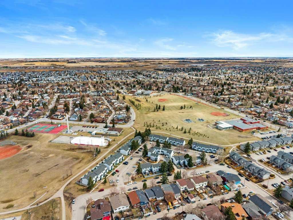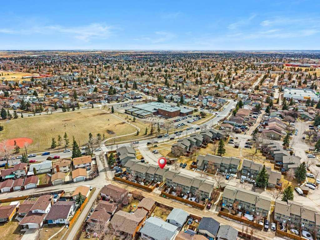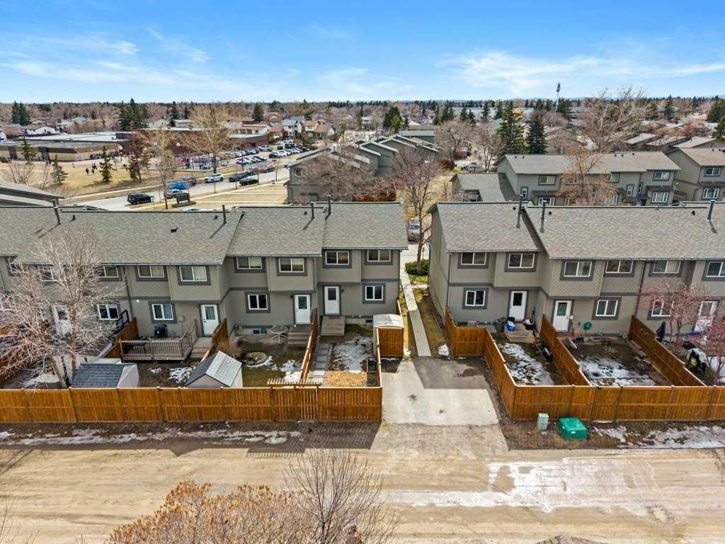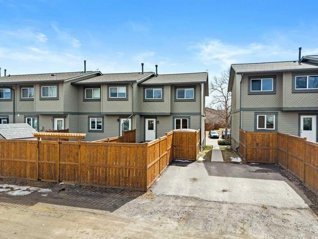Welcome to this well-maintained and freshly painted end-unit townhome offering 1,100 sq ft above grade of comfortable living space and a fully fenced backyard, sectioned dedicated stall parking, across from Guy Weadick School! This home has seen numerous updates over the years, including vinyl windows, attic insulation upgraded in 2022, asphalt shingles, doors, and fencing, along with a hot water tank (approx. 3 years) and a serviced furnace with a newer motor, providing peace of mind for years to come.