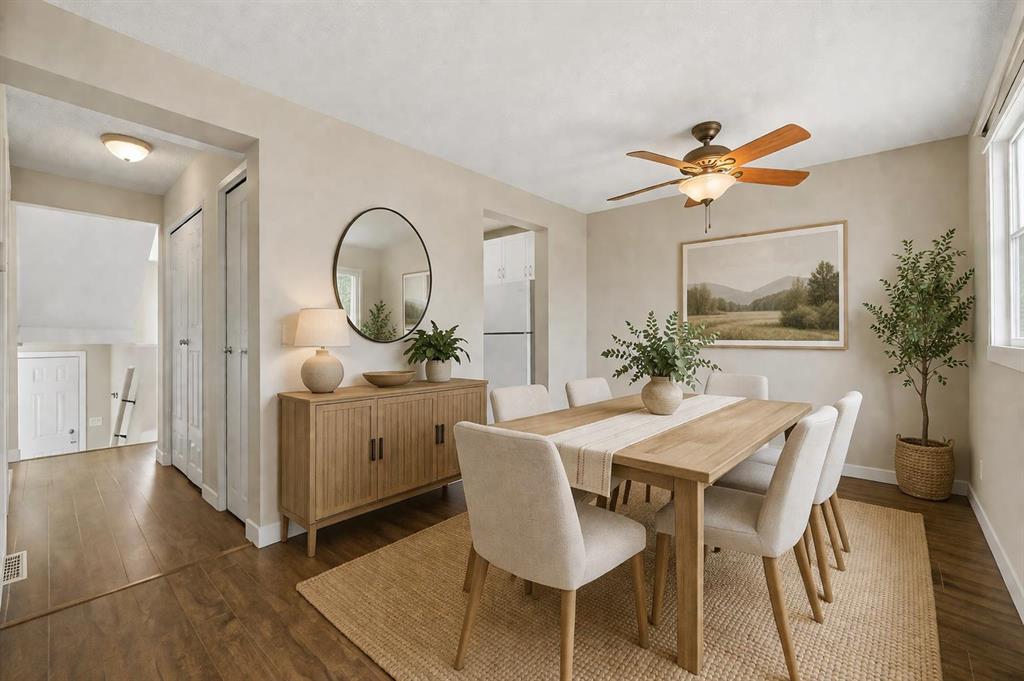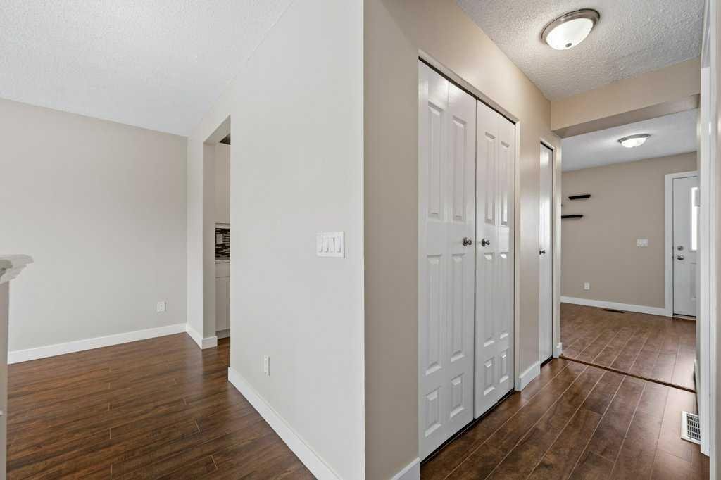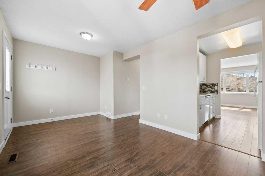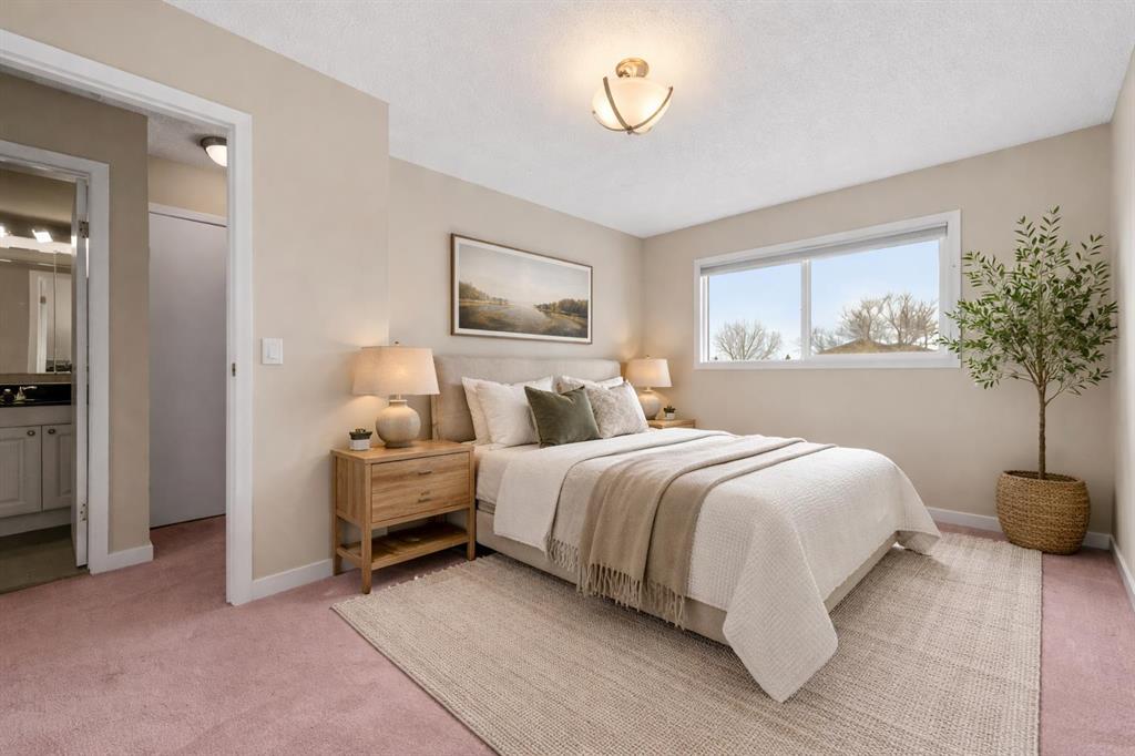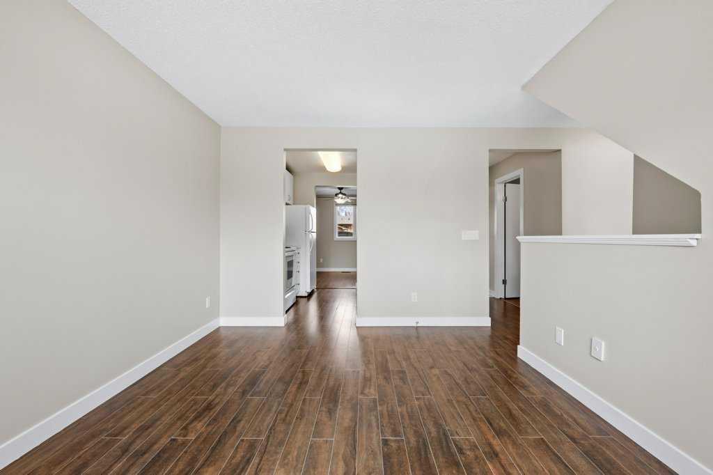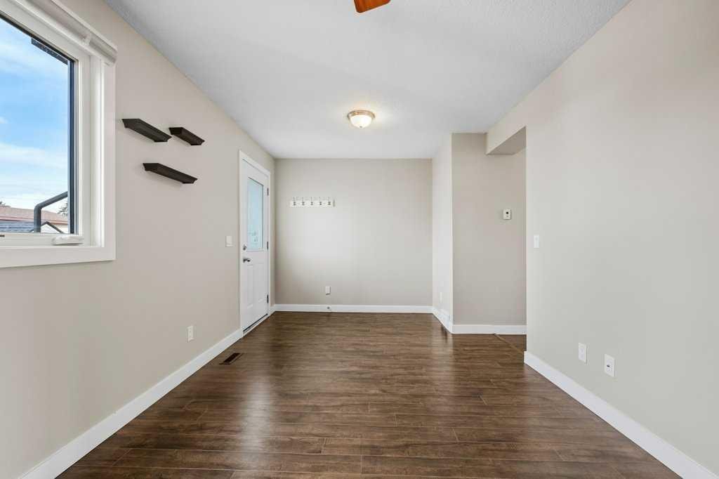 Welcome to this well-maintained and freshly painted end-unit townhome offering 1,100 sq ft above grade of comfortable living space and a fully fenced backyard, sectioned dedicated stall parking, across from Guy Weadick School! This home has seen numerous updates over the years, including vinyl windows, attic insulation upgraded in 2022, asphalt shingles, doors, and fencing, along with a hot water tank (approx. 3 years) and a serviced furnace with a newer motor, providing peace of mind for years to come.