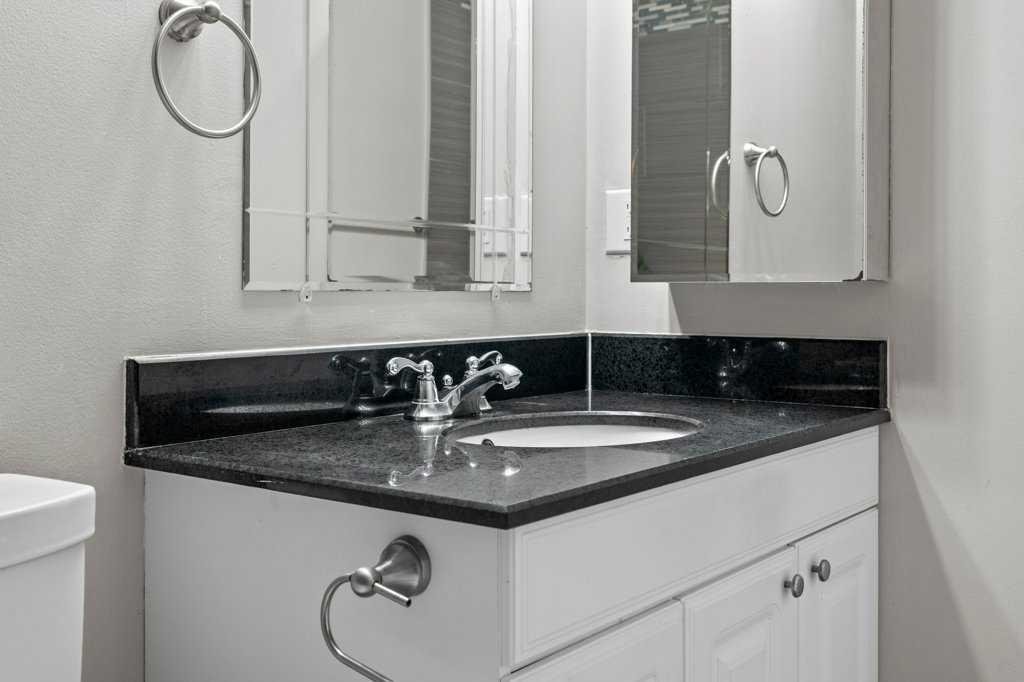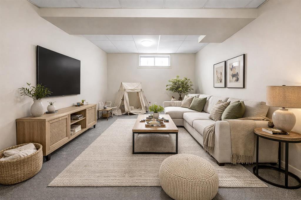Upstairs, you’ll find three bedrooms, including a generous primary that comfortably fits a king-sized bed and offers dual closets. The updated 4-piece bathroom features a granite countertop, undermount sink, and a deep soaker tub with full tile surround. The fully finished basement adds additional living space with a flex room, media room, and laundry/utility area, all complemented by laminate and carpet flooring.