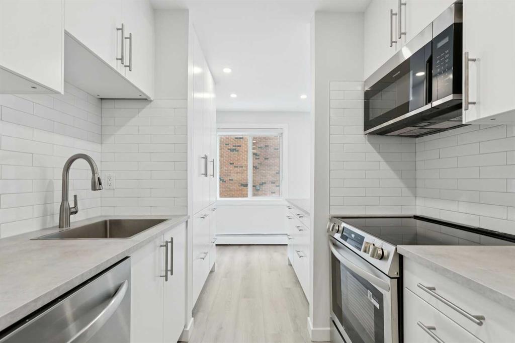 Welcome to this beautifully fully renovated 2-bedroom, 1-bathroom condo located in the highly desirable community of Bankview. This bright and inviting home offers a functional and unique layout, perfect for comfortable urban living. Enjoy stunning west-facing views from your balcony—ideal for relaxing evenings and taking in the sunset. Inside, the home features modern vinyl flooring throughout, a brand-new kitchen with stylish finishes, and all new appliances. The entire unit has been freshly painted, creating a clean and contemporary feel. Cozy up by the charming wood-burning fireplace, adding warmth and character to the living space. Both bedrooms are well-sized, and the thoughtful layout maximizes both space and privacy. This well-managed building boasts an excellent condo board and incredibly low condo fees, making it a smart investment as well as a wonderful place to call home. Perfectly situated in Bankview, you’re just minutes from downtown, shopping, dining, and all amenities. Don’t miss this move-in-ready gem! For more community information, photos, and a guided 360 tour, click the links below!
