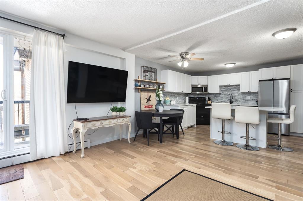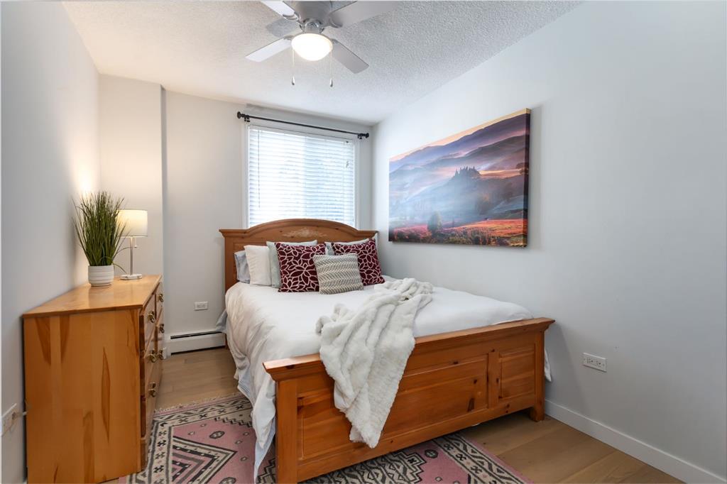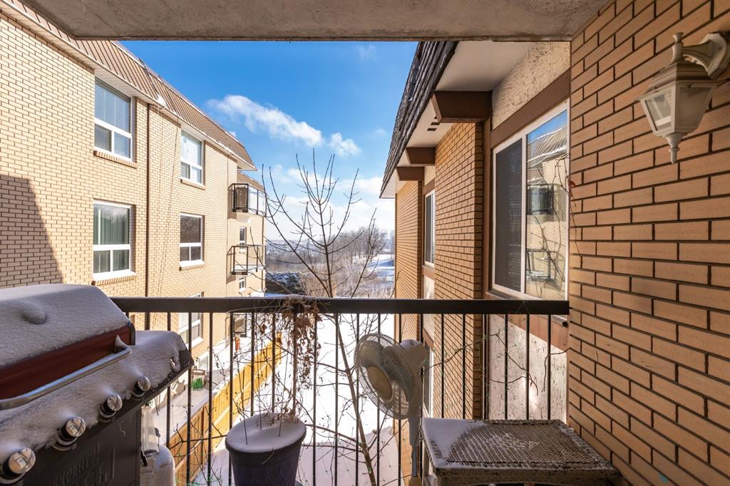Welcome to one of Calgary’s most coveted inner-city southwest enclaves, nestled in the heart of Spruce Cliff. Just moments from Edworthy Park and the extensive pathway system along the Bow River, this setting offers an exceptional balance of nature and urban convenience. From the private balcony, enjoy tranquil treed park views stretching toward the river and city skyline — a rare perspective that captures both greenery and cityscape. Positioned as a corner unit with east, west, and north exposures, the home is one of the few units that directly faces open green space. The windows on multiple sides provide cross-breeze ventilation and beautiful natural light throughout the day.