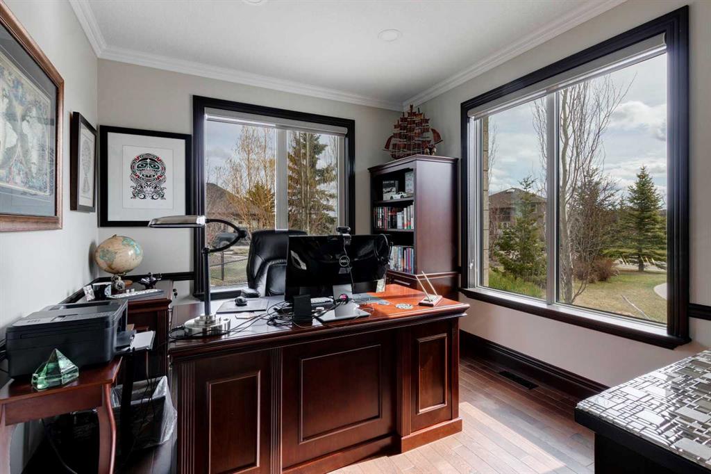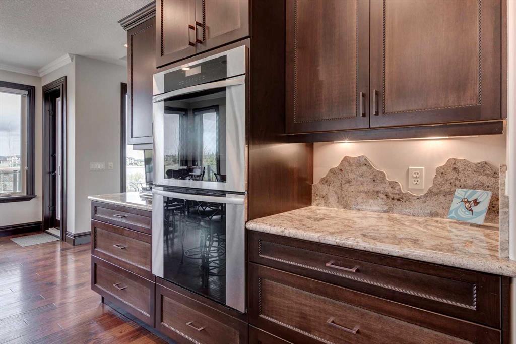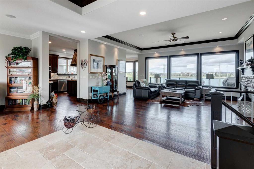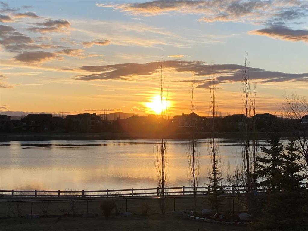Luxurious Executive Custom-Built Bungalow Home with Walkout Basement backing onto the LAKE with SPECTACULAR ROCKY MOUNTAIN VIEWs. This home is in the charming community of Monterra on Cochrane Lakes. Country Living with City Convenience. This HOME nestled on .48 Acres offers over 3600SF of LIVING SPACE with HEATED 4 CAR GARAGE and a FENCED YARD. The features of this property are endless from the STONE ENTRANCE WING WALLS, exposed AGGREGATE DRIVEWAY to the EXTENSIVE RENOVATIONs. Step inside and be greeted by custom 10-foot ceilings, elegant hardwood flooring, and a wall of windows that provide expansive views and abundant natural light. Main level offers a PRIVATE OFFICE at the front of the home with custom built in bookcase, WALK-IN FRONT CLOSET with ample space, Luxurious OPEN SITTING/DINING AREA is off the living room, LIVINGROOM room offers a stone gas fireplace with custom made mantel, a wall of windows looking over the backyard toward the lake with the mountains beyond that. A “CHEF INSPIRED” Kitchen with cooper hood fan, double wall oven, sizable island, undermount lighting and custom granite backsplashes that duplicates the look of mountains extending into the BUTLERS PANTRY, The LAUNDRY ROOM/MUD ROOM leads into the 4 car GARAGE for all your vehicles and toys. The PRIMARY BEDROOM offers a wall of windows with STUNNING VIEWS of the Rocky Mountains with access to the large deck overlooking the backyard and lake. Retreat to the 5-piece ensuite spa with heated floors, double vanities with leathered granite countertops, jet tub, large shower with body jets, and walk-in closet. LOWER LEVEL offers in-floor heat throughout, a floor to ceiling stone gas fireplace, and a wall of windows once again to enjoy the outdoor views. There are 2 VERY SPACIOUS BEDROOMS, a 4PC BATH with leathered granite countertop, separate tub and stone tile shower with jets, CUSTOMIZED WET BAR with cabinet and undermount lighting, granite counter tops and bar fridge offers a great entertaining space, as does the great RECREATION ROOM for FAMILY FUN NIGHT and/or ENTERTAINING GUESTS. There is not a LUXURY or CRAFTMANSHIP that has been overlooked when this custom home was built or renovated, here are just a few: stunning unique interior stone walls, stone fireplaces, elegant crown moulding throughout, phantom doors to allow a nice breeze, LUX triple pane NEAT windows, surround sound throughout, and frameless decking system so as not to obstruct the magnificent views. The views are stunning from either level as are the gorgeous sunsets over the mountains. This is a MUST-SEE PROPERTY as very few properties in Monterra offer LAKE AND MOUNTAIN VIEWS AND A STUNNING HOME! Call today for your private viewing.