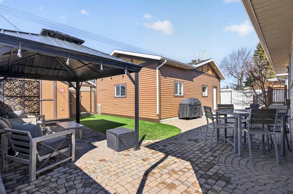 Behold…welcome to your new home! Located here in one of Northwest Calgary’s most exclusive neighbourhoods is this incredible estate home…a stunning showpiece of fine living with a total of 4 bedrooms, oak hardwood floors & maple kitchen with stainless steel appliances, oversized heated 3 car garage & private low-maintenance West backyard for your outdoor pleasure. Offering over 3400sqft of living space, this custom-crafted bungalow will take your breath away the moment you step through the front door, with its expansive great room with wood-burning fireplace & vaulted ceilings with engineered trusses, open concept dining room with built-in hutch for your formal entertaining & airy dining nook for casual family meals & breakfasts. Next to the kitchen is a fantastic mudroom/office area complete with built-in desk, walk-in closet, built-in shoe storage & lockers. At the heart of your new home is the beautifully appointed kitchen with bird’s eye maple cabinetry & granite counters, large centre island with raised bar & built-in wine rack, walk-in pantry & upgraded Bosch appliances including built-in convection oven & dishwasher, plus Dacor gas cooktop & Zephyr chimney hoodfan. The hardwood floors continue into the 3 main floor bedrooms which are highlighted by the owners’ retreat with walk-in closet, private access into the backyard & relaxing soaker tub ensuite with shower & granite counters. The amazing lower level is finished with a 4th bedroom & a 3rd full bathroom (with walk-in shower), office area with built-in cabinets & desk (which is included), bright games room with granite-topped wet bar, recreation/media room with entertainment centre (also included) & an exercise/lounge area. The detached 3 car garage is oversized & drywalled, with ducted heating, 9.5’ ceilings, workshop area with built-in shelving & prepped for 220V/20amp/30amp. Additional features include the lower level laundry room with Bosch washer/dryer & loads of cabinets, 2 furnaces & 2 hot water tanks, irrigation system, wrap-around covered verandah – accessible from both the front door & dining room, fir construction walls strapped with extra 2” spruce (resulting in 2”x6” for added insulation) & 40year roof shingles (installed in 2013). The low-maintenance & fenced West backyard is your private outdoor sanctuary…with its sprawling 1000sqft+ brick patio & 2 sheds…one for storage & the other for your lawn equipment. Originally a side-by-side duplex, & converted in 2002 by Morrison Maurer into what you see today…completely stripped to the studs with all new plumbing, electrical & heating. A truly extraordinary home located across from a park, surrounded by a mixture of charming original & renovated mid-century homes as well as new builds, in this prime location in this mature established community close to neighbourhood schools & shopping, only a few short minutes to the Winter Club & Nose Hill Park, Confederation Park & quick easy commute to downtown.
