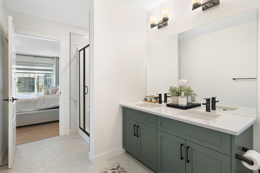 Upstairs, the central bonus room smartly separates the secondary bedrooms from the primary suite. The primary is enormous, offering a sitting area and a walk-in closet you won’t have to compromise with. The ensuite feels like its own retreat with a standalone tub, glass shower, double sinks, and plenty of storage. Vinyl plank runs throughout the upper floor for a cohesive look and easy upkeep.