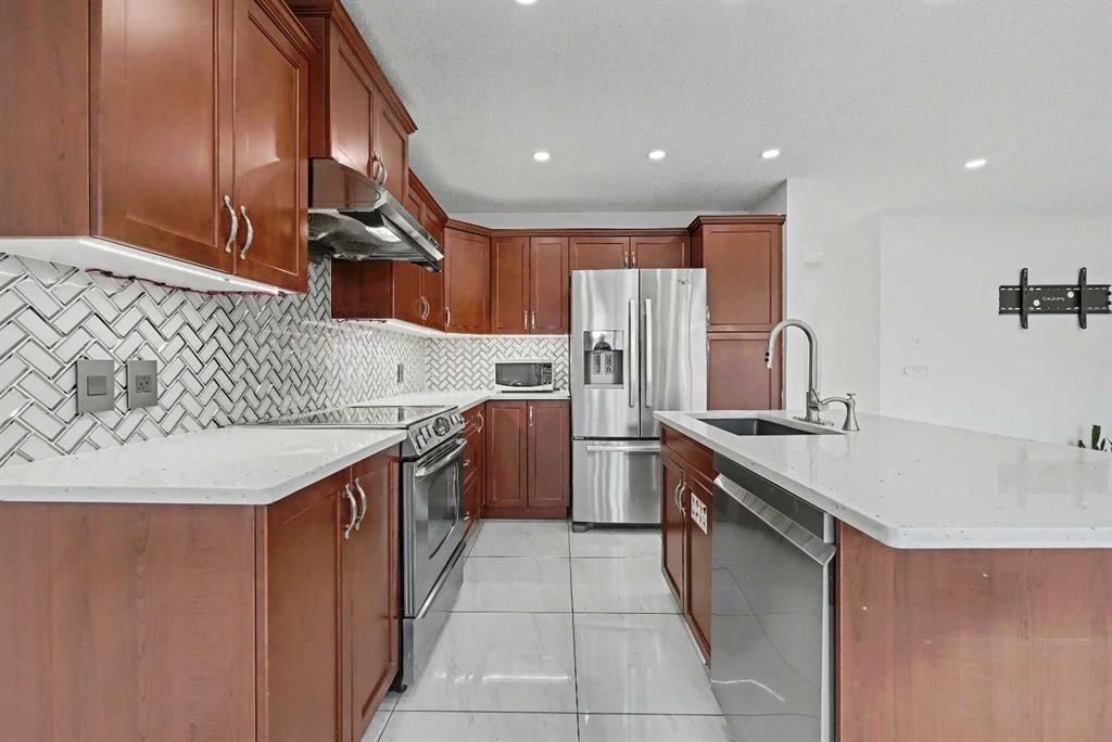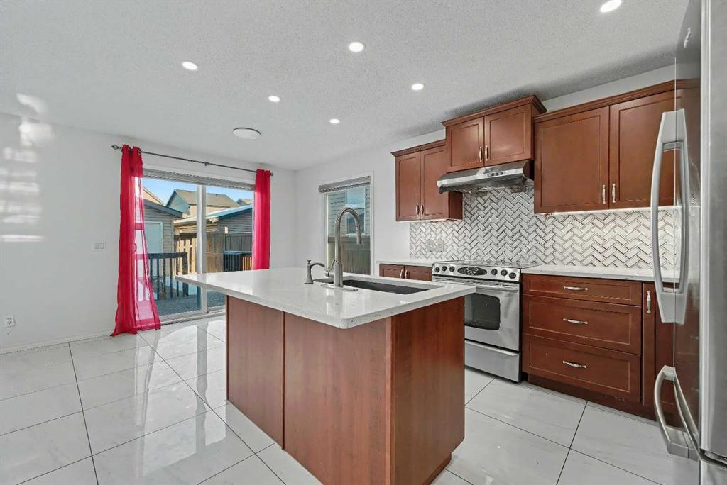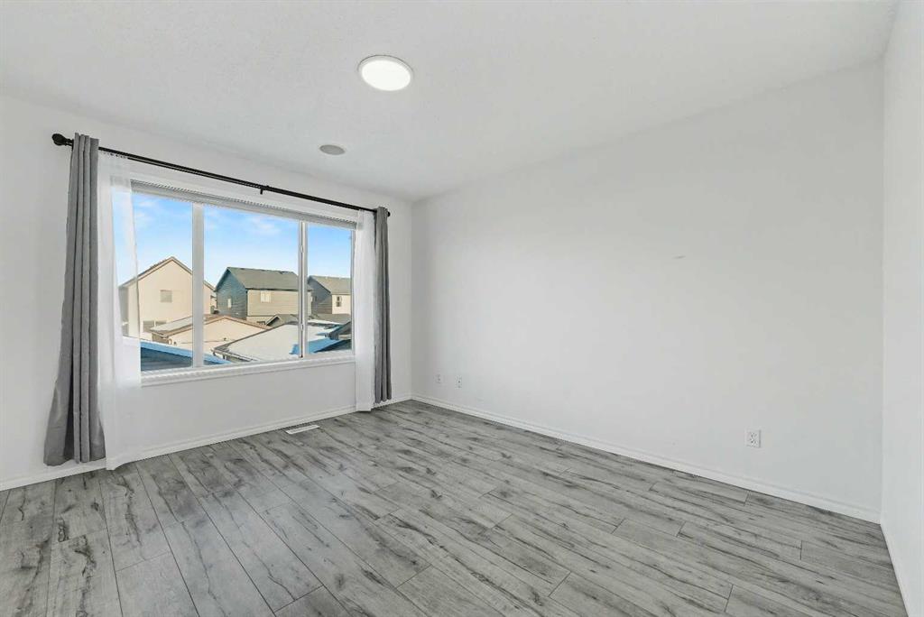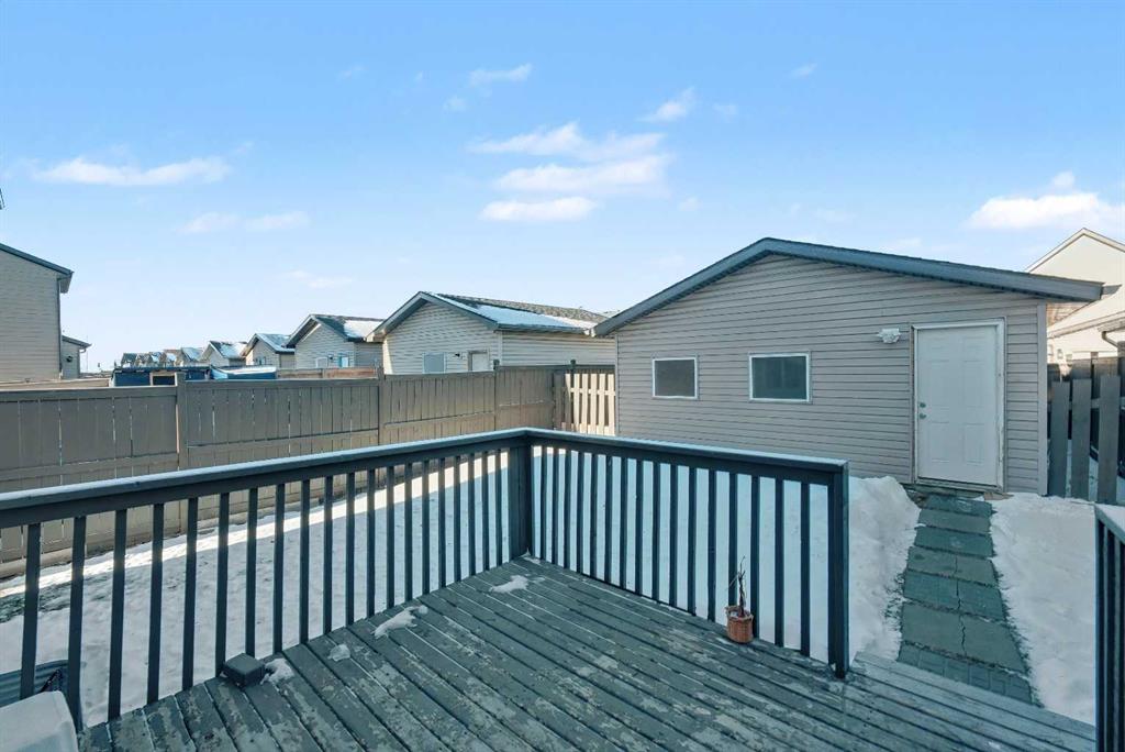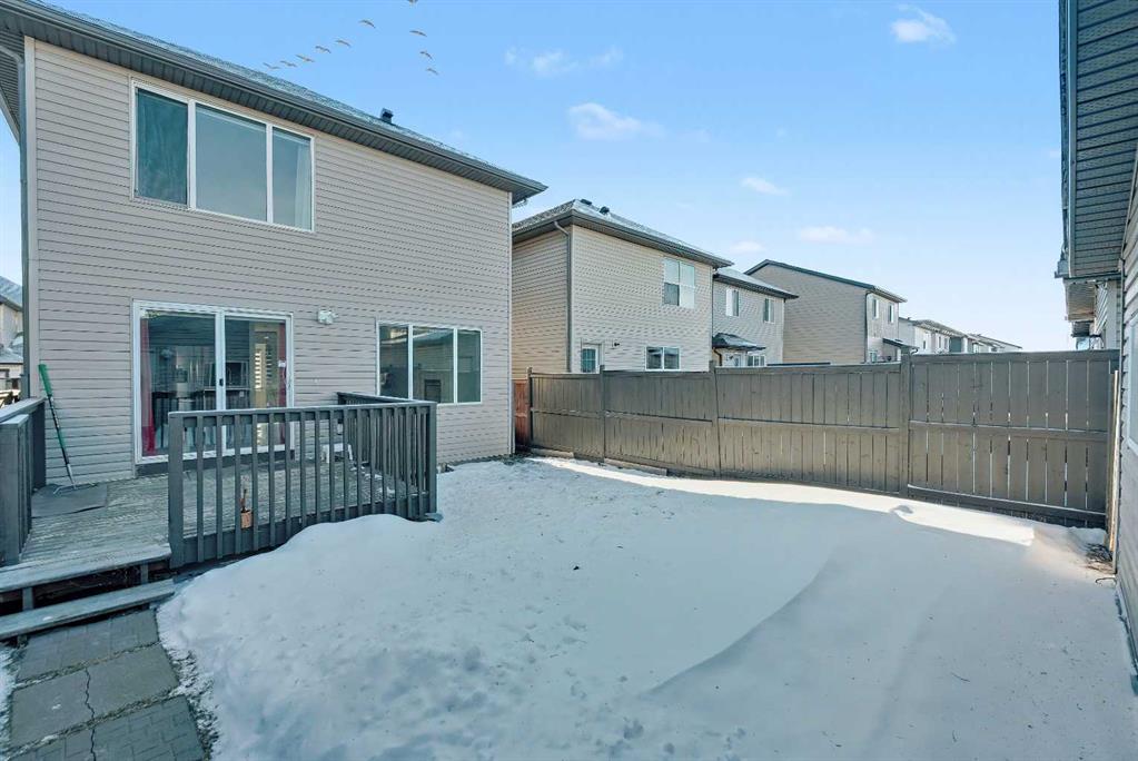 Gorgeous Family Home | 3 Bedrooms | 2.5 Bathrooms | Main Level Flex Room | Open Floor Plan | Bright with Natural Light | Recessed Lighting | Built in Speakers | Quartz Countertops | Stainless Steel Appliances | Herringbone Tile Backsplash | Gas Fireplace | Spacious Bedrooms | 4pc Primary Ensuite Bath | Custom Built-in Closet | Upper Level Laundry | Unfinished Basement | Basement Rough-ins | Great Backyard | Deck | Fully Fenced | Rear Double Detached Garage | Alley Access | Incredible Location | Close to Skyview Springs Playground | Family Friendly Neighbourhood. Welcome home to your gorgeous 3 bed, 2.5 bath family home boasting 1,601 SqFt throughout the main & upper levels with an additional 780 SqFt in the basement of a blank canvas. The beauty of this home starts outside with a statement red front door. Step inside to a foyer with great closet storage and open to below ceilings. The front flex room is a great space for overnight guests, a home office or day seating. The flex room is outfitted with built-in closet storage great for any type of organization. The heart of the home is the open floor plan kitchen, dining and living rooms. The kitchen is finished with timeless herringbone backsplash tiles, quartz countertops, stainless steel appliances and ample cabinetry. The centre island is the perfect spot for small meals or socializing while you cook. The dining room is ready for a dinner table to fit the whole family during the holidays and has sliding glass doors that lead to the deck. The sliding glass doors give both natural light and quick access to your backyard for outdoor cooking, dining and entertainment. The living room is centred with a gas fireplace and TV ready wall. The main level is complete with a 2pc bath. Upstairs holds 3 bedrooms; the primary and 2 additional. The primary bedroom is spacious and has a private 4pc bath that leads to a walk-in closet with custom storage. Bedrooms 2 & 3 share the main 4pc bath with a tub/shower combo. The upper level laundry room is every home owner’s dream as its located near all the bedrooms. Downstairs, the unfinished basement has endless opportunities as its a blank canvas; design this space to fit your family’s needs. Outside, the fully fenced backyard is a private oasis to enjoy in the summer months and is your quick access to your rear double detached garage. The garage has alley access and the front of the home has street parking readily available. This home is located in a family friendly environment and is close to all amenities, parks & playgrounds! Hurry and book your showing at this gorgeous family home today!