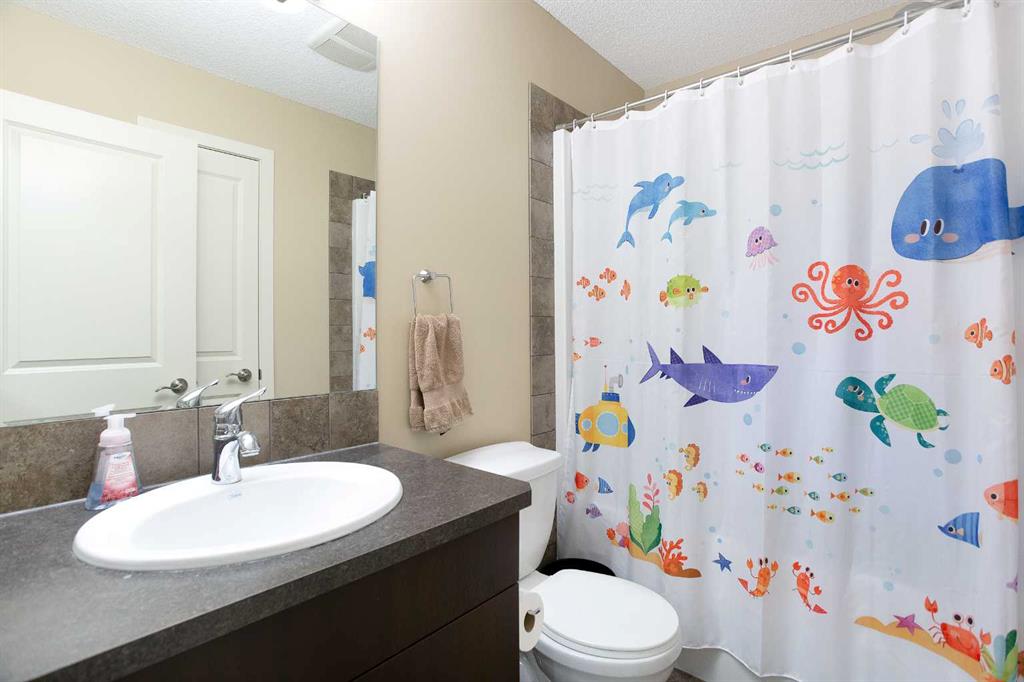 Upstairs, the home has been refreshed with brand new carpet on the staircase and throughout the upper level, adding a soft and modern touch. The primary bedroom is completed with a walk-in closet and a spacious ensuite bathroom. Two additional bedrooms and a full bathroom provide plenty of room for children, guests, or a home office, with a mountain view.