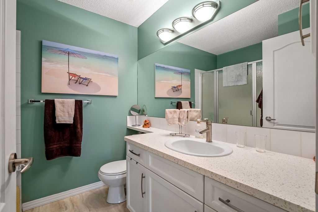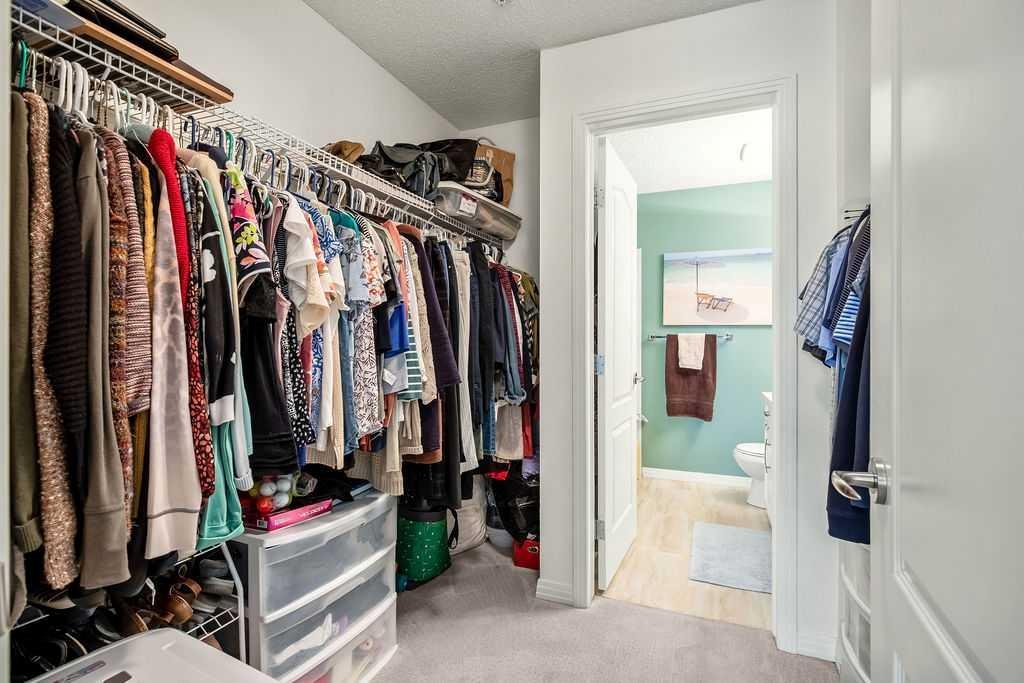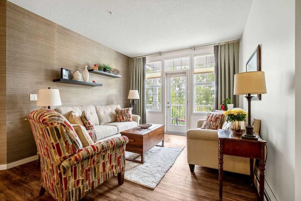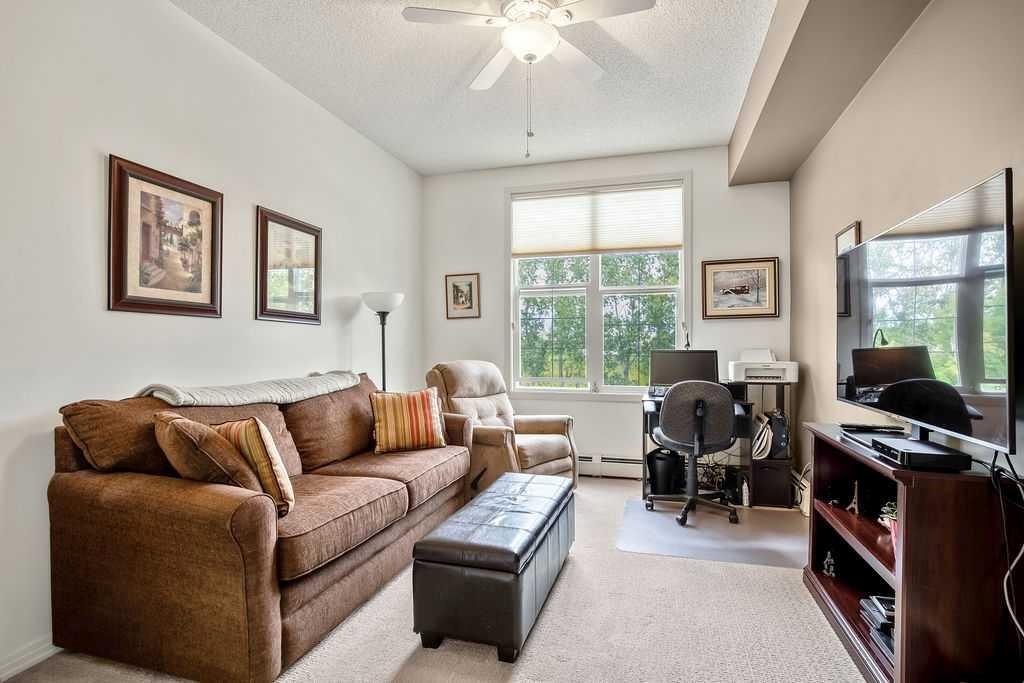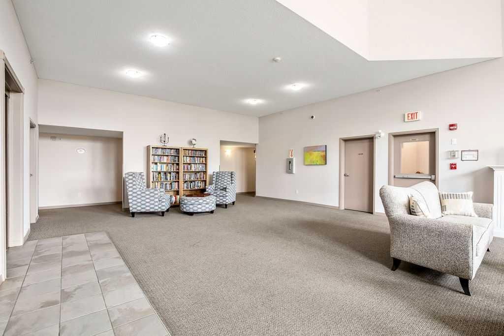 This is a lovely, immaculately maintained, 2 bedroom, 2 bath condo in the attractive Penncross condo building which is located next door to the Crystal Green Golf Course in the north side of Okotoks, convenient to all of Okotoks services, facilities & conveniences. The condo has lots of light filled rooms, a spacious feel with 9’ ceilings, easy care luxury vinyl plank in the main great room, all the stainless steel kitchen appliances have been upgraded in the last year inviting cooks to enjoy the modern kitchen, while providing plenty of storage for your cooking needs. The master bedroom has a large walk through closet area and a private 3 piece ensuite. The second bedroom is currently used as a cozy den/office area with walk through storage to the 4 piece bath and laundry area. The balcony is a welcoming outdoor space to spend leisure time with a gas BBQ hook up in place. There is one underground titled, heated parking space with storage in front and 1 assigned parking stall above ground. The building features amenities of a welcoming foyer with comfortable seating, themed areas off the elevators – a putting green, library, sitting and games area to enjoy, as well as a large fitness room that leads to the fully landscaped, south facing courtyard. Living here also facilitates access to Crystal Shores Lake with beach house & lake access for additional activities (Lake HOA fees are included in the monthly condo fee). When you enter the front door you will appreciate the secure, quiet ambiance. This may be the one for you!