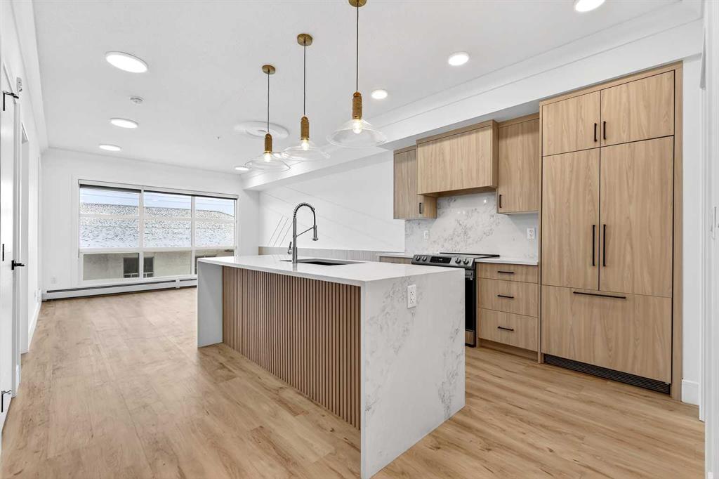 Welcome to this beautifully designed 1-bedroom + office/flex space condo offering nearly 689 sq. ft. of functional living in the highly sought-after community of Currie Barracks. Built by Rohit Communities, this unit stands out with its smart layout, modern finishes, and exceptional use of space—perfect for professionals, remote workers, or investors. The thoughtfully designed kitchen maximizes efficiency using the work triangle concept, while the oversized waterfall quartz island serves as the true centerpiece—ideal for cooking, dining, and entertaining. The open-concept layout flows seamlessly into the bright living area, enhanced by large windows that flood the space with natural light. A key highlight of this home is the dedicated office/flex space, offering the perfect work-from-home setup or additional storage—an increasingly rare and valuable feature in condo living. The spacious primary bedroom comfortably fits a queen-sized bed with room for nightstands, while the modern bathroom and in-suite stacked washer/dryer add everyday convenience. Step outside to your private deck, perfect for summer BBQs or relaxing evenings. This unit also includes one titled underground parking, providing security and comfort year-round, and a storage locker. Ideally located just 7–10 minutes to downtown, Mount Royal University, Marda Loop, CF Chinook Centre, and Glenmore Park, this home offers the perfect balance of urban access and community charm. With its generous size, functional layout, and added flex space, this is a standout opportunity in one of Calgary’s most desirable inner-city communities. The spacious primary bedroom comfortably accommodates a queen-sized bed with room for additional furnishings, while the modern bathroom and in-suite stacked washer and dryer add everyday convenience. Ideally located, you’re just a short 7–10 minute drive to downtown, Mount Royal University, Marda Loop, CF Chinook Centre, and Glenmore Park, offering the perfect balance of urban living and community charm. An excellent opportunity for first-time buyers, professionals, or investors in one of Calgary’s most sought-after communities.