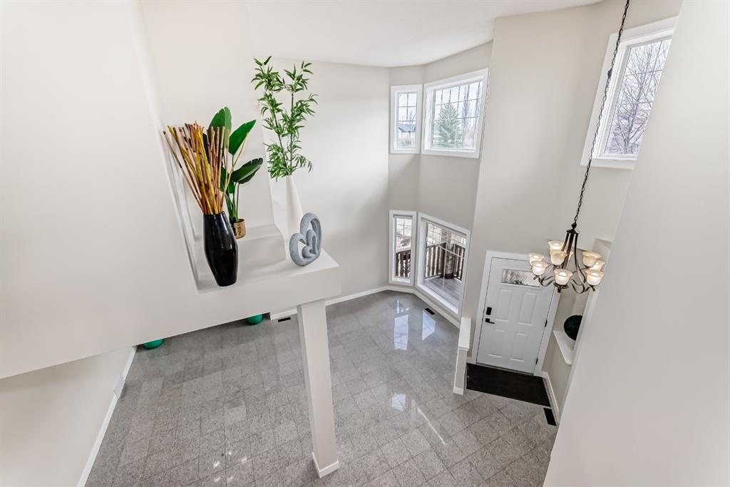 WELCOME TO ROCKY RIDGE! This freshly painted estate-style home offers approximately 3,000 sq ft of total living space with 4 bedrooms and 3.5 bathrooms. The main floor features beautiful granite flooring and an open-concept kitchen with granite countertops, NEW stainless steel appliances, a large island/breakfast bar, and plenty of storage. A NEW R/O water filtration system has also been installed. The impressive open-to-above ceilings allow for an abundance of natural sunlight, creating a bright and inviting space. The living room also features a cozy gas fireplace with custom built-ins. The upper level offers 3 spacious bedrooms and 2 full bathrooms, including a 4-piece primary ensuite with a walk-in closet. The fully finished basement includes a 4th bedroom, an additional full bathroom with a Jacuzzi, and a large open recreation room—perfect for entertaining or relaxing. The oversized double attached garage includes a new garage door opener. Sitting on one of the larger lots in the cul-de-sac, the property features a spacious backyard and deck—perfect for outdoor enjoyment. Recent updates include a new furnace and fresh interior paint. Amazing location close to the Shane Homes YMCA, public transit, schools, shopping, and parks. Call today to schedule your private viewing!