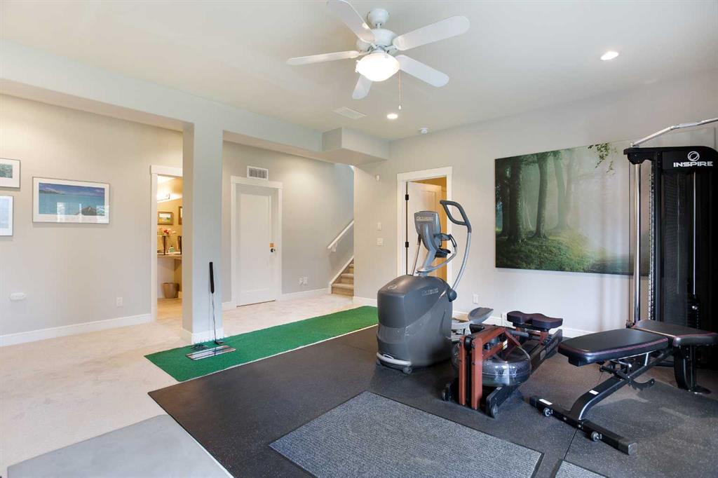 The airy walk-out level has spacious bedrooms #4 and #5, full bathroom – and outfitted fitness room,