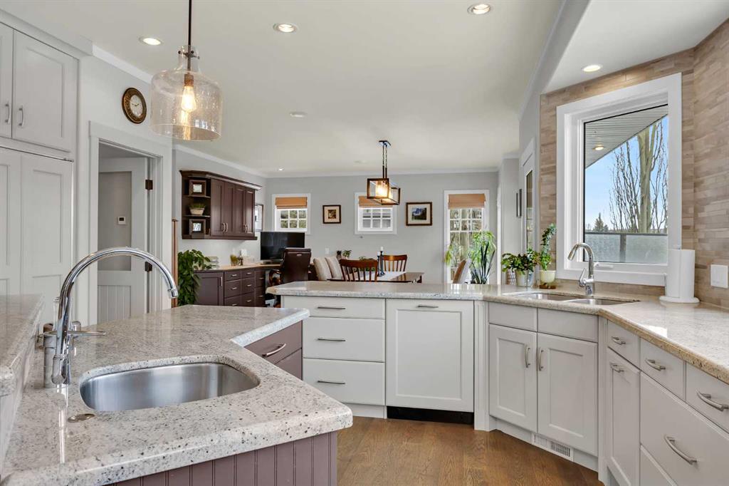 OPEN HOUSE: Sunday March 1st (2-4pm). Spectacular four-season luxury living on Calgary’s west edge—where space, privacy, and convenience come together in the prestigious community of Springbank Links. This mature, highly sought-after enclave offers the rare balance of peaceful rural living with easy access to downtown Calgary, top-tier schools, shopping, and amenities—without the maintenance demands of a traditional acreage. Families will appreciate CLOSE PROXIMITY to Springbank Schools (K to 12 with bus service), along with convenient access to Calgary’s leading private schools. It’s a location that supports academic excellence while keeping daily life efficient for busy professionals. Perfectly positioned, the home enjoys SERENE WATER VIEWS of Emerald Bay to the east and unobstructed views of the rolling fairways of Springbank Links Golf Course to the west. Set on a MANAGEABLE ?-ACRE-LOT, it delivers acreage-style privacy with significantly less upkeep. This bright, custom-built home offers 3,971 sq. ft. above grade and over 5,700 sq. ft. of REDEFINED LIVING SPACE across 3 finished levels. Built by owners with a construction background, the home reflects exceptional craftsmanship, intelligent design, and premium materials throughout. Featuring FOUR ENSUITE BATHROOMS, the upper level is perfectly designed for family living. The spacious primary retreat includes a well-appointed ensuite with DUAL SINKS and WALK-IN CLOSETS. Two additional bedrooms each offer private ensuites, while a large laundry room with sink and ample storage adds everyday practicality. The main floor features a stunning CUSTOM KITCHEN with Miele and Sub-Zero appliances, granite countertops, oversized island, and abundant storage—ideal for both daily life and entertaining. A VAULTED LIVING ROOM with a full-height stone fireplace creates warmth and architectural presence, while the formal dining room can easily serve as a sophisticated home office. Expansive windows flood the home with NATURAL LIGHT. The fully developed walk-out level adds flexibility with two additional bedrooms, full bath, large rec/media room, wet bar, and space for a gym, office, or teen retreat. Recent updates include hardwood flooring, bathroom tile, lighting, exterior paint, sundeck, two furnaces, air conditioning, and hot water heater—making this home MOVE-IN READY. Outdoors, enjoy a private landscaped yard and a Reznor-HEATED TRIPLE ATTACHED GARAGE with dog run access. Cut the lawn in half an hour—not half the day. Springbank Links offers championship golf, pickleball courts, year-round dining, and winter trail access for walking, jogging, and cross-country skiing. Great opportunity if you’re seeking TURN-KEY RURAL LUXURY with four-season recreation and an easy downtown commute. Don’t compromise on space to match the market average. Comparable homes are priced up to $500k higher—yet this property delivers the same upscale lifestyle without the premium markup. The equation is simple: buy here, or pay 25% more elsewhere.