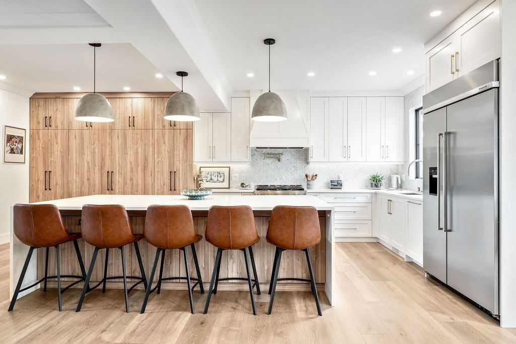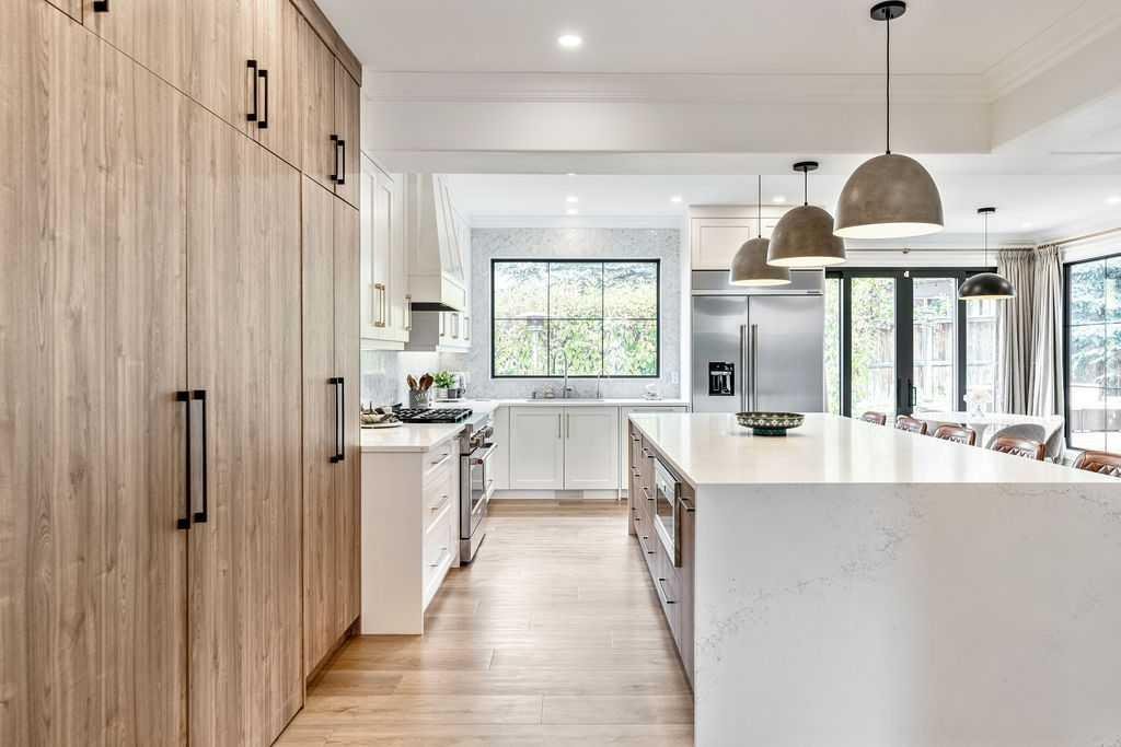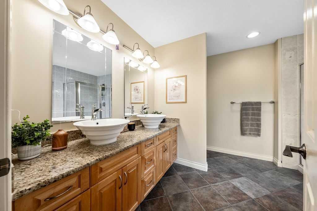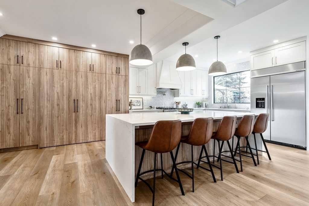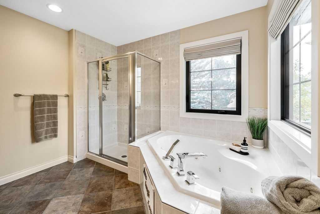SERENE + STYLISH IN SIMCREST ESTATES | Nestled into the very heart of the West Hill, this stunning family home offers 4193 sf of bright and airy living space, including 5 bedrooms, 3.5 bathrooms and a sprawling southwest facing pie lot. Truly a beautiful and bespoke “forever home” for a family looking to step up in style! You will love the timeless curb appeal with the combination of brick, acrylic stucco and black detailing, including the stunning new windows. The stylishly renovated main floor features an impressive vaulted entry with central staircase, open to the elegant formal dining room… perfect for entertaining all the friends and family. There are thoughtful, transitional detailing such as the wood panelling that blend harmoniously with the warm, contemporary design, creating an eclectic and sophisticated feel. Walk through to the inspired and sun-filled family space, showcasing a truly ‘magazine-worthy’ kitchen with a massive island, built-in luxury appliances, dedicated coffee station and ample storage throughout, including a unique “appliance garage”, allowing you to keep the essentials handy, but hidden. The charming breakfast nook has double door access to the outdoors and is seamlessly connected to the large family room complete with gas fireplace and lovely custom storage – all amidst the backdrop of the sun-filled windows. This expansive main floor offers everything a busy family will need, including a private main floor office, elegant powder room for guests, convenient boot/laundry room and entry from the heated double attached garage. Upstairs is a perfect layout for larger families with the 4 spacious bedrooms and 2 bathrooms. The primary bedroom has double glass paned doors, a walk-in closet, and a well maintained ensuite with soaker tub, walk-in shower and dual vanities. The fully finished basement has tons of storage space, a flexible recreation area with wet bar, the 5th bedroom and 3rd full bathroom. Enjoy the outdoors year round, whether chilling out on the large maintenance-free deck, playing with the kids in the spacious backyard or relaxing in the hot tub. Located on a quiet estate crescent, this home is walkable to top schools (both private and public), local amenities, the West LRT and the Westside Rec Centre. Watch your family thrive and grow in this special, once-in-a-lifetime home. For added peace of mind, there was Radon mitigation completed and all mechanicals have been well maintained. Make sure to book a private viewing today or stop by the open house this Saturday before this opportunity is gone!