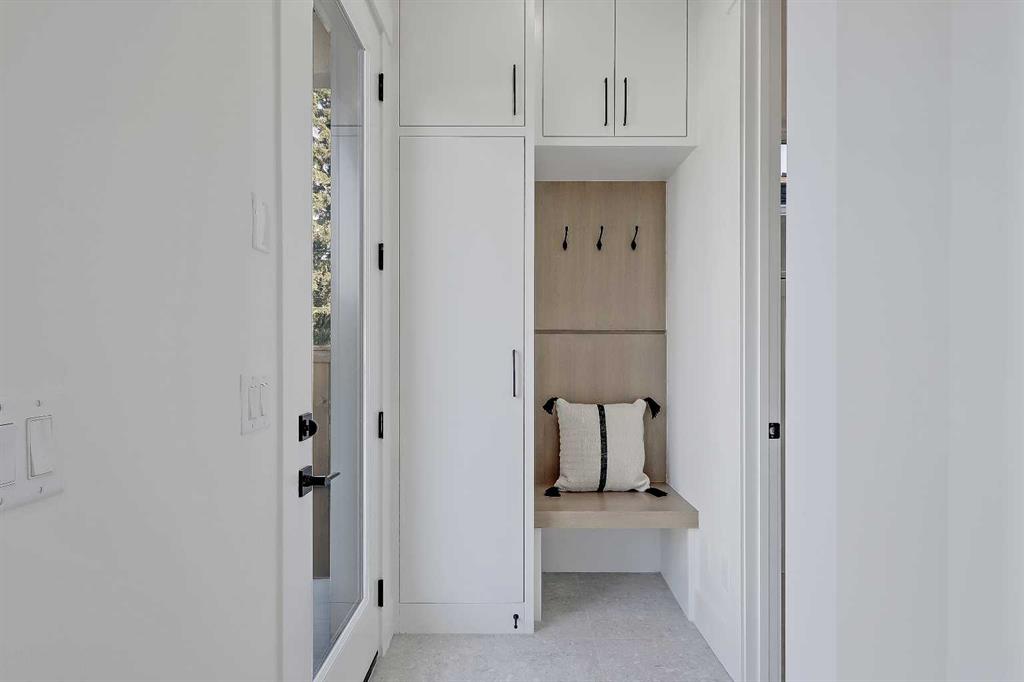 Tucked into the heart of SHAGANAPPI, this brand new 5-BED, SEMI-DETACHED home w/ LEGAL 2-BED SUITE (City approved) blends modern luxury with everyday comfort. Step through the arched entry to a welcoming foyer w/ walk-in coat closet, plus a stylish front OFFICE framed by glass doors, built-in desk & cabinetry—ideal for work-from-home. Wide-plank hardwood flows into the open-concept main floor, designed for living and entertaining. The living room centers on a sleek gas fireplace wall w/ designer tile surround and custom built-ins w/ inset lighting. At the back, the chef’s kitchen steals the show, anchored by a dedicated dining area w/ designer lighting, glass-front built-ins & in-cabinet lighting. High-end S/S appliances—gas range, custom hood fan, and DOUBLE WIDE FULL FRIDGE/FULL FREEZER, microwave & dishwasher—shine against an oversized quartz island built for gathering and stunning quartz backsplash with pot filler. A WALK-IN PANTRY w/ custom shelving adds smart storage. Bi-parting doors open to a large patio, extending the space outdoors. A chic powder room and mudroom w/ custom finishes complete this level. Upstairs, the primary suite feels like a retreat, w/ vaulted ceilings and oversized windows. The spa-inspired ensuite has it all: freestanding soaker tub, huge glass shower w/built in bench & rough in for steam, dual vanities w/ makeup desk, plus a dreamy walk-in closet. Two more bedrooms—each w/ TRAY CEILINGS with built-in lighting—share a stylish Jack & Jill bath w/ separated vanity & bath areas. The loft/study offers open shelving and flexible space for reading, working, or relaxing. A well-planned laundry room finishes this floor. The fully finished EXTENDED BASEMENT adds almost 1100sqft of additional living space. The legal 2-bed suite features quartz counters, S/S appliances, custom cabinets, private laundry, and its own side entrance w/ built-in storage. A bonus third space can connect to the suite or be locked off as a private GYM for the main home making it perfect for guests, family, or a rental incentive. Set in the vibrant Shaganappi community, this home puts Calgary’s best at your door. Golf at Shaganappi, stroll parks and pathways, or zip downtown in minutes. With great schools, trendy restaurants, boutique shopping, and easy transit nearby, this is modern city living at its best. All you have to do is move in! *Photos from show suite, finish may vary