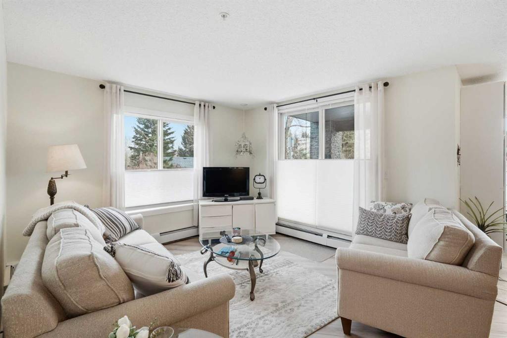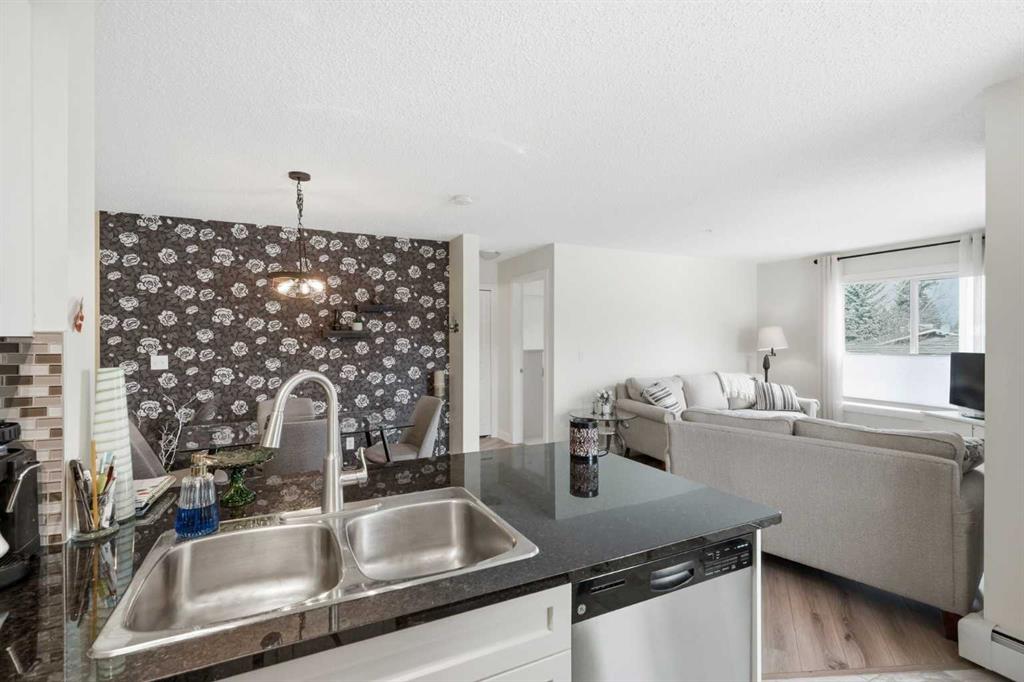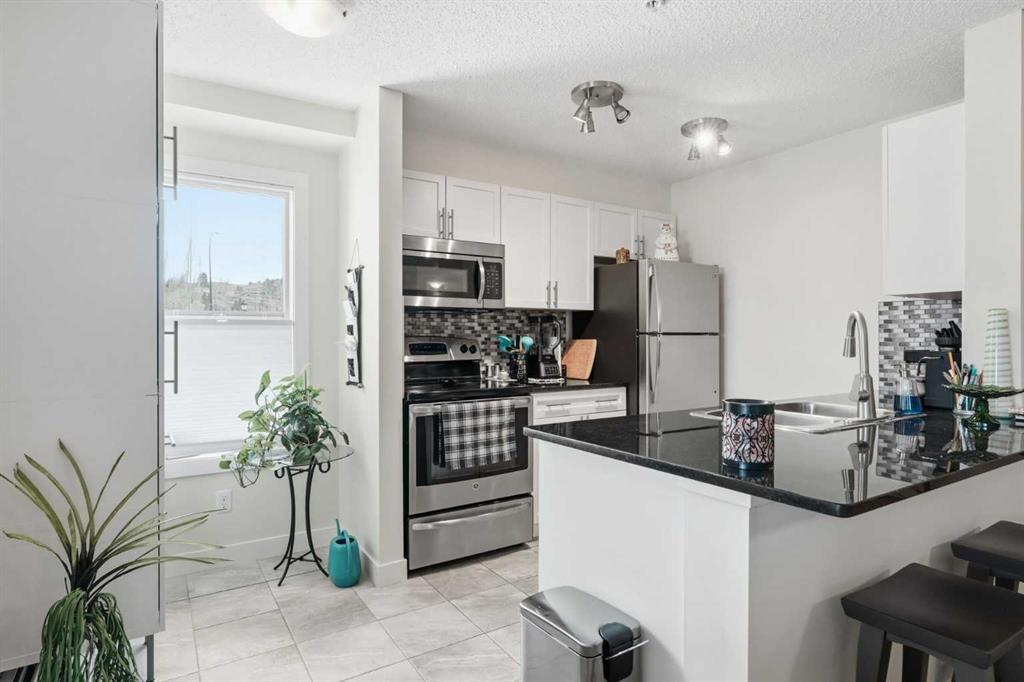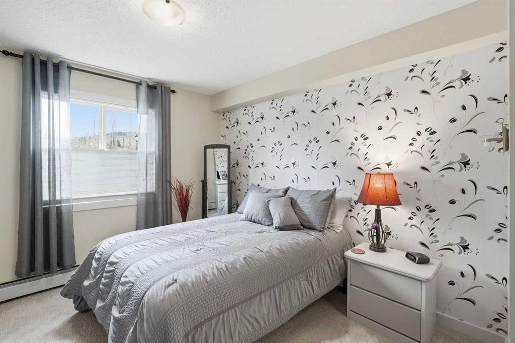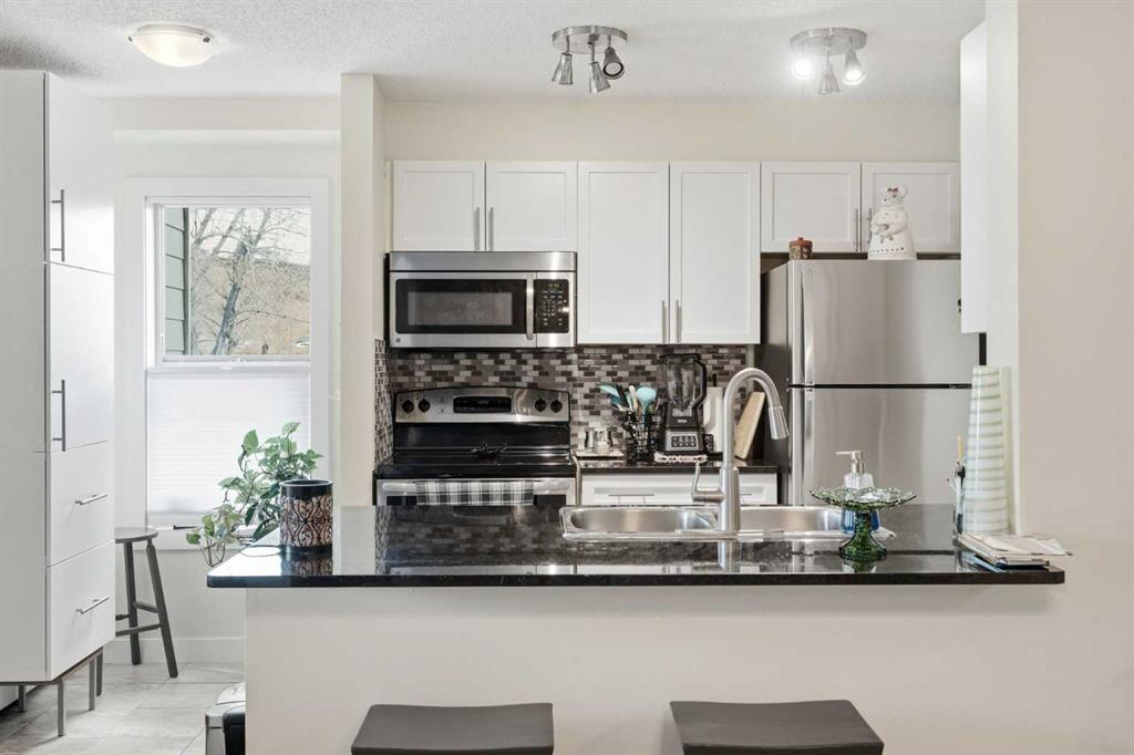 Come enjoy the privacy of this 963 Square foot main floor End condo. Centrally located, and private. This unit is spacious with lots of natural light. This unit offers 2 ample sized bedrooms, 2 full bathrooms and 2 arking spots, one underground and one outdoor stall – mere steps fron the unit. Enjoy the heart of Cochrane, with all amenities within wlking distance. Shopping, dining library and much more. Upgrades include granite counters in the kitchen, Stainless steel appliances, upgraded (and extra) cabinetds as well as the storage area has been added. The laundry room is spaciuus and allows for extra storage. Great bike/walking paths network just steps away.