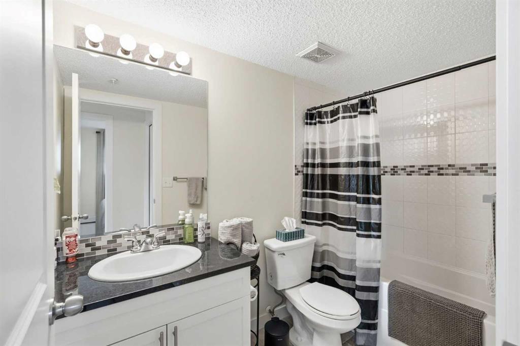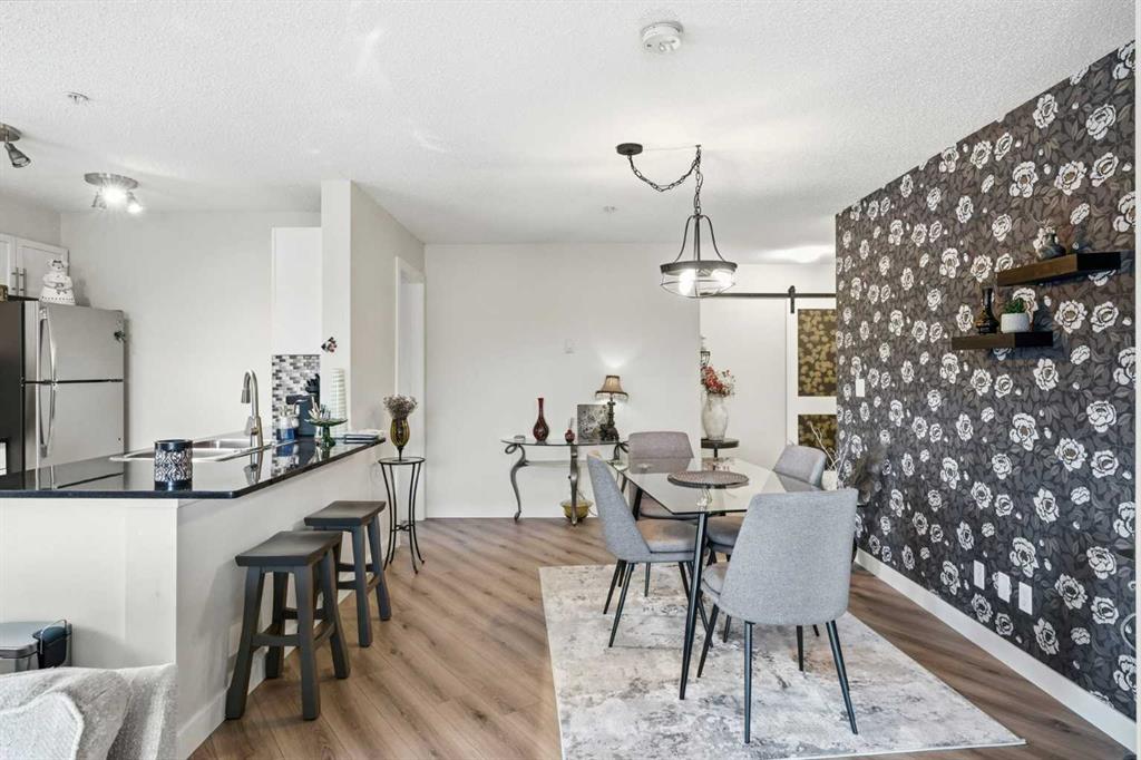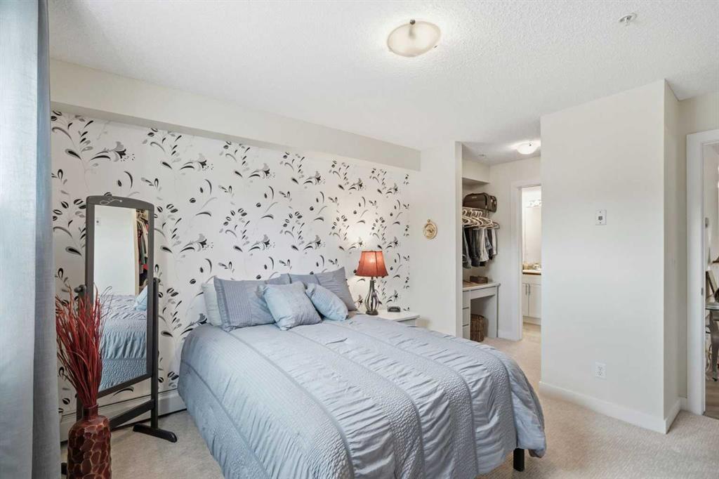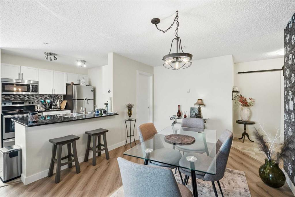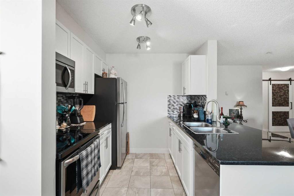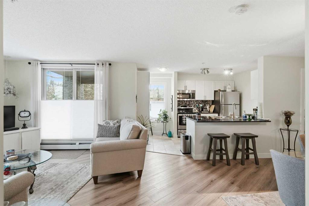 Come enjoy the privacy of this 963 Square foot main floor End condo. Centrally located, and private. This unit is spacious with lots of natural light. This unit offers 2 ample sized bedrooms, 2 full bathrooms and 2 arking spots, one underground and one outdoor stall – mere steps fron the unit. Enjoy the heart of Cochrane, with all amenities within wlking distance. Shopping, dining library and much more. Upgrades include granite counters in the kitchen, Stainless steel appliances, upgraded (and extra) cabinetds as well as the storage area has been added. The laundry room is spaciuus and allows for extra storage. Great bike/walking paths network just steps away.