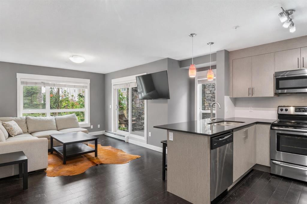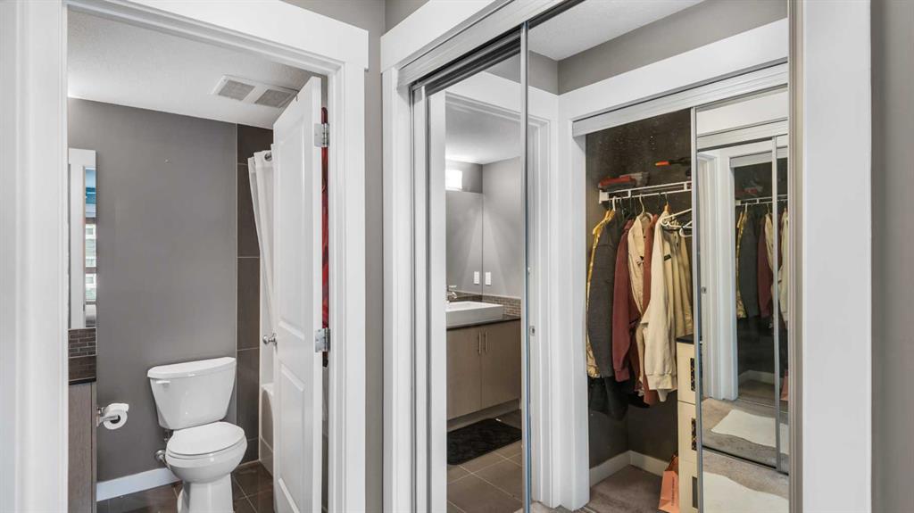 Two titled parking stalls, one above ground and one in the heated underground parkade, set this unit apart before you ever step inside. That combination is rare at this price point, and it matters whether you’re moving in, splitting costs with a roommate, or building a rental portfolio. The Skymills corner unit offers over 945 sq ft with two bedrooms, two full bathrooms, and south and west-facing windows that bring in natural light throughout the day. Cork flooring runs through the open-concept main area, where a modern kitchen with quartz countertops flows into the living and dining space. The layout works for everyday life and holds up well for guests. The primary bedroom is private with its own ensuite and double closets. The west-facing patio has a gas line hookup, a real outdoor extension of the living space, not just a Juliet balcony. Both bedrooms are properly sized with no compromises on function. Parks, schools, shopping, transit, and airport access are all close. A smart entry point into Skyview Ranch for first-time buyers and downsizers alike, and a solid long-term hold for investors.