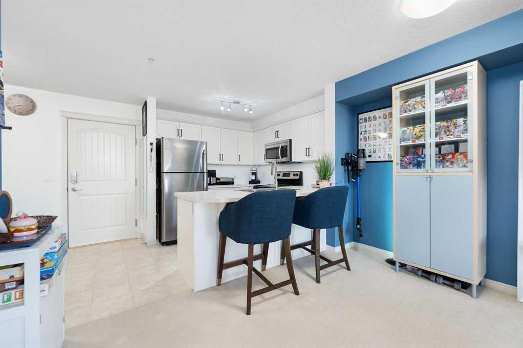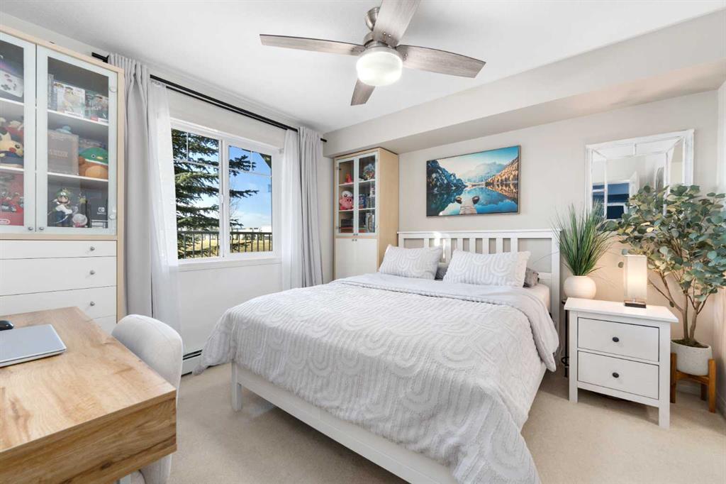 Welcome to Prestwick Place, in the heart of McKenzie Towne! This bright, move-in ready main floor unit combines thoughtful upgrades, modern comforts, and an unbeatable location – perfect for first-time buyers, downsizers, or anyone looking for a turnkey home. Step inside to the foyer, complete with an upgraded storage organizer in the front closet. The open-concept living area is filled with west-facing natural light, offering a serene view of the adjacent field. The kitchen has been thoughtfully upgraded with stainless steel appliances, built-in microwave and hood fan combo, double sinks, upgraded faucet with retractable sprayer, ample cabinetry with breakfast bar, and a stylish new light fixture — perfect for cooking or casual dining while enjoying the bright living area. The spacious bedroom features a walk-through closet with upgraded built-in organizers, drawers, open shelves, a custom drawer for jewelry and sunglasses, and a section designed for long items like dresses. From here, you have direct access to the upgraded bathroom, which boasts a new rainfall showerhead with water filter, upgraded toilet, and modern light fixture. The bathroom also has dual entry from the living area for added convenience. Additional upgrades include a fan light in the bedroom and a keypad entry lock for security and ease of use. Enjoy the large balcony overlooking the park and field, in-suite laundry, a dedicated storage locker in the underground parkade, and titled outside parking with plug-in. The building itself has been recently renovated in 2024, including new hall carpets, fresh paint, and an updated lobby, providing a refreshed and welcoming community. This pet-friendly complex (subject to board approval) is steps from the 130th Avenue shopping plaza, including Walmart, restaurants, and everyday amenities. Commuting is easy with quick access to Deerfoot Trail, Stoney Trail, South Health Campus, Fish Creek Park, and transit options. With thoughtful upgrades throughout, bright west-facing windows, a serene park view, and a prime location near shopping and transit, this Prestwick Place unit offers a lifestyle of comfort, convenience, and modern living. Don’t miss the opportunity to make this well-maintained, move-in ready home your own — schedule your viewing today!