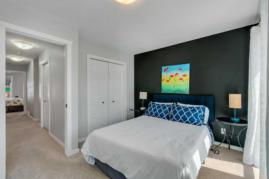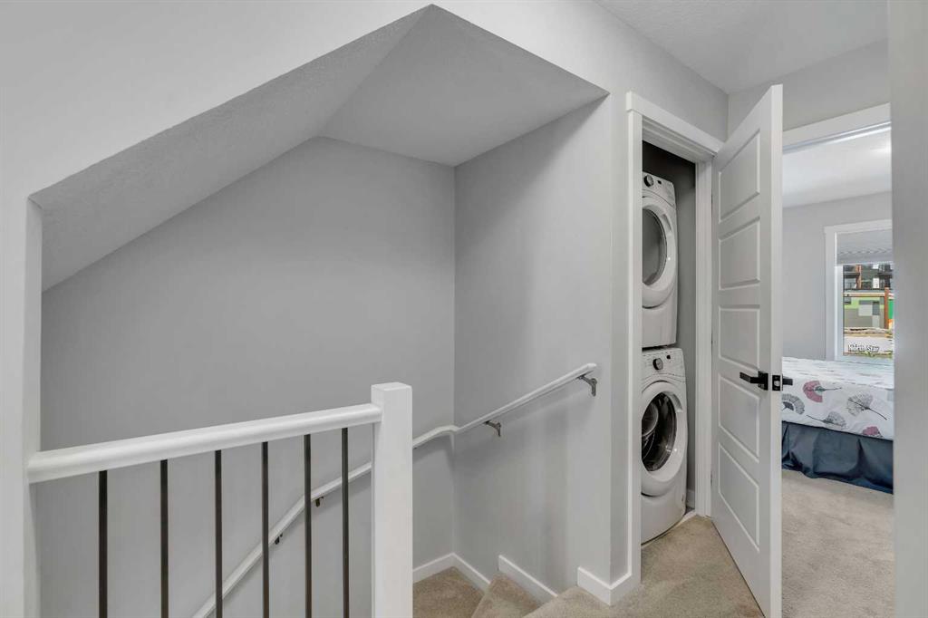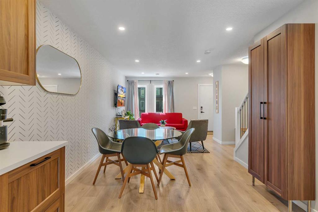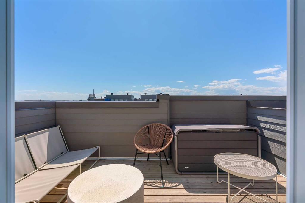 Welcome to 312, 19500-37 Street SE. A beautifully maintained, energy-efficient townhome in the sought-after Zen Urban District, ideally located in the vibrant heart of Seton. Offering over 1,500 square feet of thoughtfully designed living space across three levels, this home features 3 bedrooms, 2.5 bathrooms, and an incredible private rooftop patio with stunning mountain views. The open-concept main floor welcomes you with durable laminate flooring, a spacious living area, and a bright dining space that flows seamlessly into the modern kitchen. The kitchen boasts updated white cabinetry with a stylish blue-tone island, quartz countertops, stainless steel appliances, and an island with seating, all overlooking a fenced backyard. Upstairs, the primary suite features a 3-piece ensuite and a large closet, while the generous second bedroom is steps from a modern 4-piece bathroom. A convenient laundry closet is also on this level. Head up to the third floor to find a versatile loft-style third bedroom or flex space—perfect for a guest room, home office, TV room, or gaming area—along with direct access to the rooftop patio. Additional features that set this home apart include air conditioning for year-round comfort, designer wall treatments and upgraded window coverings for a polished aesthetic, and modern finishes throughout that make the home feel fresh and contemporary. It shows like new, reflecting the care and pride of ownership. Located in a prime interior spot within the complex, the home offers added privacy and quiet. Plus, with ZEN’s EnerGuide™ rating, you’ll benefit from an average of 36% energy savings each month, ensuring long-term value and efficiency. Live steps from the South Health Campus, shops, restaurants, cafes, fitness facilities, a movie theatre, and all the amenities that make Seton one of Calgary’s most dynamic communities.