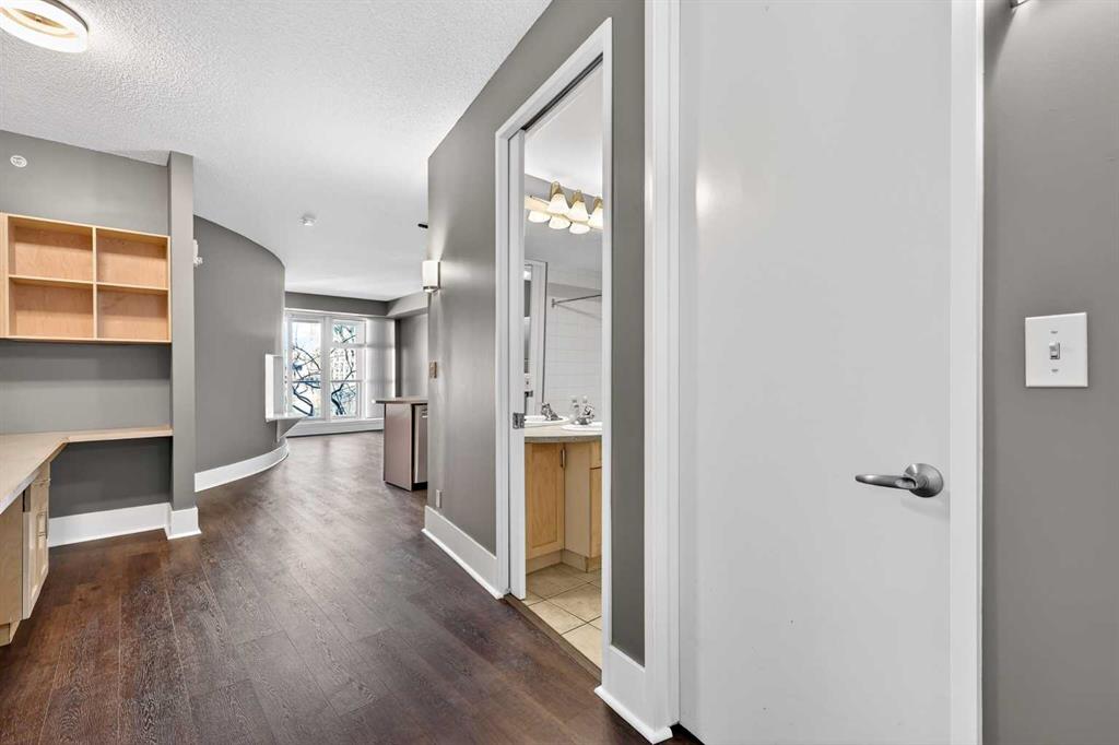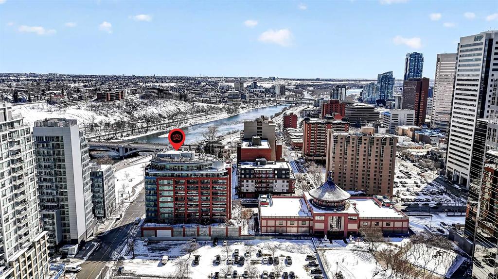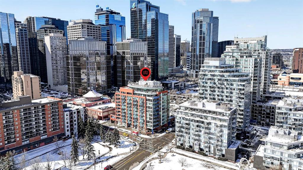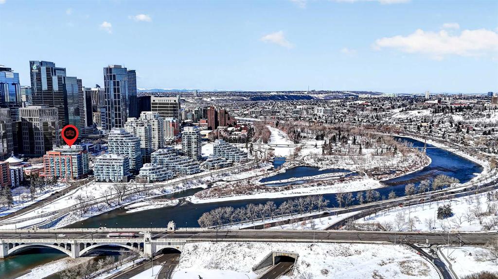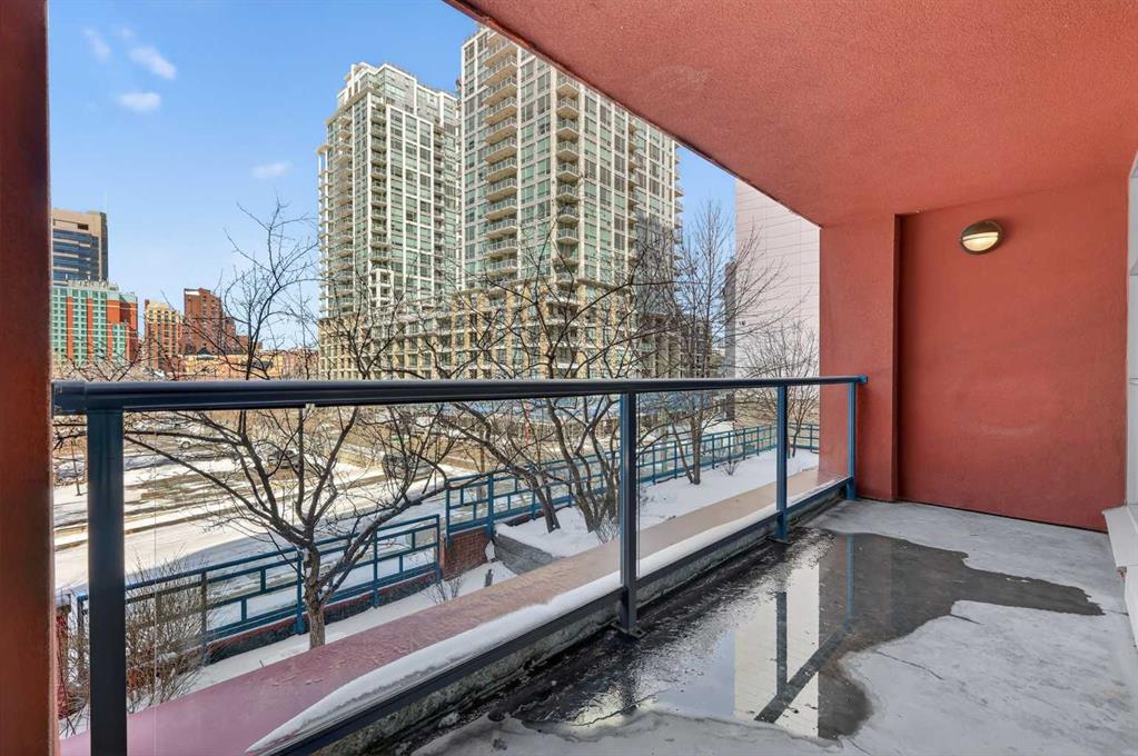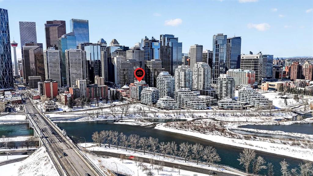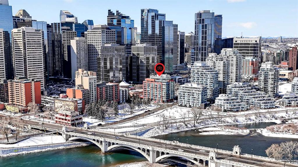 New flooring throughout. Central heat and AC.. In-unit laundry. Titled parking — stall #228 — so you’re never circling the block. A full-time concierge on site. The address does the rest: Stephen Avenue, Prince’s Island Park, and 17th Ave are all a short walk away.