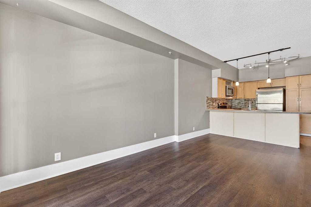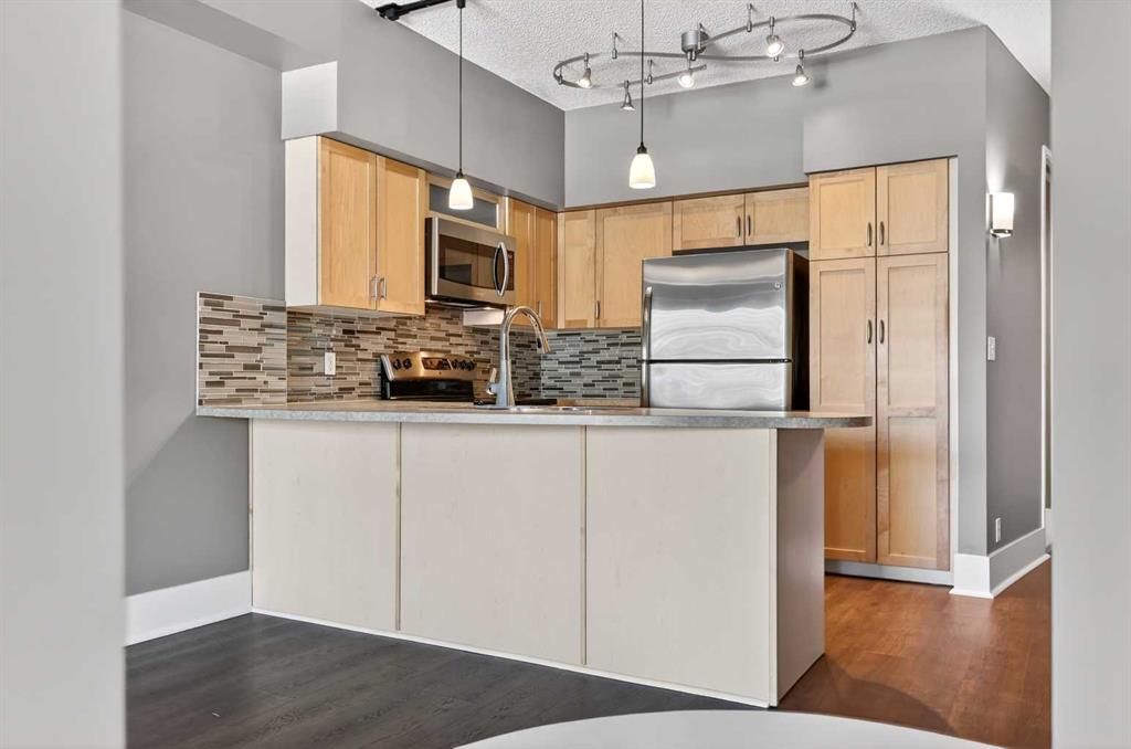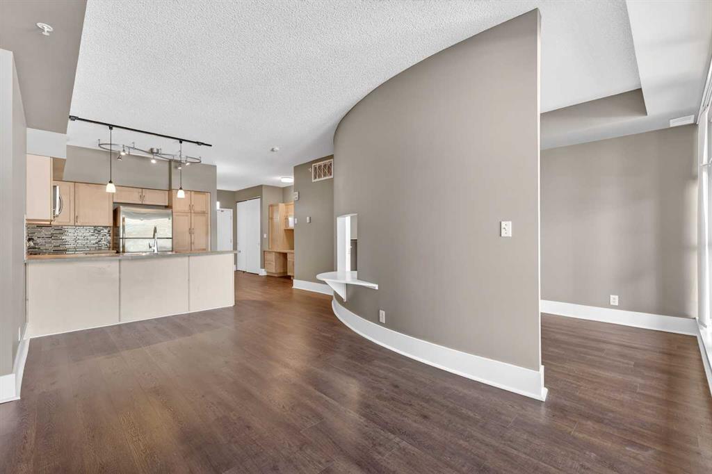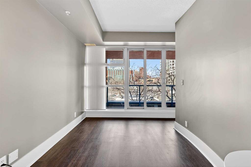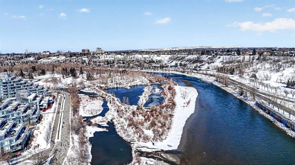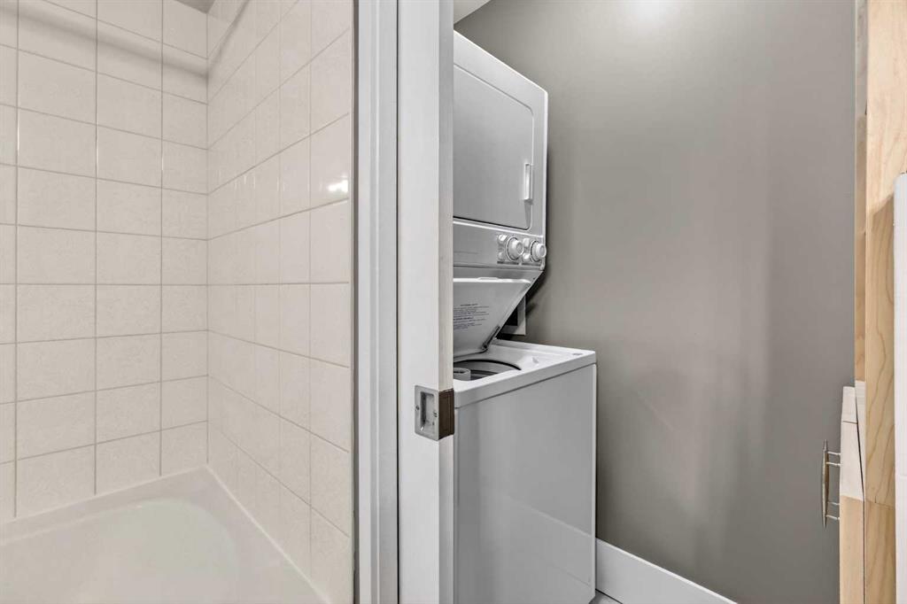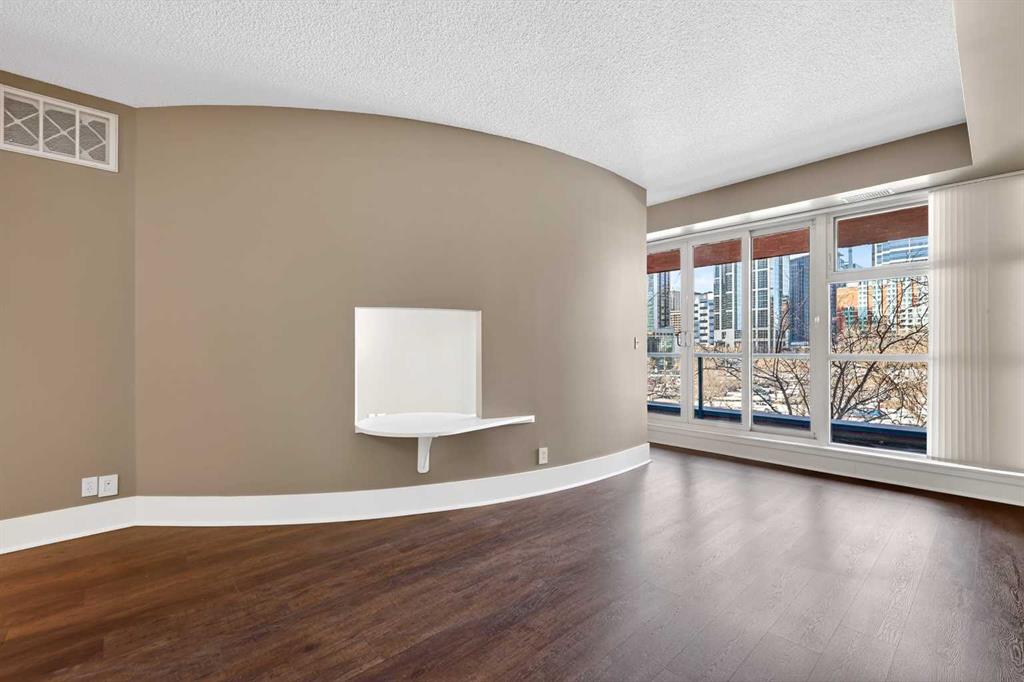 New flooring throughout. Central heat and AC.. In-unit laundry. Titled parking — stall #228 — so you’re never circling the block. A full-time concierge on site. The address does the rest: Stephen Avenue, Prince’s Island Park, and 17th Ave are all a short walk away.