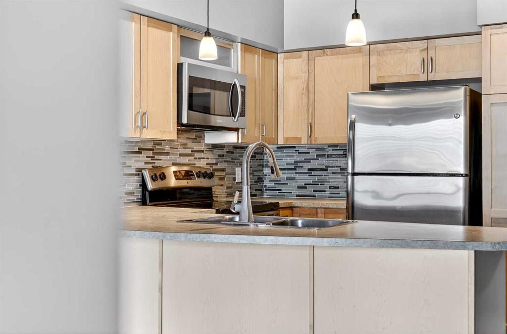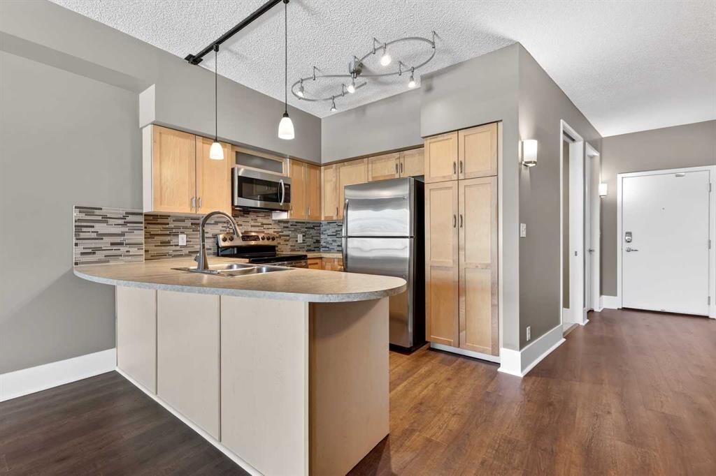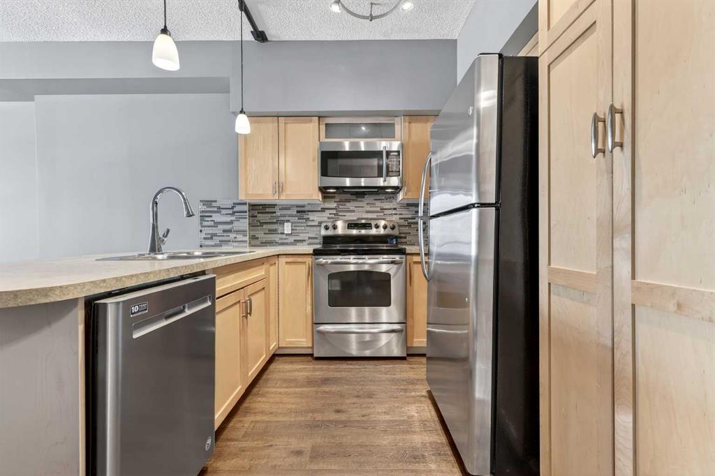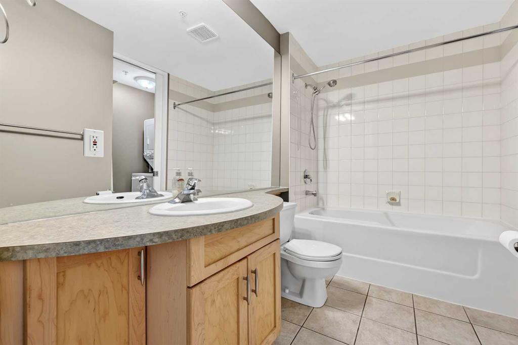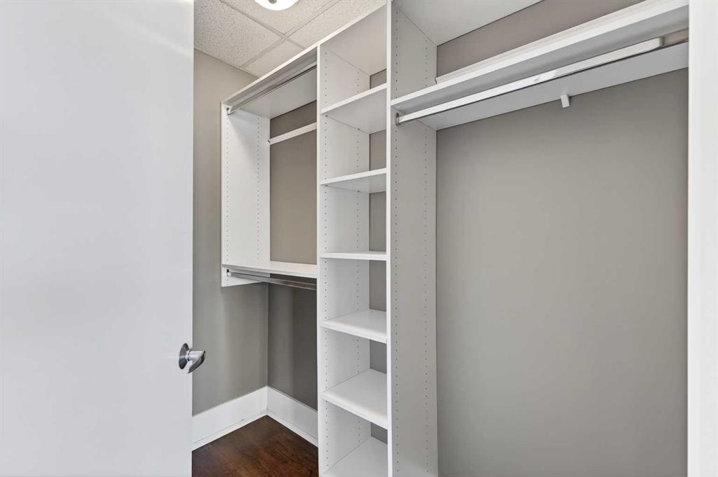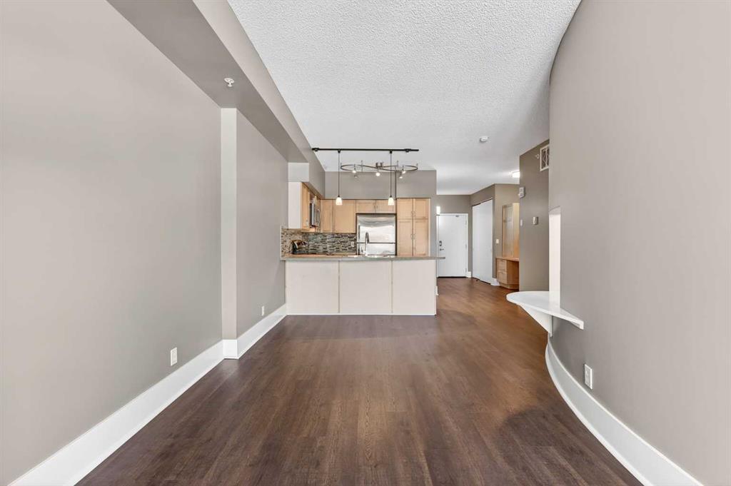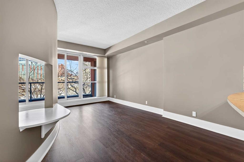 New flooring throughout. Central heat and AC.. In-unit laundry. Titled parking — stall #228 — so you’re never circling the block. A full-time concierge on site. The address does the rest: Stephen Avenue, Prince’s Island Park, and 17th Ave are all a short walk away.