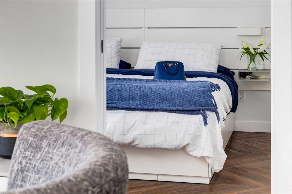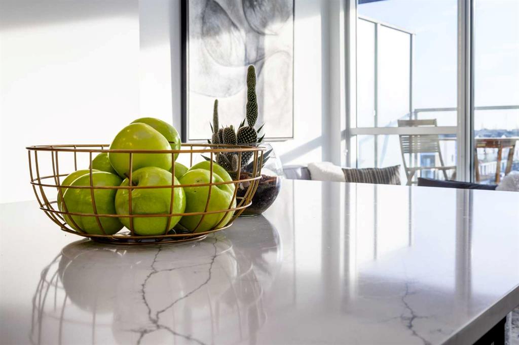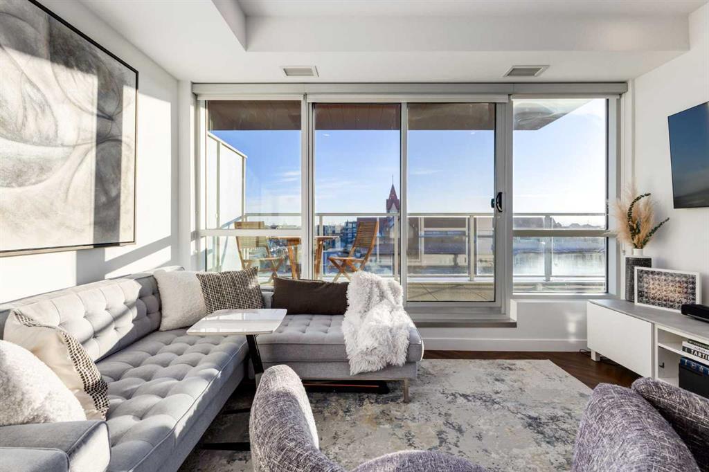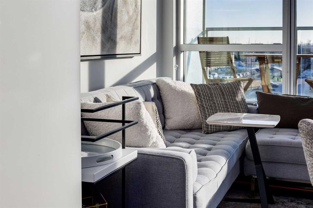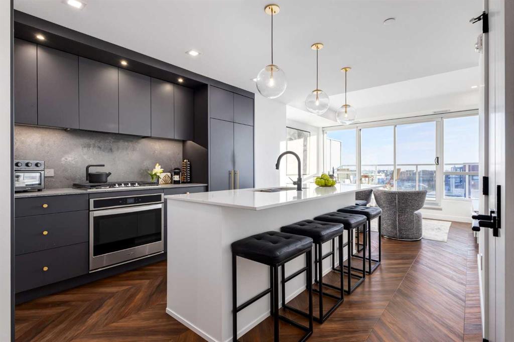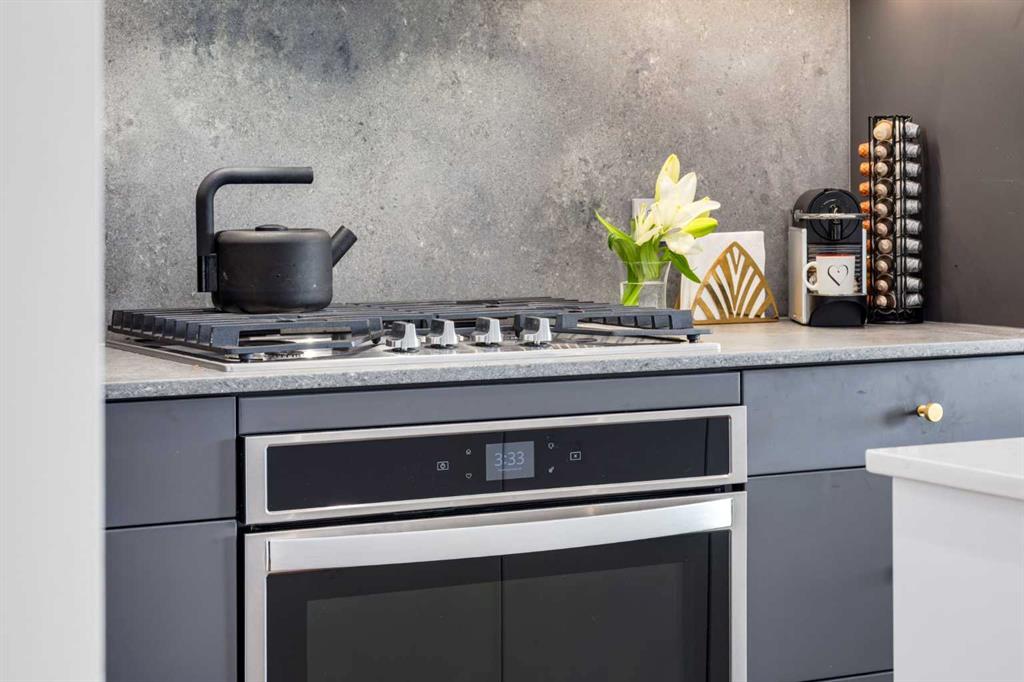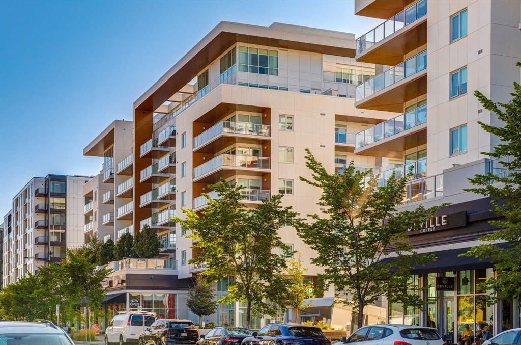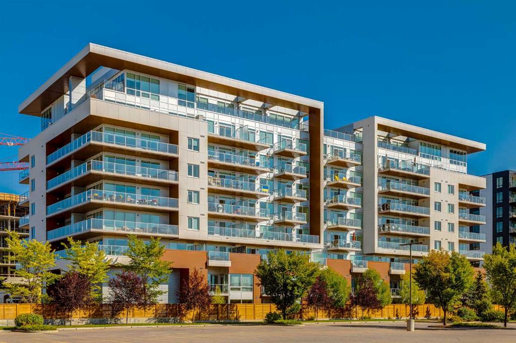 OPEN HOUSE SUNDAY JANUARY 25TH FROM 1PM TO 4PM. Located in the heart of West District, this bright south-facing two-bedroom, two-bathroom home offers an exceptional blend of privacy, natural light, and outdoor living. One of the few residences in the building with a generously sized patio, it backs onto the beautiful church park, offering views that will always remain open. The home offers 792 square feet of thoughtfully designed interior space, expanding to 962 square feet when including the private patio. The patio is perfect for morning coffee, summer dining, or entertaining, with plenty of room for a BBQ and outdoor seating. The open-concept living and dining areas are filled with natural light from floor-to-ceiling windows. High ceilings and refined painted finishes create a bright and inviting atmosphere. The chef-inspired kitchen features matte grey slate cabinetry with soft-close hardware, brushed gold accents, white quartz countertops, a coordinating backsplash, and premium appliances, including a Whirlpool five-burner cooktop and oven, Elica range hood, and Fisher & Paykel integrated fridge and freezer. The primary suite is a serene retreat, with large windows that fill the room with natural light. The walk-in closet provides ample storage, and the beautifully finished three-piece ensuite features quartz countertops, modern fixtures, and spa-inspired finishes. The second bedroom is spacious and versatile, ideal as a guest room, home office, or creative space, with convenient access to the four-piece bathroom. Additional highlights include an oversized washer and dryer and ample storage throughout. Residents enjoy access to premium amenities, including a rooftop patio, private owner’s lounge, secure underground visitor parking, bike storage, EV charging stations, and concierge services. Ideally located in Calgary’s West District, you are steps from parks, walking paths, boutique shops, cafés, and dining options. A rare opportunity to secure a south-facing home with beautiful views, elevated outdoor living, and exceptional value. Schedule your private viewing today!