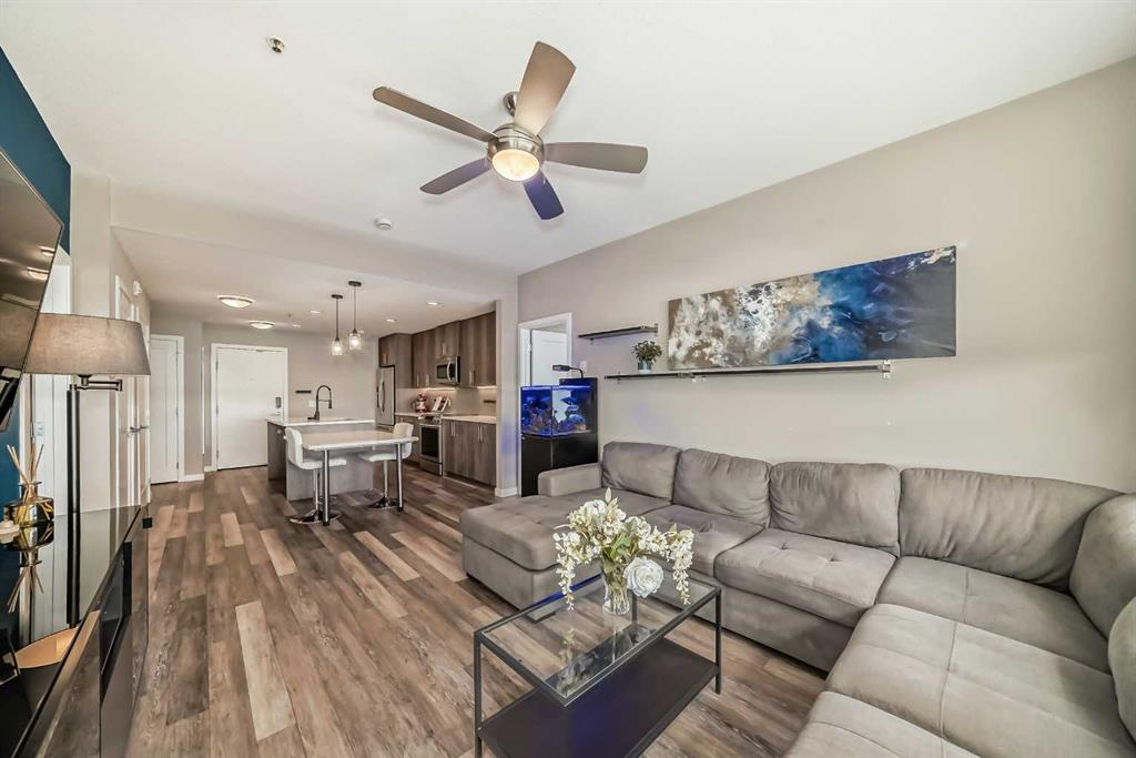 Welcome to Vivace North, where modern living meets city convenience! Located in the highly desirable community of West Springs, this stunning condo is the perfect spot for those seeking the best of both worlds. Situated just a stone’s throw away from Calgary’s hottest restaurants and pubs, including Mercato West, Vin Room, Blanco, Fergus & Bix, Una Pizza, 722, and many more, you’ll never have to travel far to enjoy a night out. And with easy access to grocery stores, (Co-op, No frills) shops, and local schools, and with only a fifteen-minute drive to downtown Calgary. The mountains are just a short drive away, providing endless opportunities for hiking, skiing, and other outdoor activities. A large foyer opens to a spacious, open plan that places the kitchen in the center of the living and cooking areas, ideal for entertaining. Featuring knockdown ceilings, LVP flooring, stainless steel appliances, eating bar, modern quartz counters, extended height cabinets with under cabinet lighting, This home has two bedrooms one with a jack and jill bathroom sharing access with the second bedroom and the common area, whereas the master bedroom is accompanied by an executive ensuite with a spacious walk in shower, walk through closets both bedrooms have their own private balcony. This unit comes with in-suite laundry, a storage locker, bike locker, and tandem double parking stalls. Don’t miss your chance to experience luxury living in one of Calgary’s most desirable neighborhoods. Call your favorite agent today to book your private viewing of this stunning condo at Vivace North!