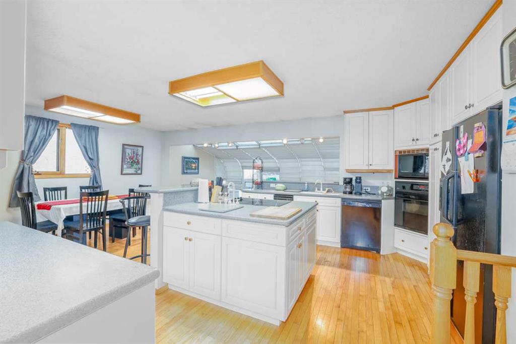 ****OPENHOUSE SATURDAY NOVEMBER 15,2024 2-4PM**** This well-located split-level home offers a functional layout, generous room sizes and valuable parking features including a 3-car garage and an RV pad. Hardwood floors on the main level add warmth and durability, while a bayed living room brings in natural light for everyday comfort. A well-laid-out kitchen provides ample cabinet space, a centre island with a raised breakfast bar and clear sightlines into the dining room to support easy mealtimes and relaxed entertaining. A glass-enclosed sunroom sits just off the kitchen for quiet morning coffees or extra space to unwind in any season. Upstairs, a primary bedroom features patio sliders for direct access to the backyard, creating a convenient indoor-outdoor flow. 2 additional bedrooms and a 5-piece bathroom complete this level with flexibility for families or guests. A spacious lower-level rec room provides room for movies, games and casual gatherings, while French doors open to a den perfect for a quiet work or hobby space. A 4-piece bathroom on this level adds further convenience. The basement remains unfinished, providing abundant storage and future development potential. Outside, an expansive grassy yard delivers space for kids and pets to play and a deck off the primary bedroom enhances outdoor living options. A triple car garage plus RV parking to the side creates outstanding functionality for vehicles, hobbies and equipment. This home is set in the walkable community of Queensland where residents enjoy quick access to both the Bow River and Fish Creek Park, along with nearby shopping at Deer Valley Market Place and Deer Ridge Shopping Centre. Local schools, playgrounds, green spaces and an active community centre with year-round programs contribute to the everyday convenience and family-friendly feel of this established southeast neighbourhood.