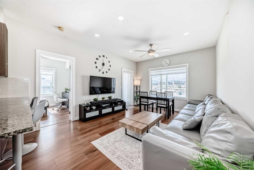 This home features an open-concept main floor designed for comfortable everyday living, with a bright living area, bar stool dining space, and a contemporary kitchen complete with ample cabinetry and workspace. Large windows provide natural light, creating a warm and inviting atmosphere.