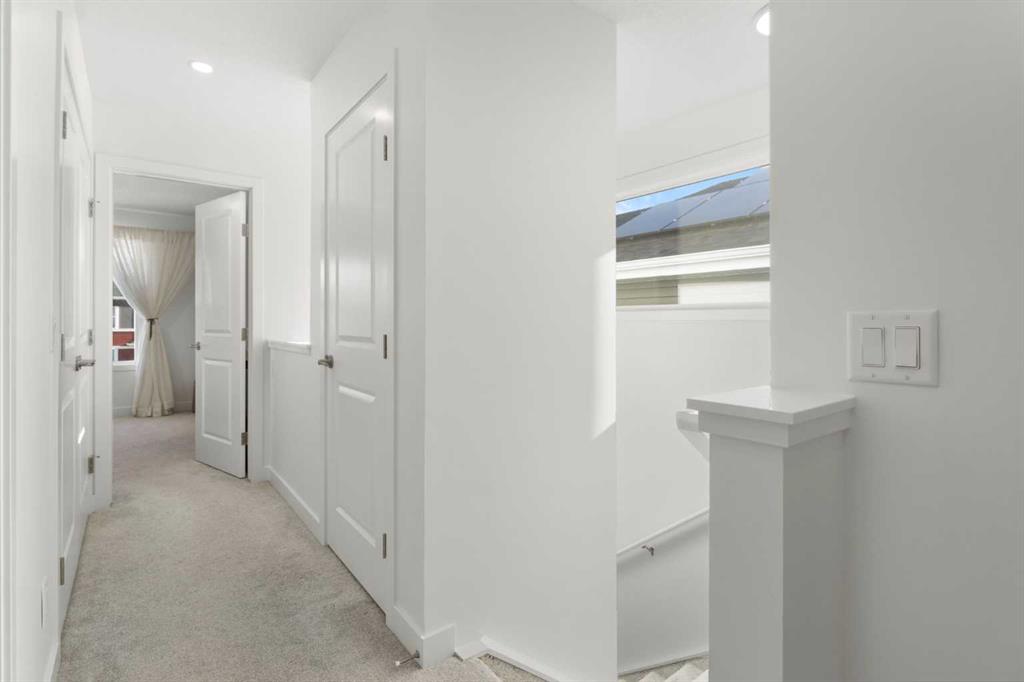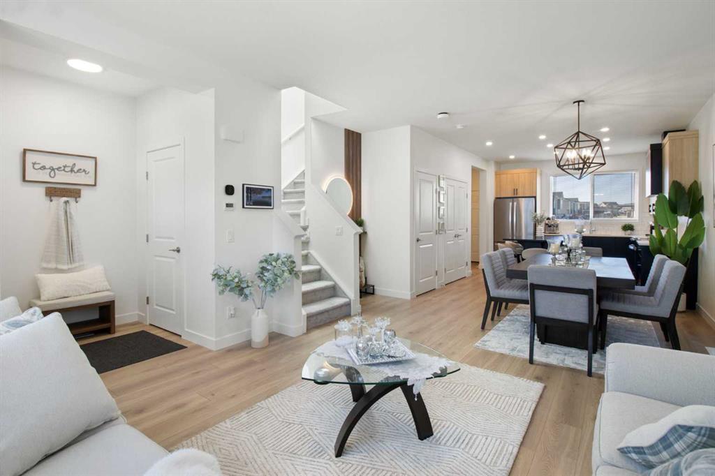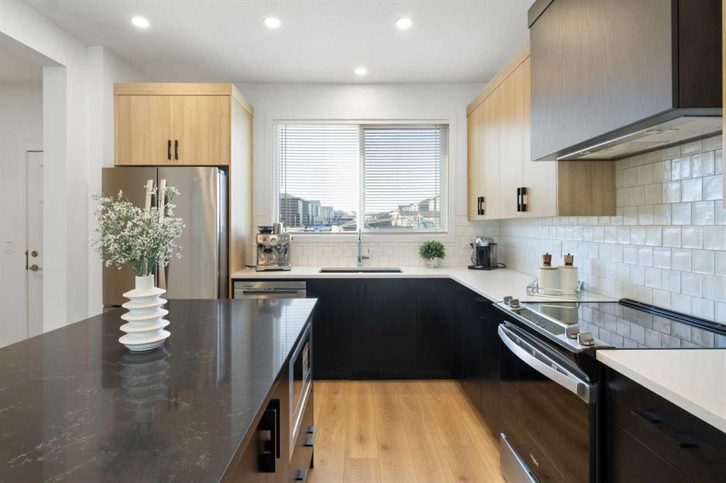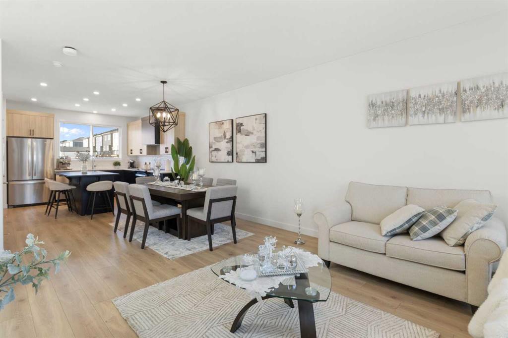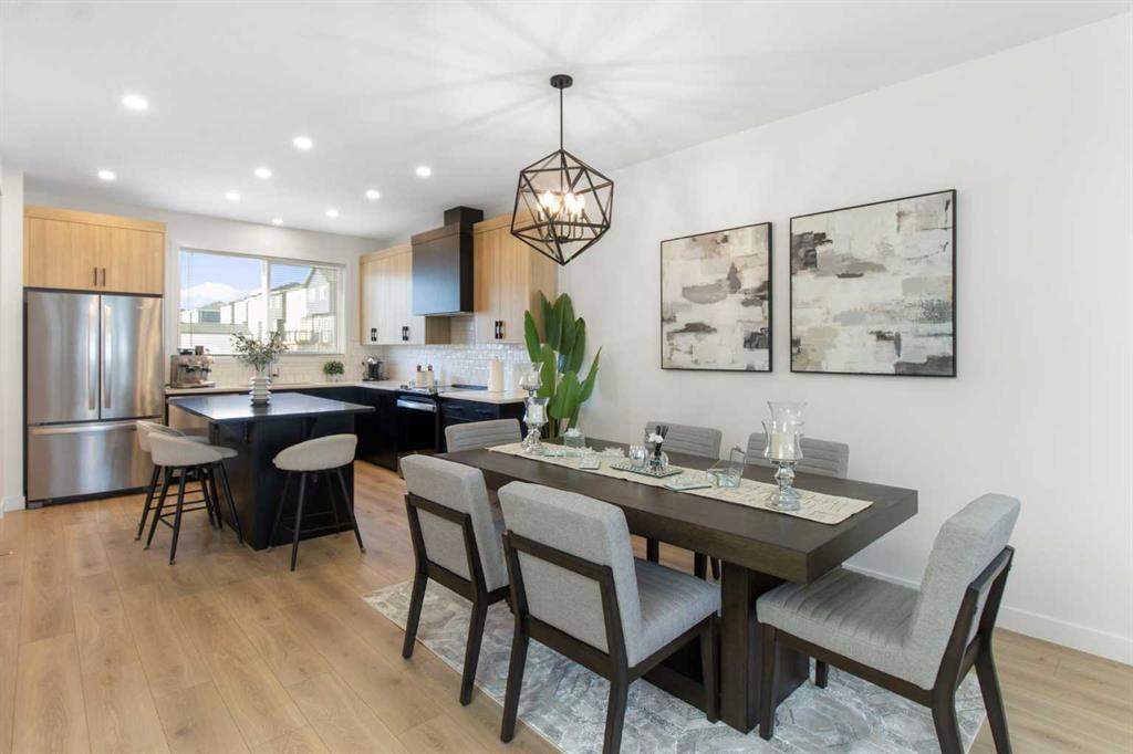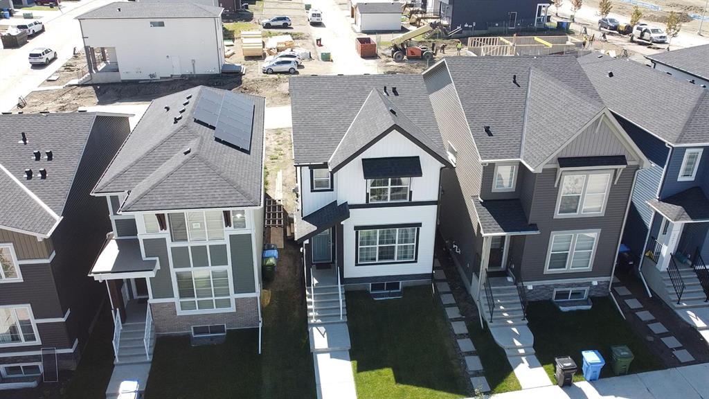 Move-In Ready DETACHED Upgraded 2024 home in the heart of Ambleton NW Calgary with NO GST added to the price! Unlike many new lots still facing active construction, this home sits on a SETTLED street, offering a more established feel while still being just steps from Ambleton lake, parks, playgrounds, and future school sites. Inside, you’ll love the 1,433 sq. ft. open-concept layout with 3 bedrooms + 2.5 baths, thoughtfully upgraded with premium finishes. The heart of this home is its elevated GOURMET kitchen, designed with a stylish centre island and flush eating bar, complemented by sleek STAINLESS STEEL appliances including a French door refrigerator with ice maker, Panasonic microwave, and designer hood fan. The open design flows seamlessly into the spacious dining area, perfect for both family dinners and entertaining guests. This home comes with high-performance standards, including: 10 SOLAR PANELS, you will save on energy bills. Outdoor living ready with a 12′ x 10′ COMPOSITE DECK, durable, elegant, low maintenance, and perfect for entertaining (a $7,000 value already included). A SEPARATE SIDE ENTRY, perfect for future basement development of a LEGAL SUITE. SMART HOME package including Echo Hub 8″ wall panel (with Alexa), Ring Doorbell + Floodlight, Ecobee thermostat, smart lock & Wi-Fi booster. QUARTZ COUNTERTOPS in kitchen and all bathrooms. Built Green Canada certification with EnerGuide rating. UV-C Ultraviolet Light Purification System. High-efficiency furnace & HRV unit. Navien tankless hot water heater. Triple-pane windows. Raised 9’ ceilings. Front landscaping already complete. Rear BBQ gas line. And with easy access to Stoney Trail & 144 Ave NW, you’re minutes from downtown, the airport, shopping, and dining. Why buy ATTACHED when you can buy this DETACHED HOME FOR A LOWER PRICE!