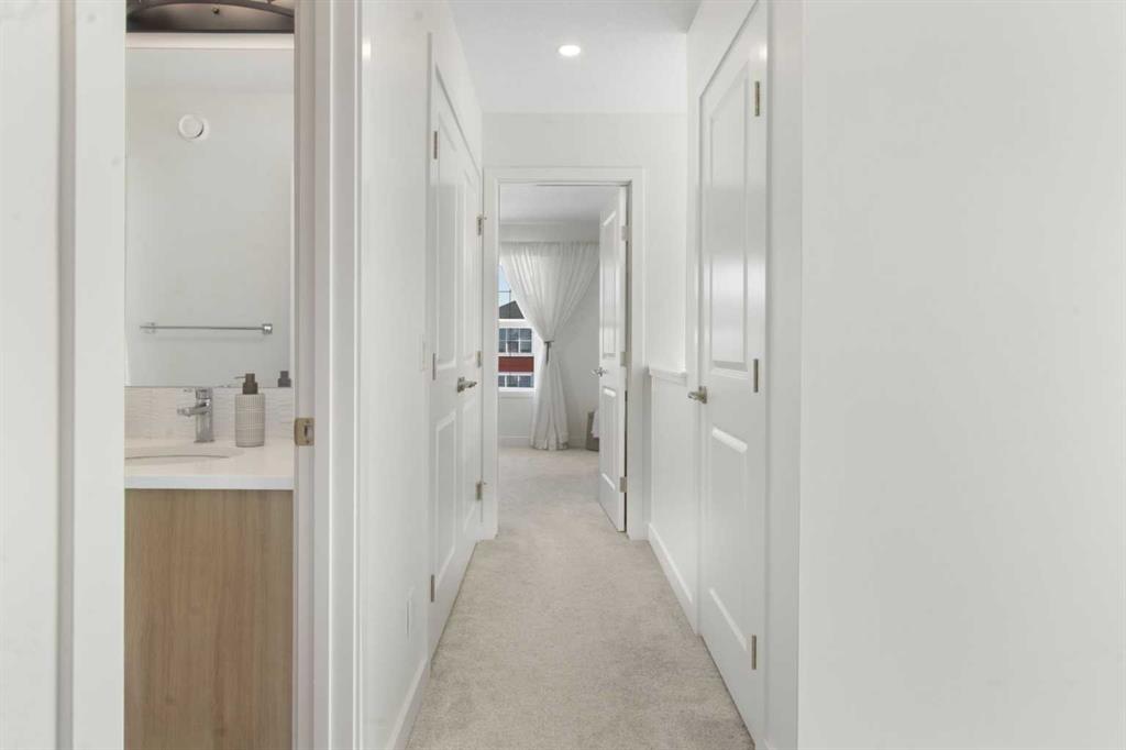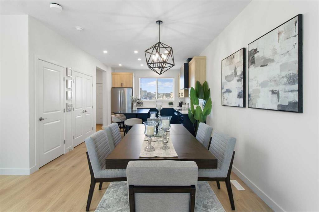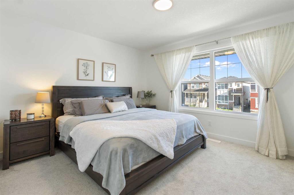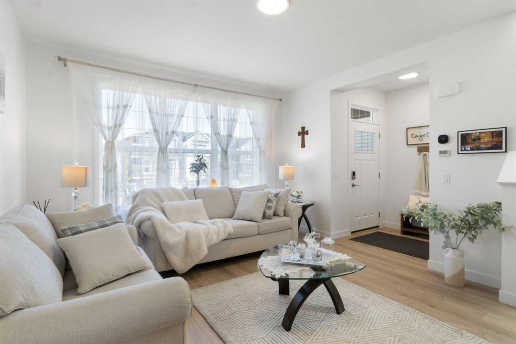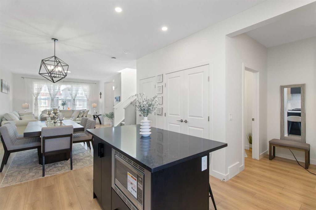 Move-In Ready DETACHED Upgraded 2024 home in the heart of Ambleton NW Calgary with NO GST added to the price! Unlike many new lots still facing active construction, this home sits on a SETTLED street, offering a more established feel while still being just steps from Ambleton lake, parks, playgrounds, and future school sites. Inside, you’ll love the 1,433 sq. ft. open-concept layout with 3 bedrooms + 2.5 baths, thoughtfully upgraded with premium finishes. The heart of this home is its elevated GOURMET kitchen, designed with a stylish centre island and flush eating bar, complemented by sleek STAINLESS STEEL appliances including a French door refrigerator with ice maker, Panasonic microwave, and designer hood fan. The open design flows seamlessly into the spacious dining area, perfect for both family dinners and entertaining guests. This home comes with high-performance standards, including: 10 SOLAR PANELS, you will save on energy bills. Outdoor living ready with a 12′ x 10′ COMPOSITE DECK, durable, elegant, low maintenance, and perfect for entertaining (a $7,000 value already included). A SEPARATE SIDE ENTRY, perfect for future basement development of a LEGAL SUITE. SMART HOME package including Echo Hub 8″ wall panel (with Alexa), Ring Doorbell + Floodlight, Ecobee thermostat, smart lock & Wi-Fi booster. QUARTZ COUNTERTOPS in kitchen and all bathrooms. Built Green Canada certification with EnerGuide rating. UV-C Ultraviolet Light Purification System. High-efficiency furnace & HRV unit. Navien tankless hot water heater. Triple-pane windows. Raised 9’ ceilings. Front landscaping already complete. Rear BBQ gas line. And with easy access to Stoney Trail & 144 Ave NW, you’re minutes from downtown, the airport, shopping, and dining. Why buy ATTACHED when you can buy this DETACHED HOME FOR A LOWER PRICE!