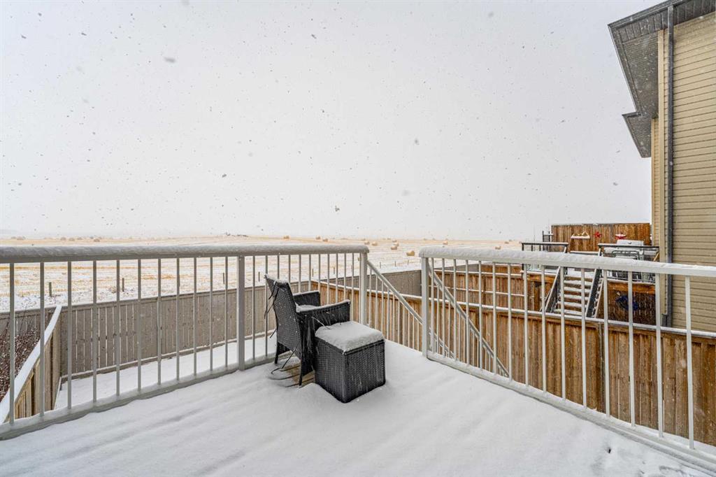 Step outside to enjoy the sunny south-facing, private fenced backyard, backing onto peaceful, undeveloped farmer’s fields. On clear days, take in stunning views of the Calgary skyline from your large raised deck, the perfect place to relax or host summer gatherings.