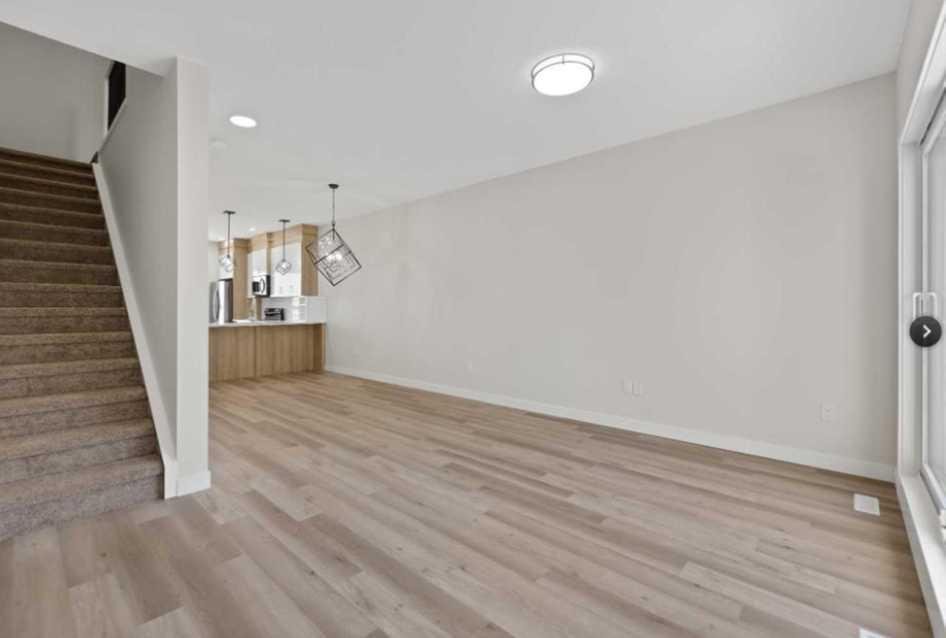 Welcome to this brand new modern townhouse offering 1,553 sq ft of thoughtfully designed living space in a desirable west facing location. This stylish 3-bedroom, 3.5-bathroom home delivers the ideal balance of comfort, function, and low-maintenance living. The main level features a welcoming entryway, direct access to the attached front garage, and a private bedroom with a full ensuite bathroom. This space is perfect for guests, a home office, or multi-generational living. The second floor showcases an open-concept layout filled with natural light, complete with a spacious living and dining area, a sleek modern kitchen with stainless steel appliances, and a private balcony that is ideal for evening relaxation or weekend BBQs. A convenient powder room completes this level. Upstairs, you will find two generously sized bedrooms, each with its own ensuite for maximum privacy. The laundry area with a stacked washer and dryer is also conveniently located on this upper floor. Positioned as the third unit from the corner, this west-facing home enjoys great natural light and modern curb appeal. Located near key amenities, green spaces, and commuter routes, this is an excellent opportunity to own a move-in-ready home.