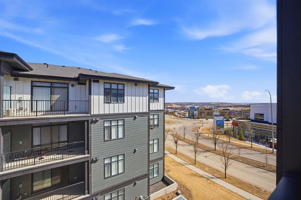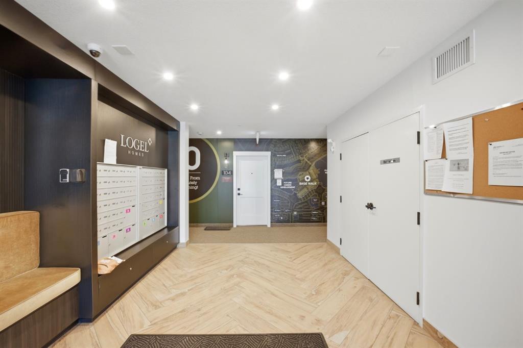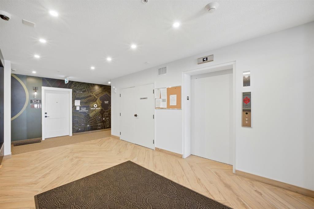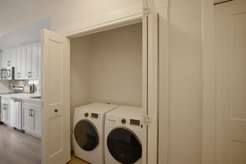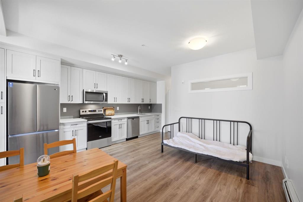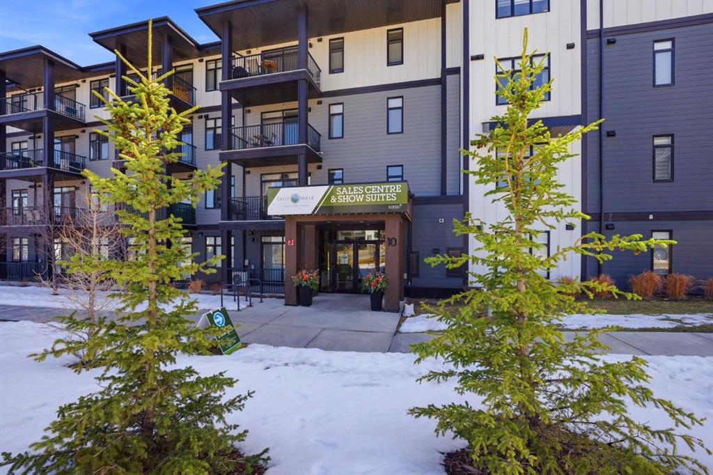 Stylish one bedroom-condo, in a quiet, well-kept and well-run complex in Sage Hill. This unit is perfect for professionals, first-time buyers, investors, or those looking to downsize! Featuring 514.91 sq ft of thoughtfully designed living space, this home offers a functional layout with modern finishes throughout. As you enter the unit, you’re welcomed by luxury vinyl plank flooring throughout. Near the entrance, there is a private full bathroom, a coat closet, and convenient in-suite laundry with Samsung washer and dryer. As you progress into the unit, you’ll find the bedroom, complete with a good-sized closet and a decorative interior feature window that allows natural light to flow in from the main living area. The well-equipped kitchen features white Shaker-style cabinetry, quartz countertops, stainless steel appliances, and a stylish subway tile backsplash, opening seamlessly to the spacious living room to allow for flexible furniture layouts and comfortable everyday living. Double sliding doors lead to the generously sized covered balcony, complete with aluminum railings, privacy glass, and a gas hook-up for your barbeque—perfect for enjoying outdoor space with both privacy and functionality. This unit includes one assigned outdoor parking stall conveniently located in front of the building, as well as an assigned storage locker located in the parkade. The dining table and bed in bedroom are included with the sale, adding extra value and convenience. Ideally situated close to shopping, amenities, transit, walking paths, and parks, with easy access to Stoney Trail and Shaganappi Trail. Pets are allowed with board approval.