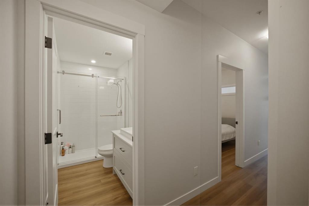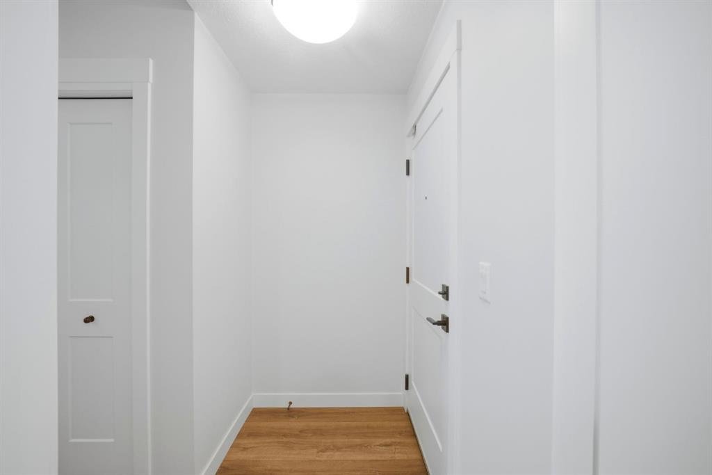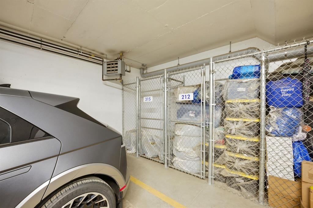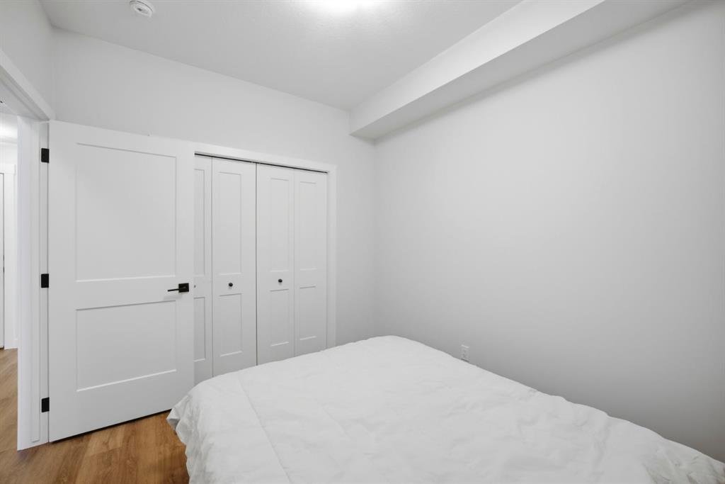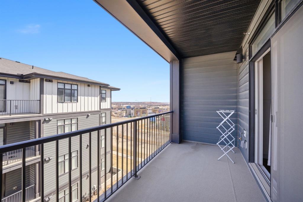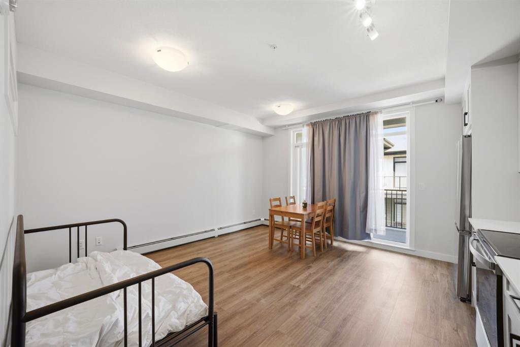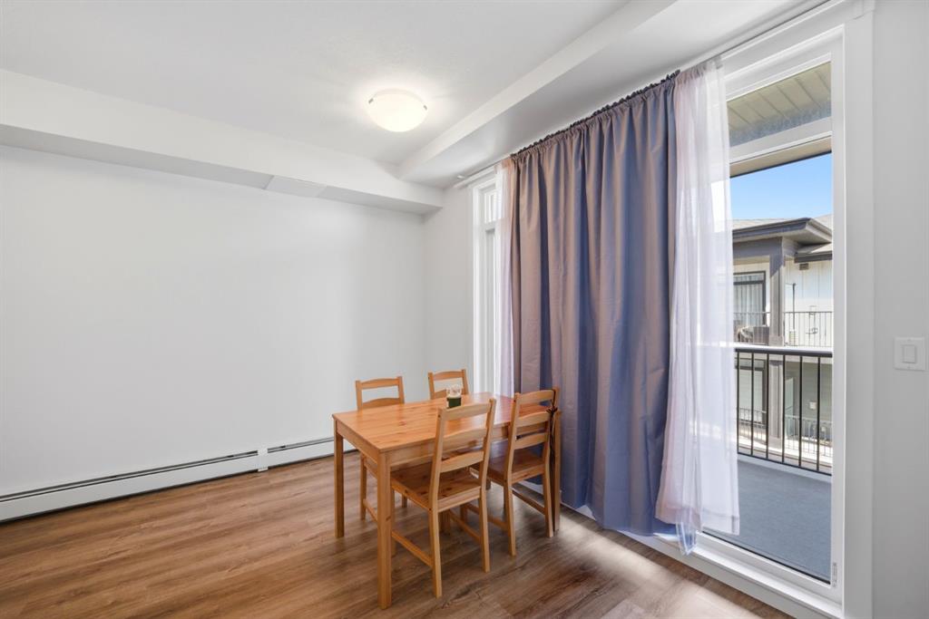 Stylish one bedroom-condo, in a quiet, well-kept and well-run complex in Sage Hill. This unit is perfect for professionals, first-time buyers, investors, or those looking to downsize! Featuring 514.91 sq ft of thoughtfully designed living space, this home offers a functional layout with modern finishes throughout. As you enter the unit, you’re welcomed by luxury vinyl plank flooring throughout. Near the entrance, there is a private full bathroom, a coat closet, and convenient in-suite laundry with Samsung washer and dryer. As you progress into the unit, you’ll find the bedroom, complete with a good-sized closet and a decorative interior feature window that allows natural light to flow in from the main living area. The well-equipped kitchen features white Shaker-style cabinetry, quartz countertops, stainless steel appliances, and a stylish subway tile backsplash, opening seamlessly to the spacious living room to allow for flexible furniture layouts and comfortable everyday living. Double sliding doors lead to the generously sized covered balcony, complete with aluminum railings, privacy glass, and a gas hook-up for your barbeque—perfect for enjoying outdoor space with both privacy and functionality. This unit includes one assigned outdoor parking stall conveniently located in front of the building, as well as an assigned storage locker located in the parkade. The dining table and bed in bedroom are included with the sale, adding extra value and convenience. Ideally situated close to shopping, amenities, transit, walking paths, and parks, with easy access to Stoney Trail and Shaganappi Trail. Pets are allowed with board approval.