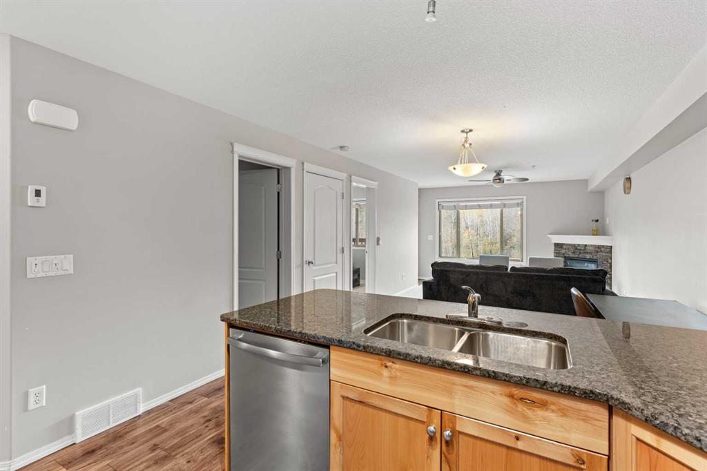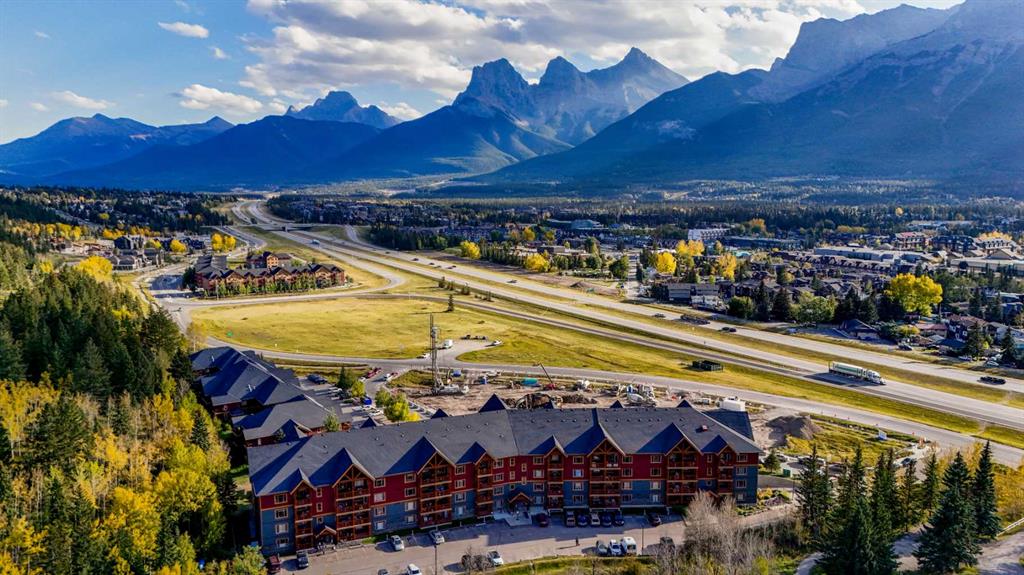 Wake up to uninterrupted mountain panoramas in this bright, refined 1-bedroom + den residence in Canmore. Elevated on the 3rd floor, the home is perfectly positioned to capture all-day natural light and sweeping Rocky Mountain views that frame every room. The gourmet kitchen, finished with granite countertops, seamlessly integrates with the dining and living areas, extending onto a private balcony where the mountains feel impossibly close. The primary bedroom enjoys the same breathtaking outlook, while the spacious den offers an ideal home office, reading room, or additional guest space. Convenience is unmatched with an outdoor parking stall steps from the entrance and an oversized 11′ x 7′ heated storage locker—one of the largest in the building. The community enhances your lifestyle with a fully equipped fitness centre, children’s playground, dog park, and workshop, along with direct access to scenic trails that define the Canmore experience. Secure underground parking adds an extra layer of comfort, and residents enjoy exceptional amenities including a modern fitness facility, ski and snowboard tuning room, carpentry room, and a welcoming common lounge perfect for gatherings and celebrations. This is more than a home—it’s a luxury vantage point to the Rockies and a gateway to the Canmore lifestyle.