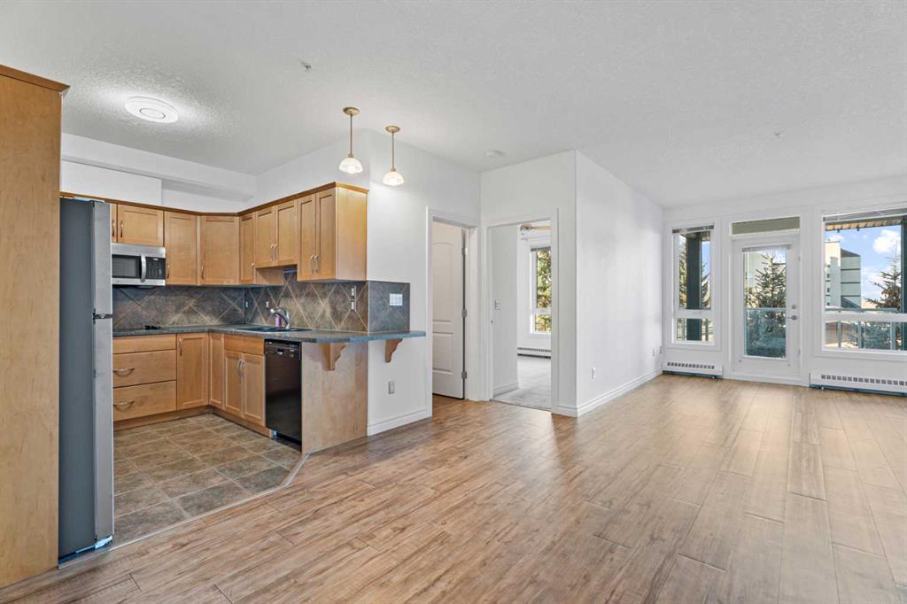 Prime Location. Smart Investment. Elevated Living. Perfectly positioned directly across from the University of Calgary, this third-floor unit offers an unbeatable combination of lifestyle, convenience, and long-term value. With a large primary bedroom, a walk-in closet leading into an ensuite bathroom, as well as a second spacious bedroom and another full bathroom; this condo checks all the boxes! Enjoy beautiful mountain views in a thoughtfully upgraded home designed for comfort and functionality. The open-concept kitchen and living space creates an inviting atmosphere ideal for both quiet nights in and hosting friends on the private, west-facing patio. In-Suite Laundry (Washer & Dryer Included), 2 OWNED Underground Parking Stalls plus storage locker and Mountain Views add to a long list of features.