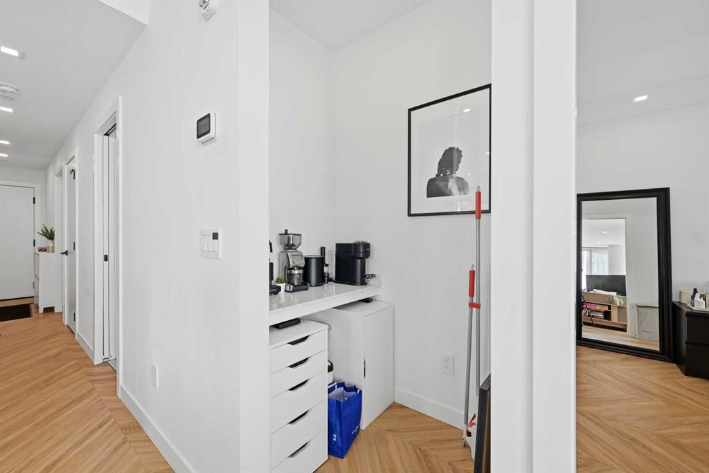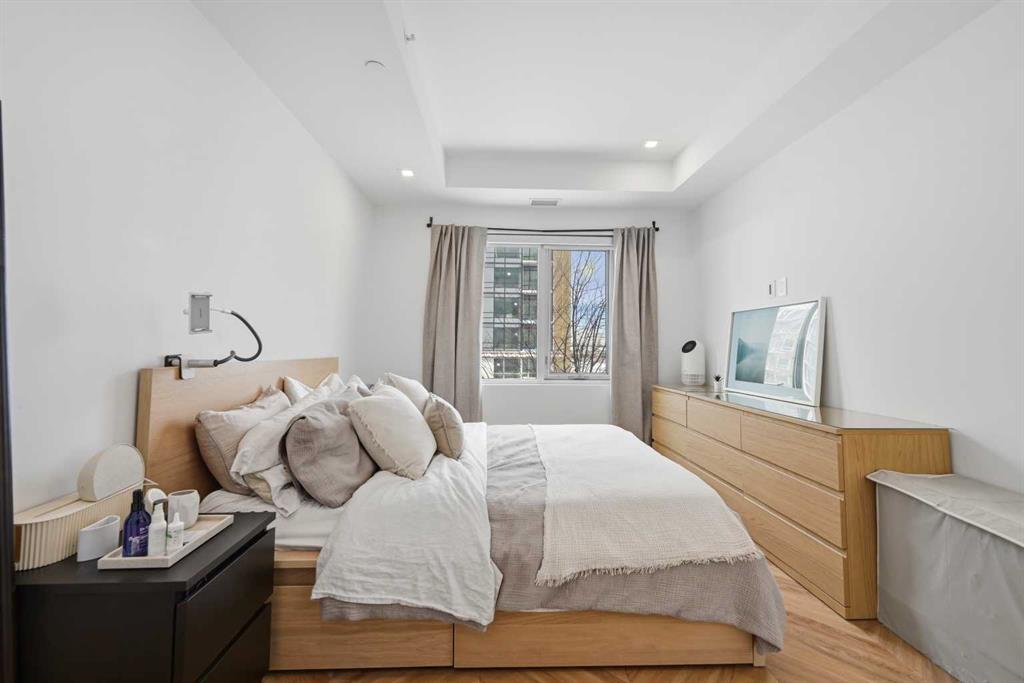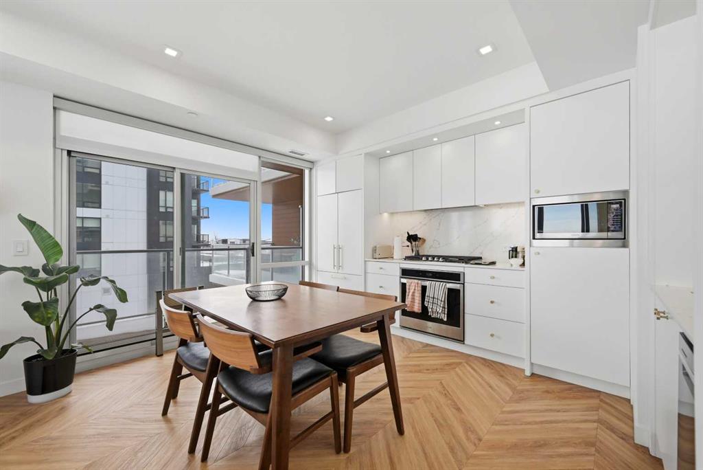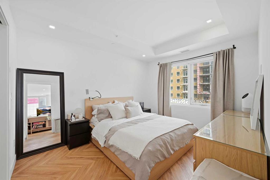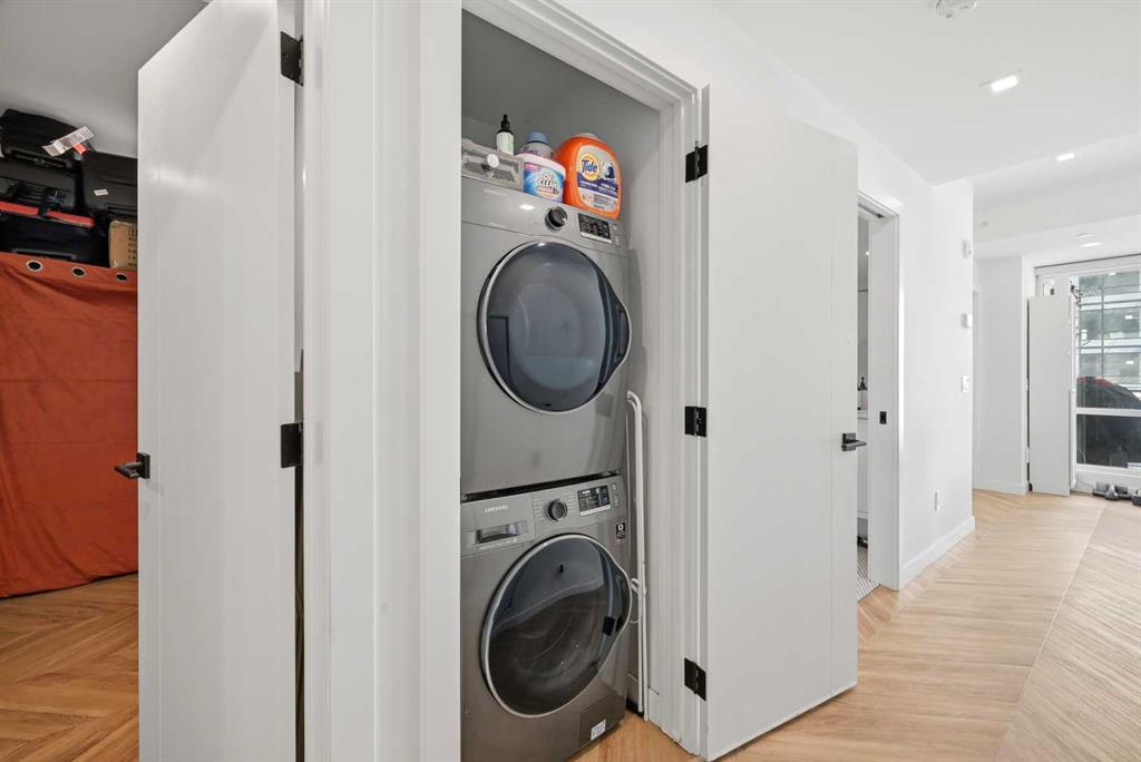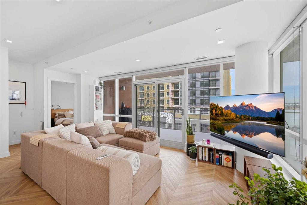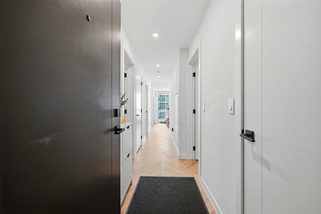 Thoughtfully designed, this bright and spacious 2-bedroom plus den, 2-bathroom suite features a modern open-concept layout enhanced by 9-foot ceilings and expansive floor-to-ceiling windows that flood the space with natural light. Elegant herringbone-pattern luxury vinyl flooring and upgraded finishes throughout add a sophisticated touch.