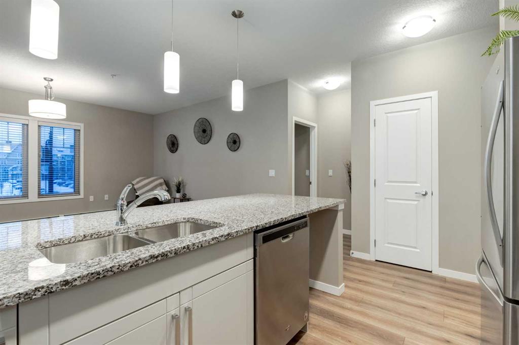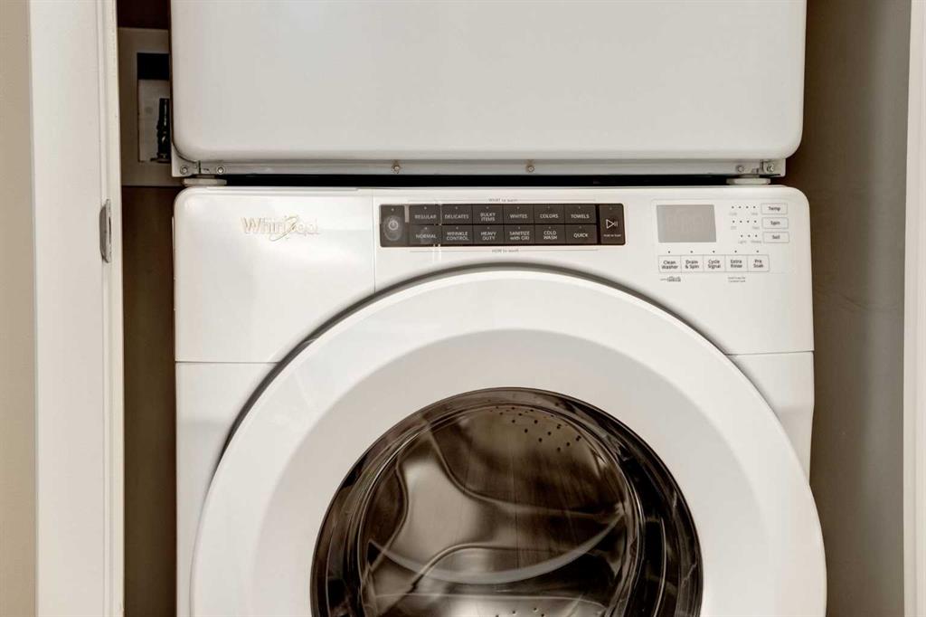 Stepping inside the Foyer, you’re greeted w/NEUTRAL Colours, 9 FT CEILINGS + UPGRADED Vinyl Plank Flooring that leads you down the hall; 4-PC Bathroom sits next to the 2nd GOOD-SIZED Bedroom – this split-bedroom layout is IDEAL for GUESTS, ROOMMATES, or a PRIVATE HOME OFFICE – w/a stacked WASHER/DRYER conveniently located across from the bathroom. Enjoy the OPEN-CONCEPT layout filled w/NATURAL LIGHT from your SOUTH + WEST FACING WINDOWS, + discover an array of UPGRADED FEATURES that truly set this home apart.