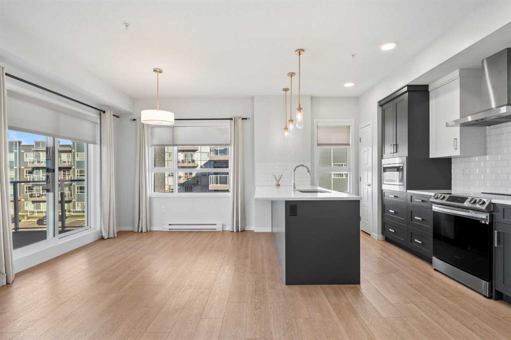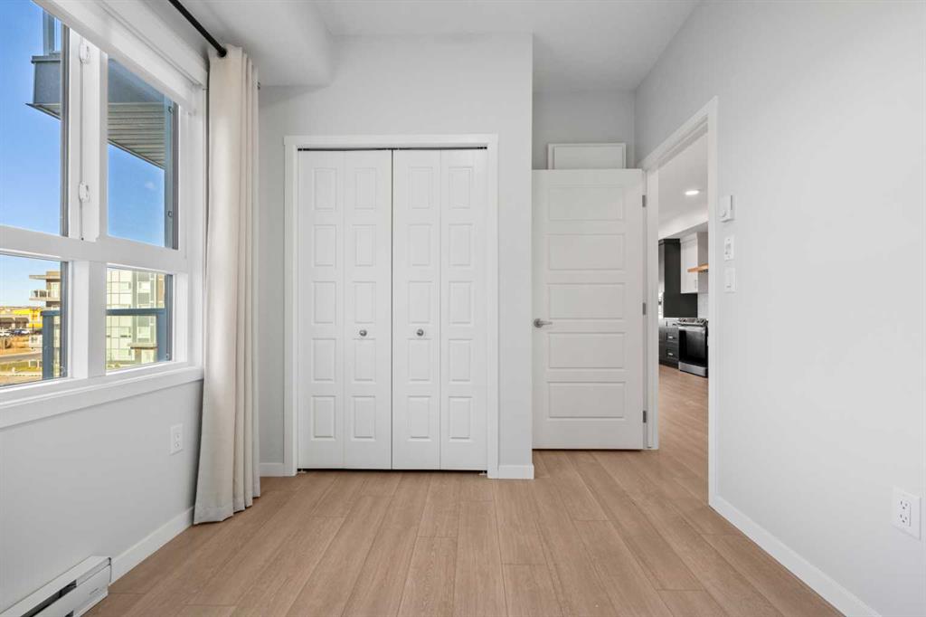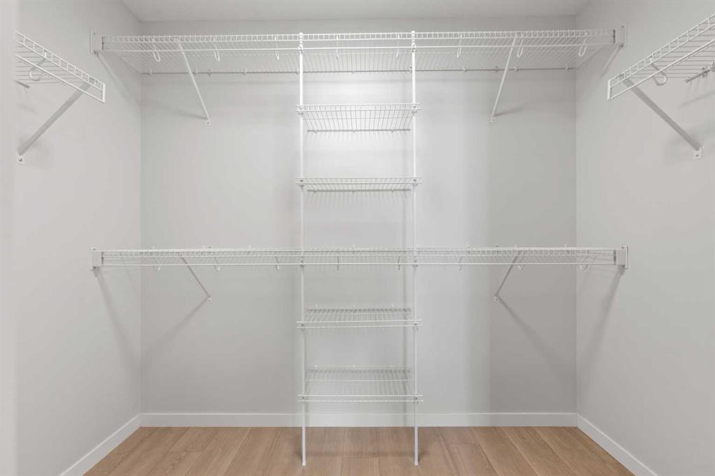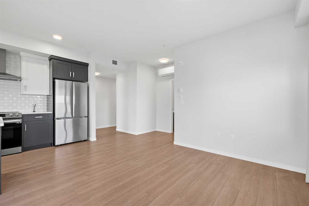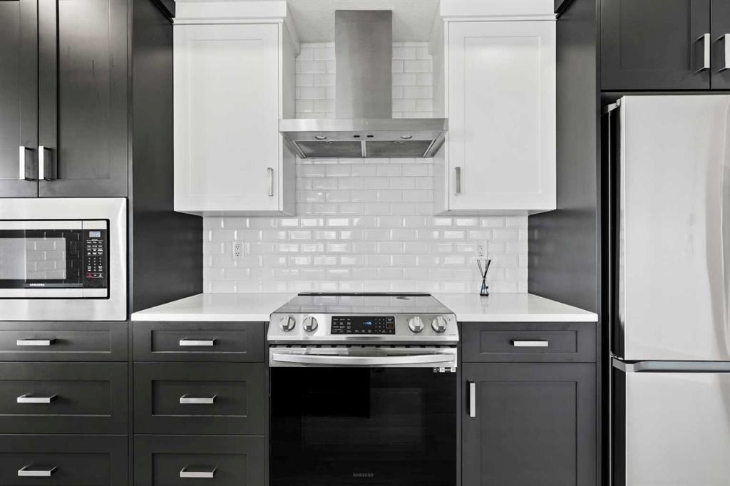 You will feel right at home in this newer condo built by Cedarglen Living Inc. Offering 965.24 sq.ft. RMS (1,043 sq.ft. builder size), this 2 bed, 2 bath unit features an open-concept layout that blends style and functionality with ease. From the moment you step inside, you’ll notice the 9 ft ceilings, luxury vinyl plank flooring throughout (NO CARPET), and Low E triple pane windows that enhance comfort and energy efficiency. The expansive kitchen is beautifully appointed with full-height cabinetry, quartz countertops, upgraded pull-out recycling centre, upgraded bank of pot and pan drawers, white subway tile backsplash, corner pantry, and stainless steel appliances: including an upgraded slide-in electric range, chimney hood fan, and built-in microwave. The island with seating overlooks the spacious living room, creating an inviting space for entertaining or cozy movie nights. The two bedrooms are thoughtfully positioned on opposite sides of the home for maximum privacy. The primary suite features its own full ensuite, while the second bedroom has easy access to the main bathroom perfect for guests, roommates, or a home office setup. Air conditioning is included, ensuring comfort year round. A generous laundry and storage room adds everyday convenience. The home also includes one 1 titled underground parking stall and 2x side by side storage lockers, providing ample space for your belongings. Enjoy evenings on the WEST facing balcony, complete with a BBQ gas line. This pet friendly complex is ideally located across from a beautiful park and green space, with a variety of nearby amenities just steps away.