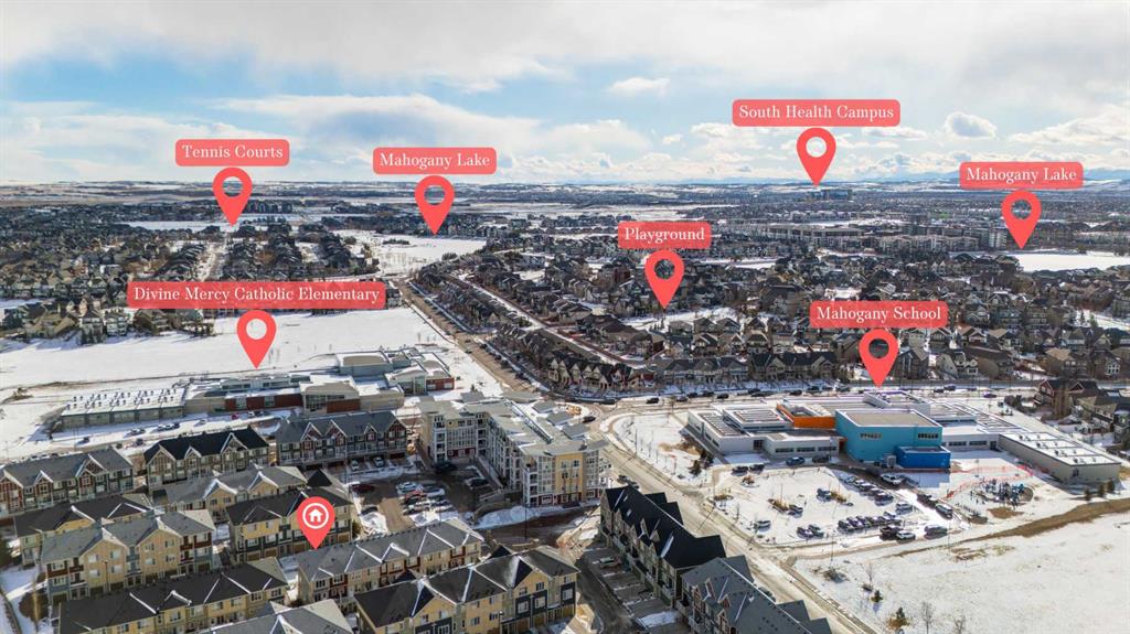 Located in Ebony Townhomes, the complex offers visitor parking, landscaped green spaces, and courtyards. Residents also enjoy access to Mahogany’s private lake, along with nearby parks, pathways, schools, shopping, and restaurants.