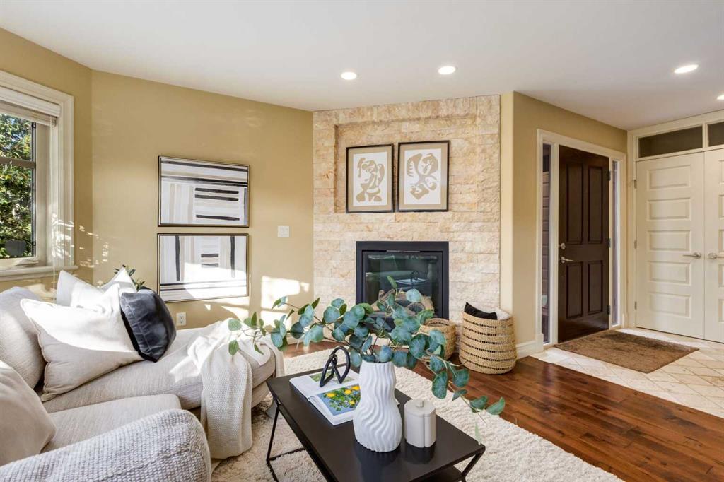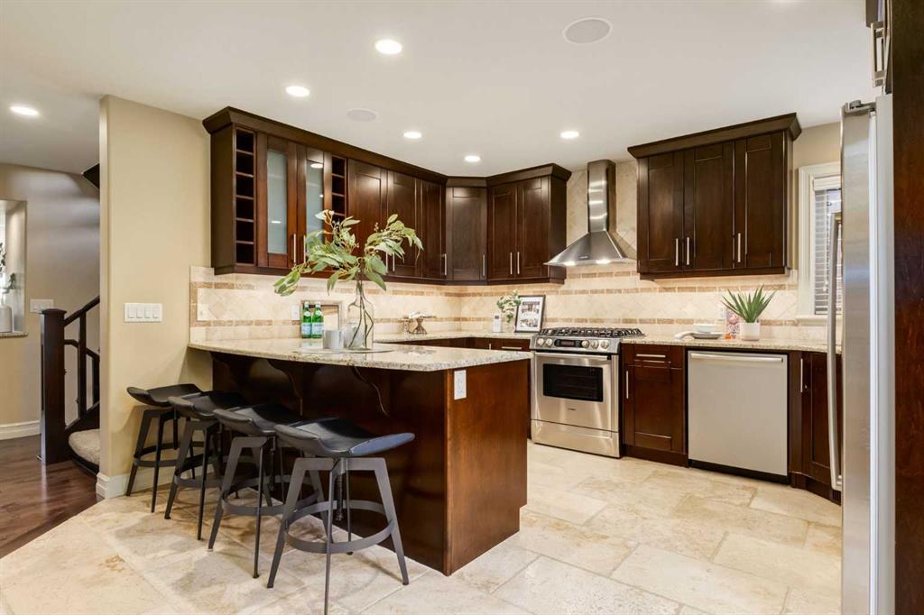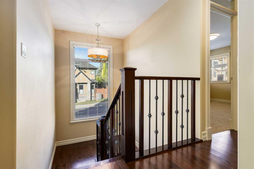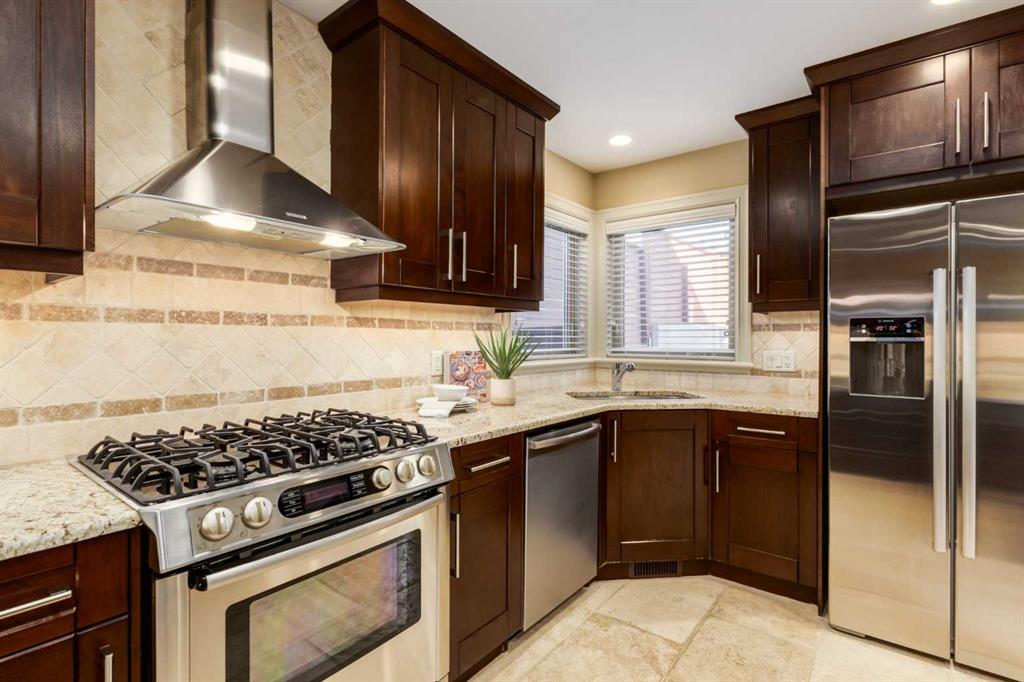 Welcome to your charming and impeccably maintained home nestled in the sought after community of South Calgary. Just a 2-minute stroll away, you’ll find yourself amidst the vibrant shops and restaurants of Marda Loop. Within a 10-minute drive lies the bustling heart of Downtown Calgary, while excellent schools and parks are mere steps away. Spanning over 2500 sq.ft. of meticulously developed living space, this home boasts 3 bedrooms on the upper level, 3.5 baths, a fully finished basement, and a double detached garage. Step inside to discover a main floor designed for both functionality and style. The European designed kitchen features chef-quality stainless steel appliances, granite countertops, designer tile backsplash, modern fixtures, and a generous pantry area. The dining area, strategically positioned between the kitchen and living space, comfortably accommodates gatherings of 8 to 10 guests. At the front of the home, the formal living area is bathed in natural light from beautiful windows and features a cozy gas fireplace – ideal for winter evenings. Ascending to the second floor, you’ll discover three spacious bedrooms, including a luxurious master retreat complete with a sizable walk-in closet and a spa-inspired ensuite bath. The fully developed basement provides additional living space, featuring a large full bath, walk-in laundry room with storage, built-in bar, media area, and additional bedroom. Completing this exceptional home is a double detached garage, hardwood floors throughout the main floor, central air conditioning, and a private backyard oasis – perfect for outdoor living and entertaining. Welcome home – where luxury, comfort, and convenience await!