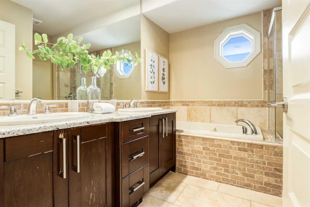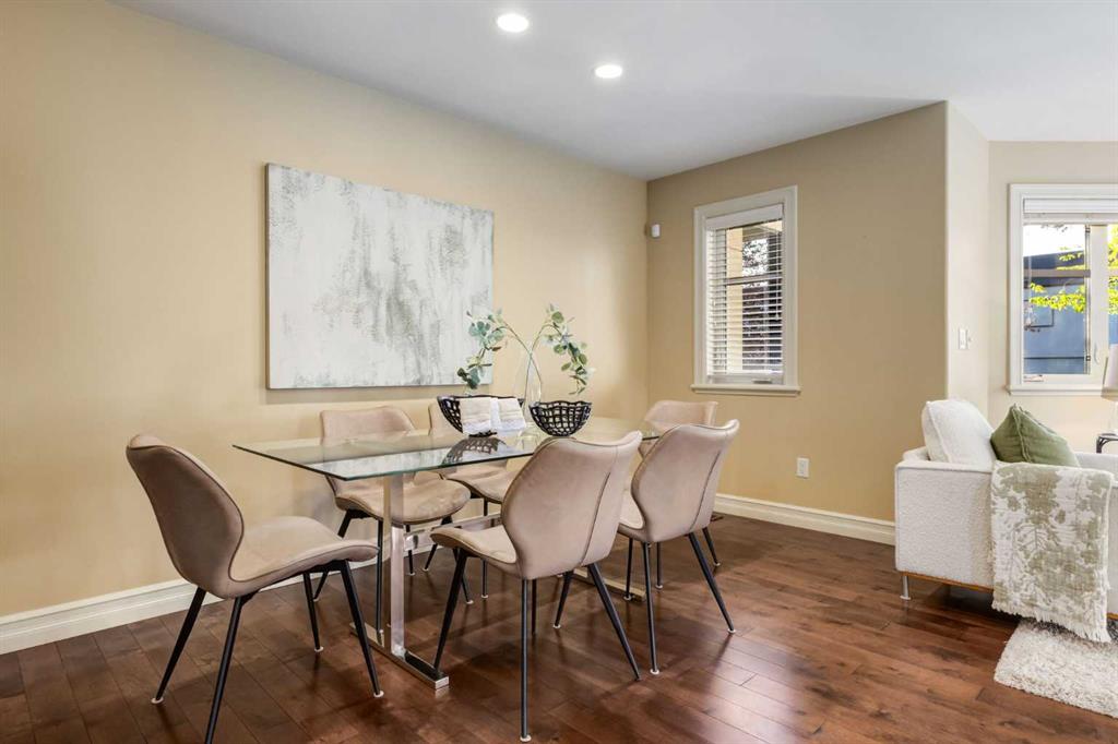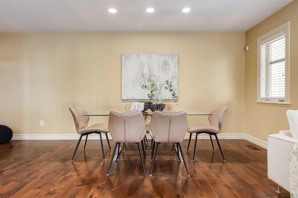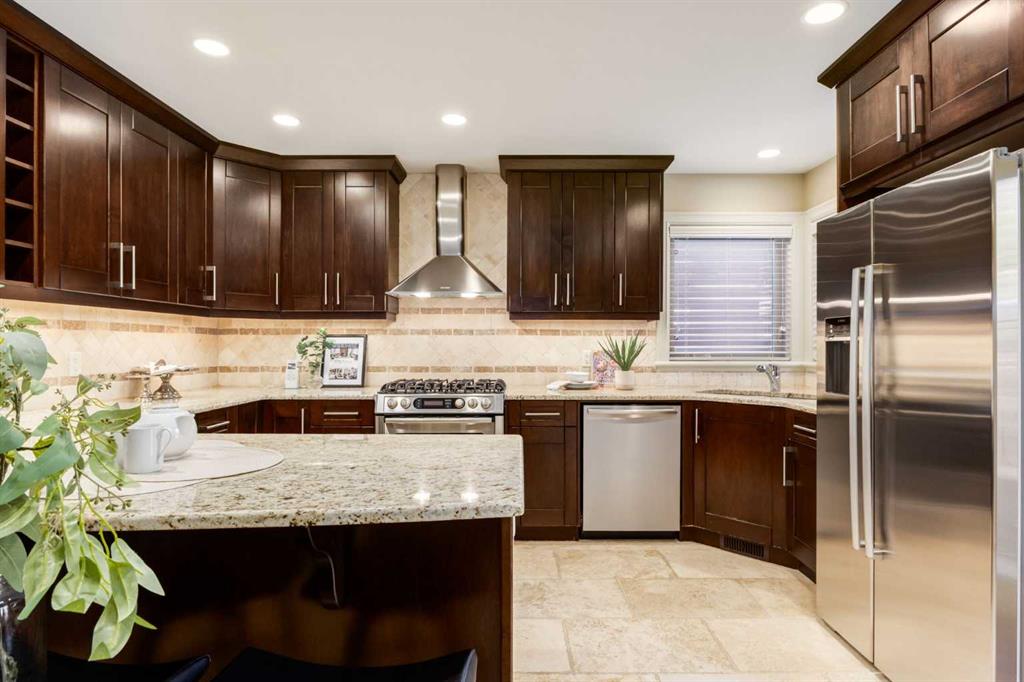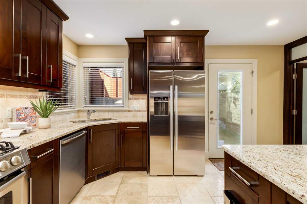 Welcome to your charming and impeccably maintained home nestled in the sought after community of South Calgary. Just a 2-minute stroll away, you’ll find yourself amidst the vibrant shops and restaurants of Marda Loop. Within a 10-minute drive lies the bustling heart of Downtown Calgary, while excellent schools and parks are mere steps away. Spanning over 2500 sq.ft. of meticulously developed living space, this home boasts 3 bedrooms on the upper level, 3.5 baths, a fully finished basement, and a double detached garage. Step inside to discover a main floor designed for both functionality and style. The European designed kitchen features chef-quality stainless steel appliances, granite countertops, designer tile backsplash, modern fixtures, and a generous pantry area. The dining area, strategically positioned between the kitchen and living space, comfortably accommodates gatherings of 8 to 10 guests. At the front of the home, the formal living area is bathed in natural light from beautiful windows and features a cozy gas fireplace – ideal for winter evenings. Ascending to the second floor, you’ll discover three spacious bedrooms, including a luxurious master retreat complete with a sizable walk-in closet and a spa-inspired ensuite bath. The fully developed basement provides additional living space, featuring a large full bath, walk-in laundry room with storage, built-in bar, media area, and additional bedroom. Completing this exceptional home is a double detached garage, hardwood floors throughout the main floor, central air conditioning, and a private backyard oasis – perfect for outdoor living and entertaining. Welcome home – where luxury, comfort, and convenience await!