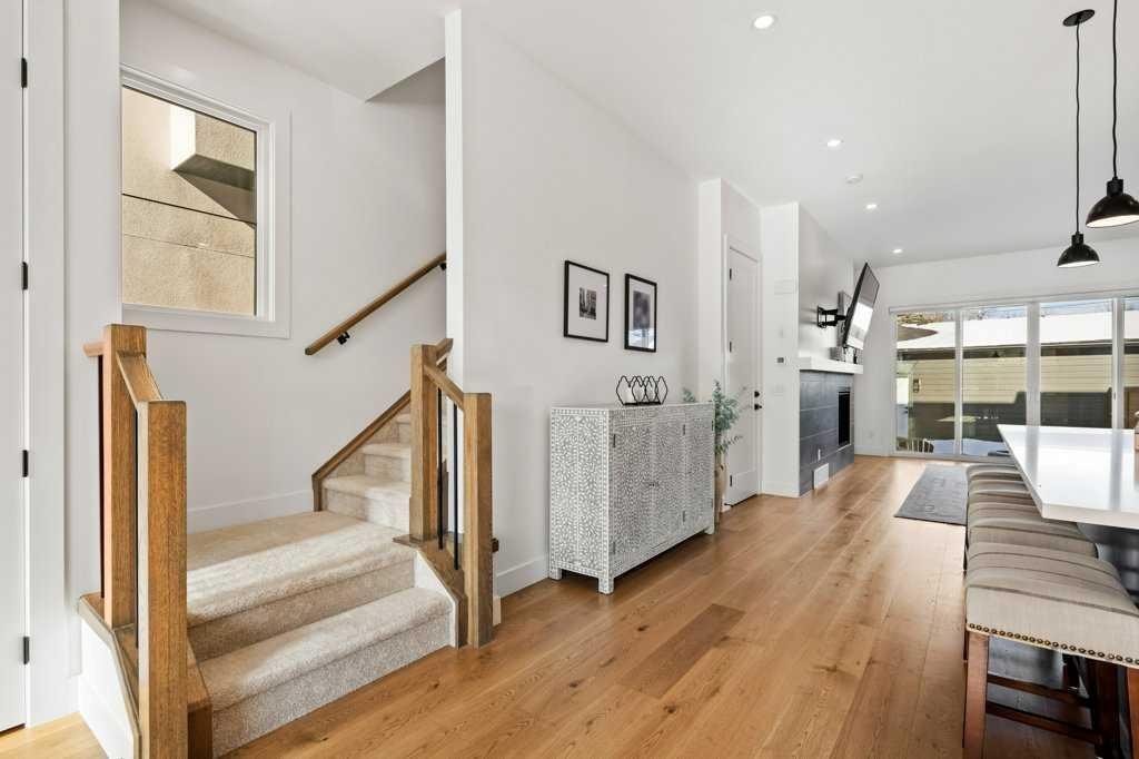 Modern Infill. Smart Investment. Monthly Payment Hack Built In. A beautifully designed semi-detached home in the heart of Tuxedo – where contemporary living meets one of the most powerful ownership advantages available today: a legal income suite that can offset nearly half your monthly expenses. With 1,874 sqft above grade plus a fully developed 860 sqft legal basement suite, this home isn’t just a place to live – it’s a strategic move. The main floor delivers the open layout lifestyle buyers expect – wide plank engineered hardwood, oversized windows and a designer kitchen anchored by a quartz island, custom cabinetry, stainless appliances and full pantry. The rear living room opens through 8 foot sliding doors to the patio with gas BBQ line – perfect for summer evenings unwinding with those closest to you. Dinner for ten? No problem. After the last glass is poured, retreat to the fireside lounge and settle into the kind of comfort that makes nights at home feel like an escape. Upstairs you’ll find three generous bedrooms, a full laundry room, and a stunning primary retreat complete with a large walk-in closet and spa-inspired 5-piece ensuite featuring a freestanding soaker tub, dual vanities, tiled shower and private water closet. Downstairs is where the investment magic happens. The legal basement suite includes a private entrance, 9-foot ceilings, full kitchen with stainless steel appliances, spacious living area, large bedroom with walk-in closet, 4-piece bathroom and private laundry. Whether you choose to generate rental income, accommodate extended family, or create flexible living space, it dramatically expands your options – along with your financial comfort. Recent upgrades include: a/c rough-in, full window treatment package, new hot water tank and an enhanced soundproofing wall between levels for improved privacy. Perfectly positioned in sought-after Tuxedo Park, you’re just blocks from parks, schools, community amenities, and quick access to downtown, major routes and local favourites. A place where urban design, inner-city lifestyle and smart economics come together. Opportunities like this don’t just look good on paper – they feel good every month.